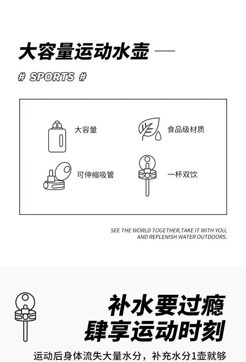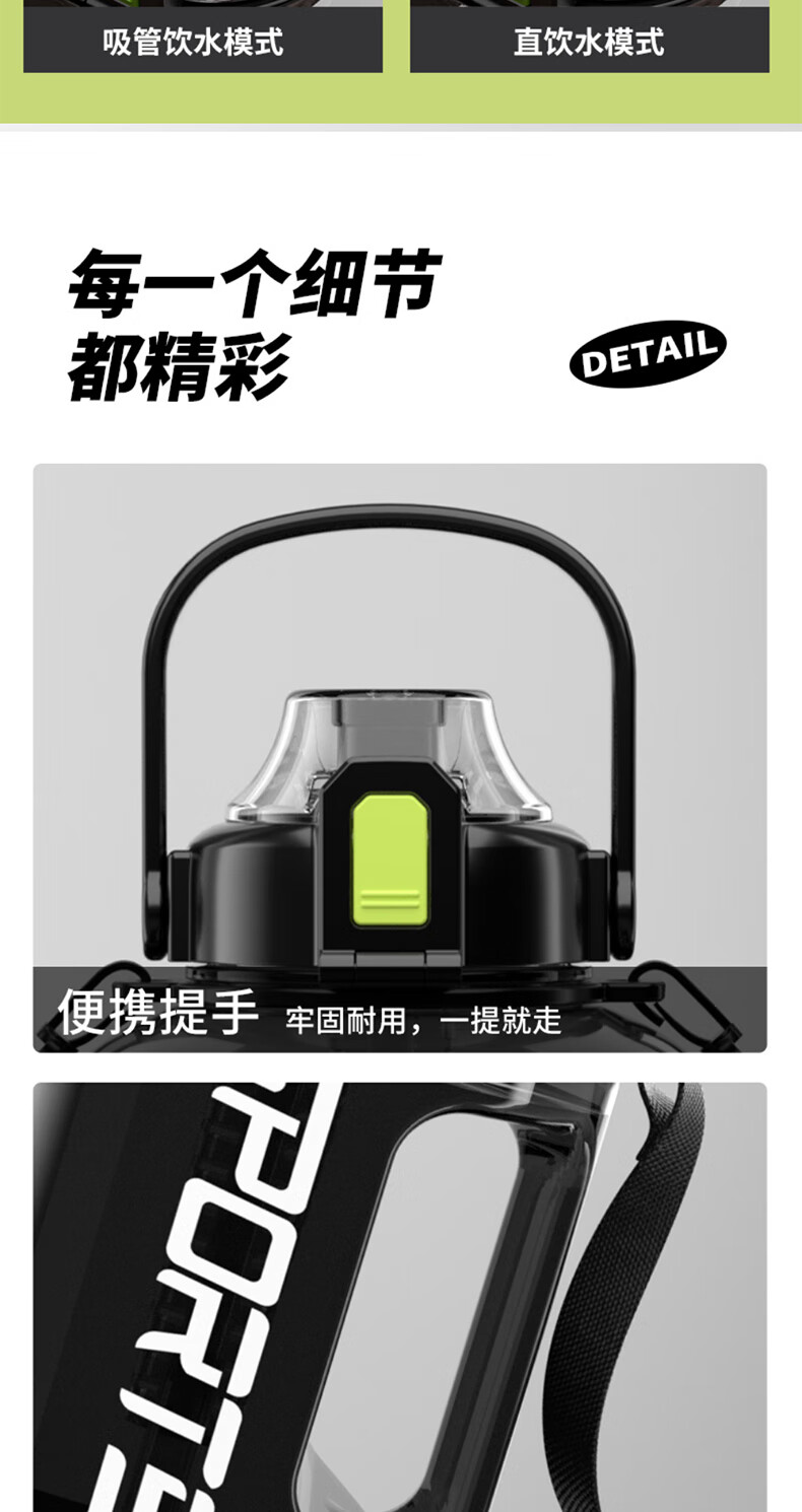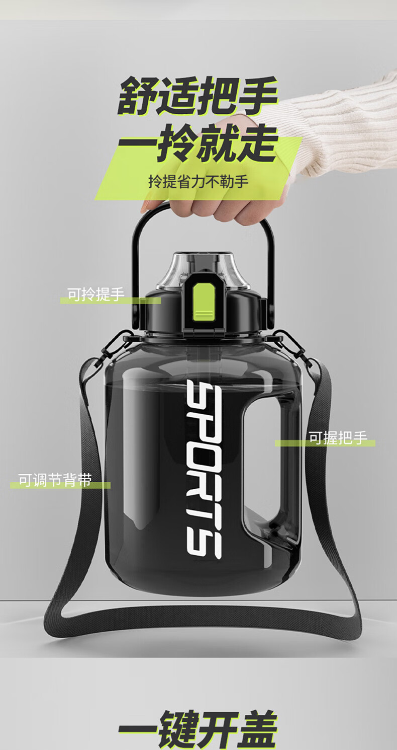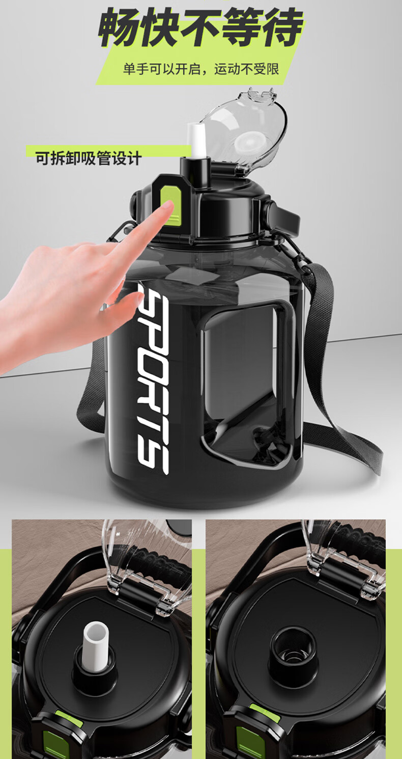 SZTAA water cup large capacity ton barrel high temperature resistant sports kettle men and women portable fitness kettle plastic cup 3000ML+strap+cup brush+straw+tea warehouse