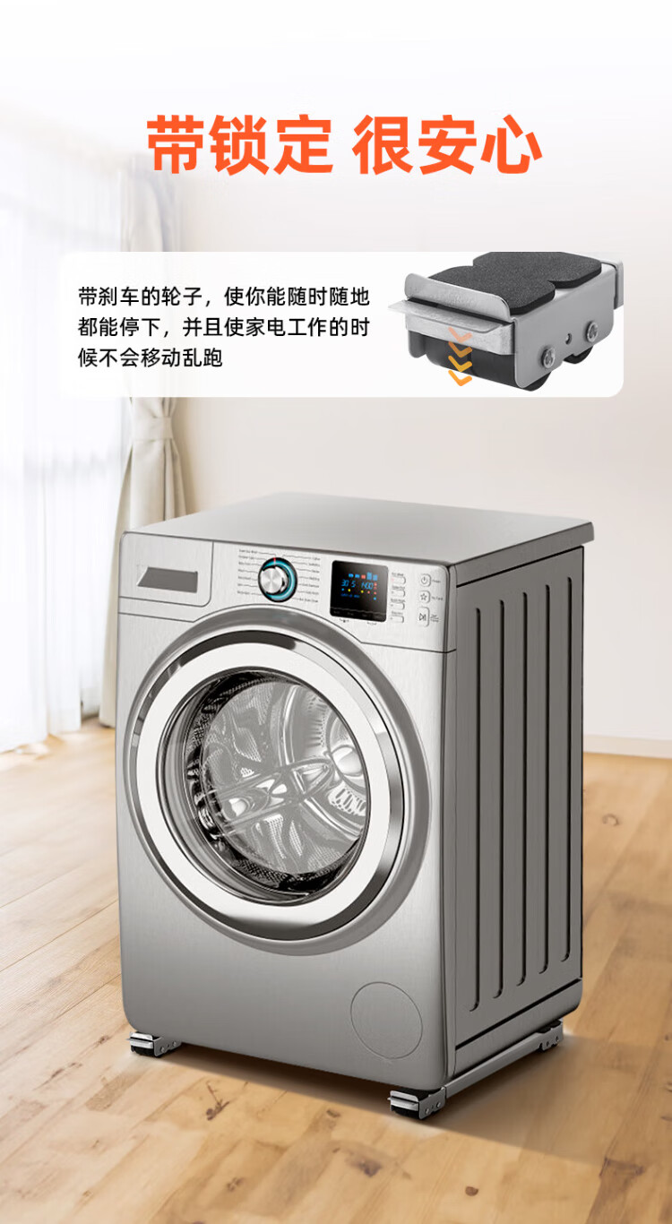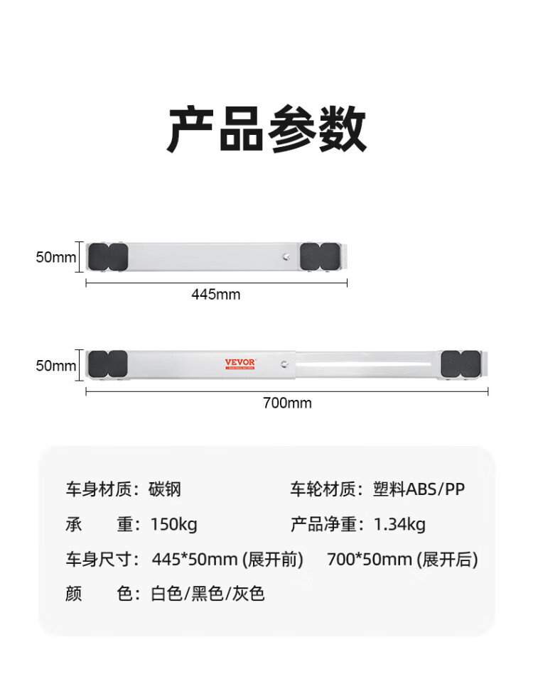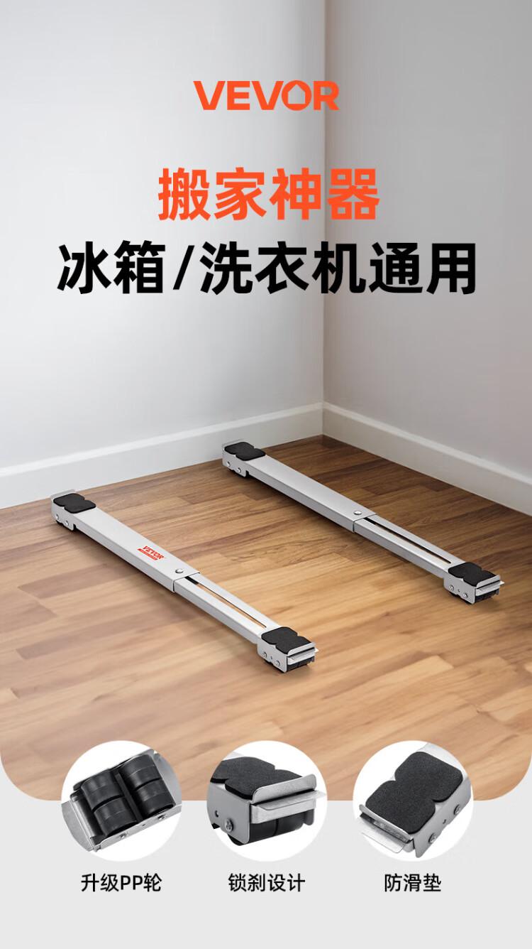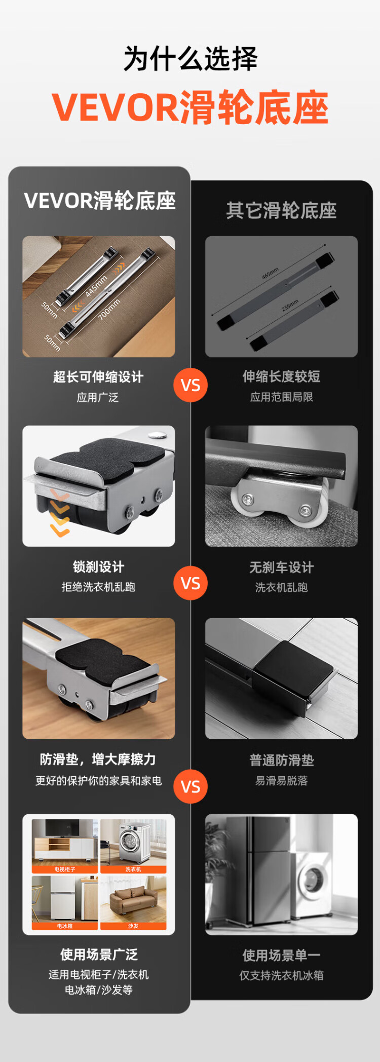 VEVOR Universal Refrigerator Washing Machine Mobile Pulley Base 4cm Increased Moisture-Proof Retractable Mobile Shelf Furniture Universal Wheel Transport Shifter Heavy Object Moving Tool Gray 2 Pack - Load 150KG Retractable + Locking Brake Design