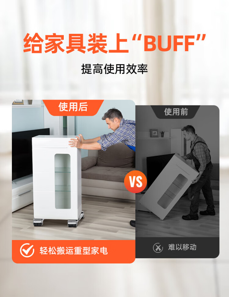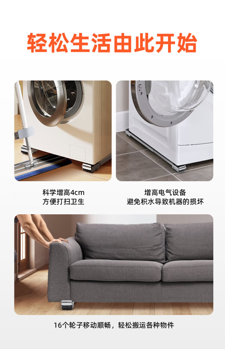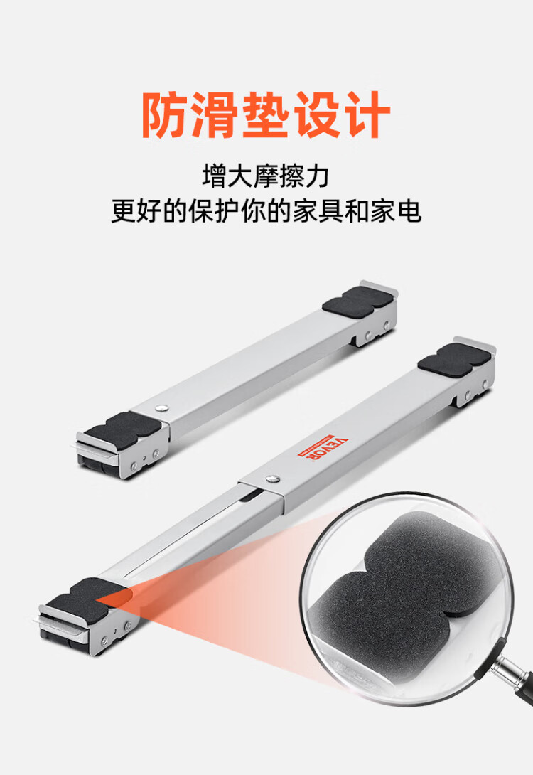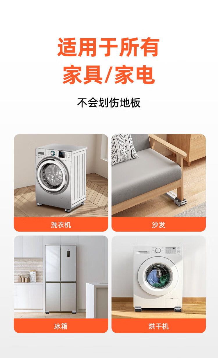 VEVOR Universal Refrigerator Washing Machine Mobile Pulley Base 4cm Increased Moisture-Proof Retractable Mobile Shelf Furniture Universal Wheel Transport Shifter Heavy Object Moving Tool Gray 2 Pack - Load 150KG Retractable + Locking Brake Design