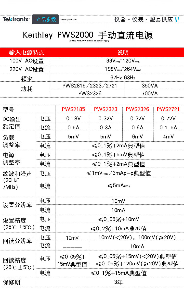 TEKTRONIXTektrix PWS series linear programmable DC regulated power supply PWS2326 (32V/6A/192W)