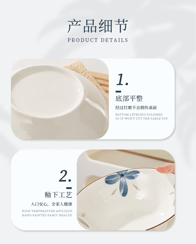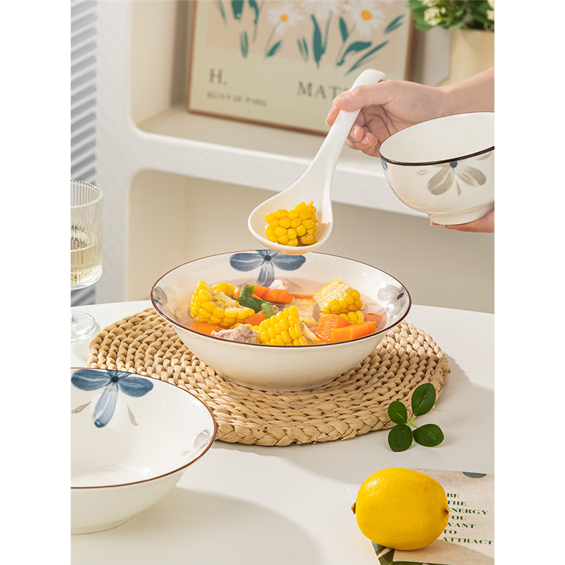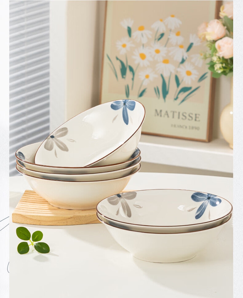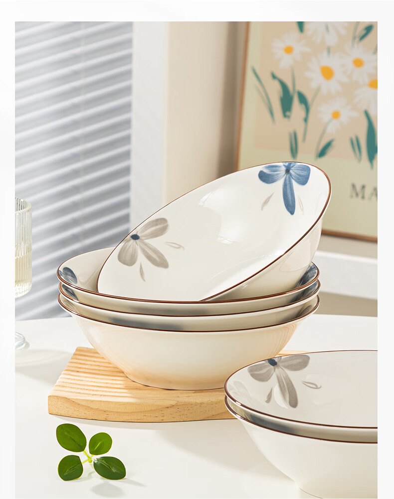 Small Orchid ceramic 8-inch large soup bowl household ceramic large bowl extra-large noodle bowl bucket hat bowl soup bowl 2 8-inch bucket bowls