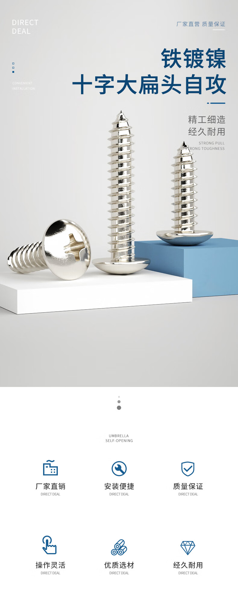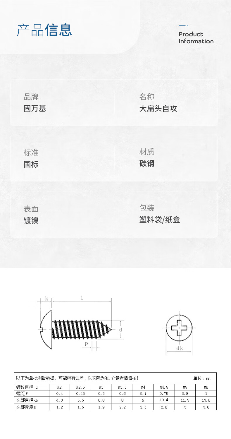 Guwanji nickel-plated cross recessed large flat head self-tapping screws TA umbrella head wood screws mushroom head screws tip tail self-tapping screws M5x10 200 pieces nickel-plated