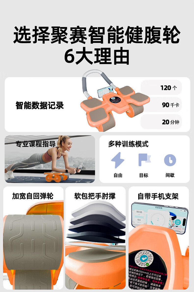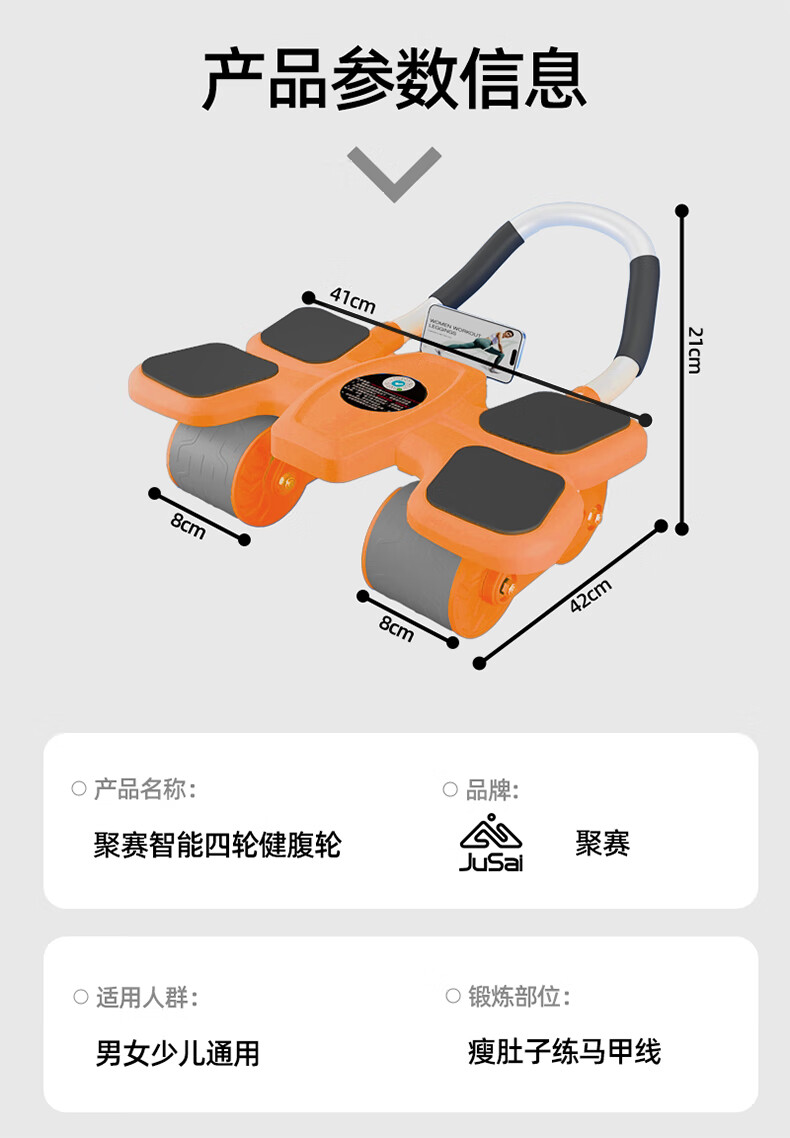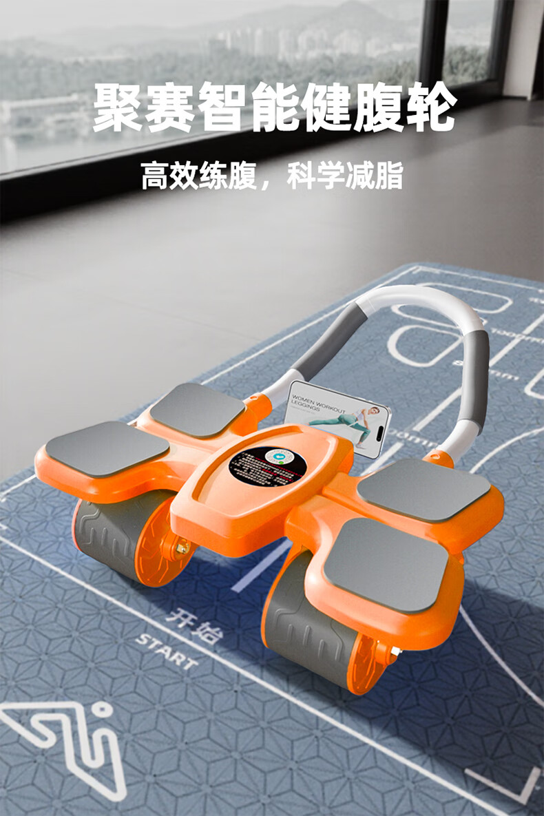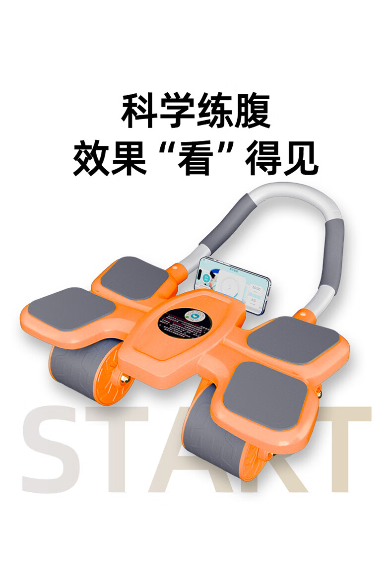 Jusai Four-Wheel Abdominal Wheel Automatic Rebound Home Elbow Support Tablet Exercise Abdominal Muscle Wheel Belt Auxiliary Men's and Women's Fitness Equipment Abdominal Crunches Set Four-Wheel Smart Model-Orange Special Pad for Abdominal Strength + Thickened Kneeling Pad