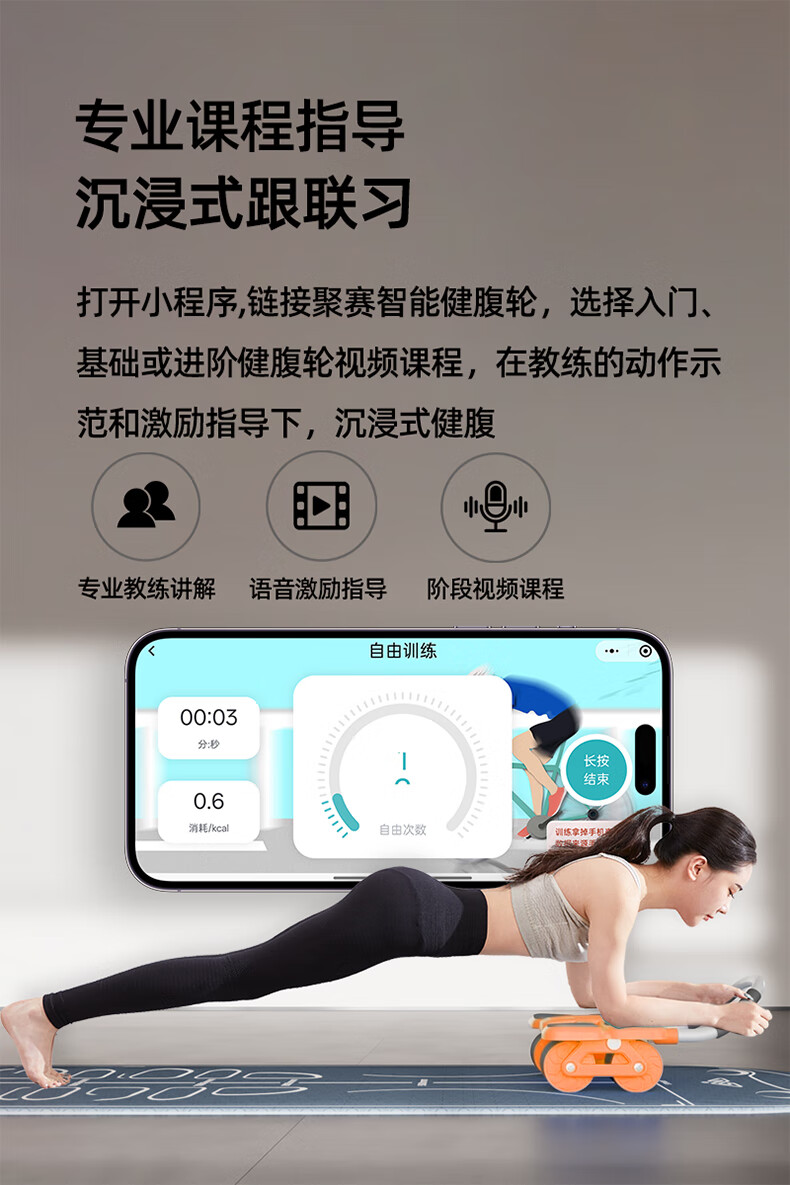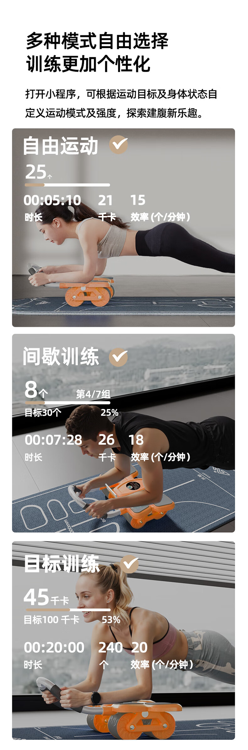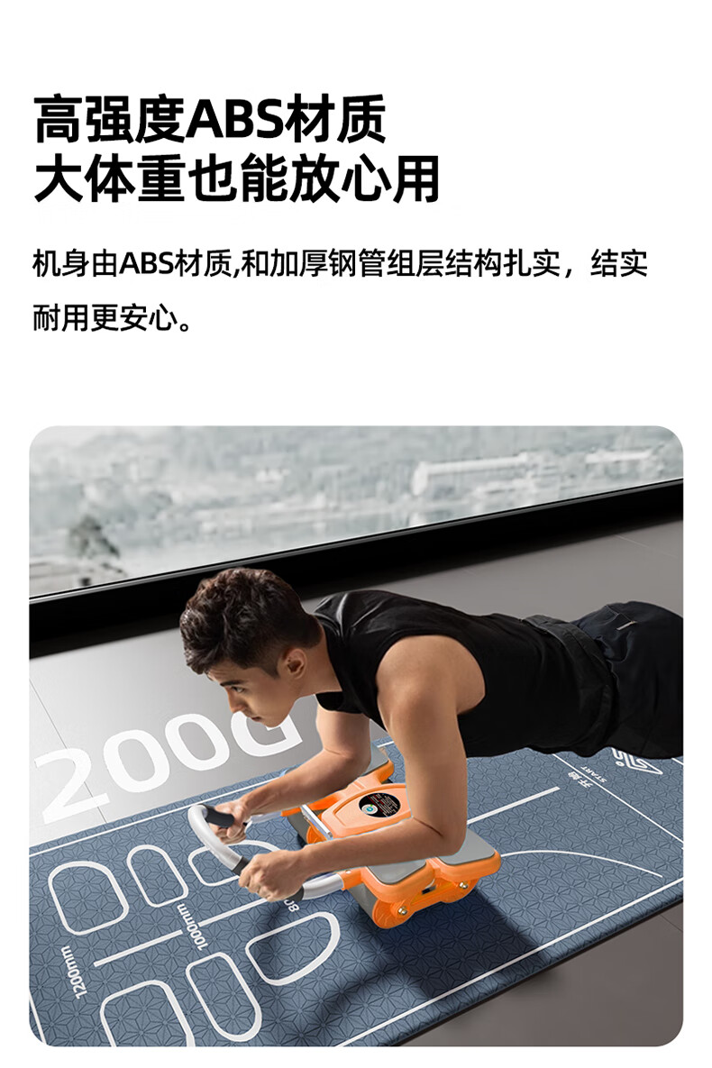 Jusai Four-Wheel Abdominal Wheel Automatic Rebound Home Elbow Support Tablet Exercise Abdominal Muscle Wheel Belt Auxiliary Men's and Women's Fitness Equipment Abdominal Crunches Set Four-Wheel Smart Model-Orange Special Pad for Abdominal Strength + Thickened Kneeling Pad