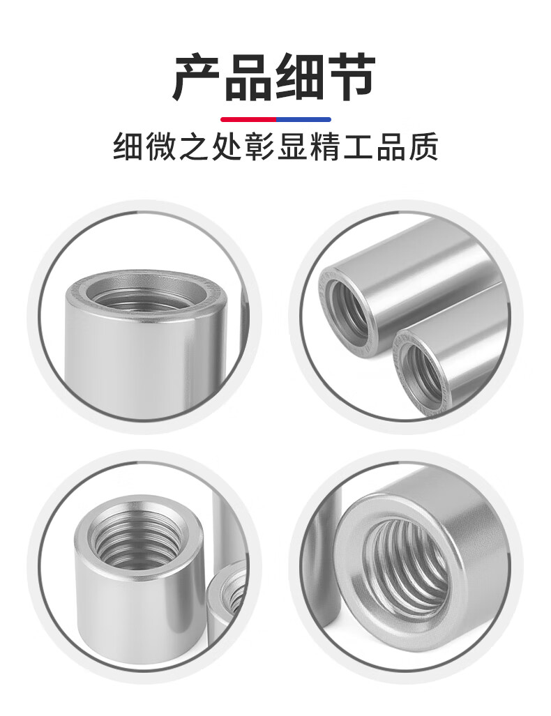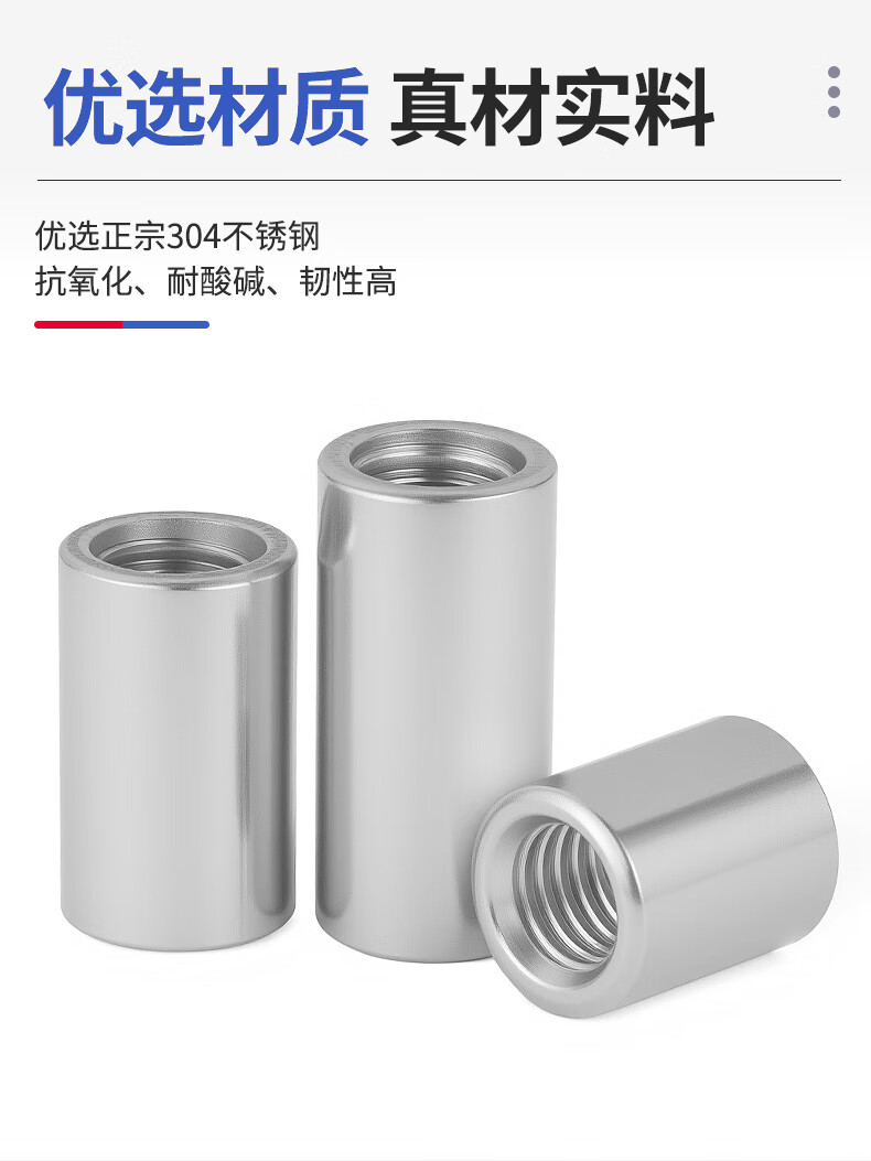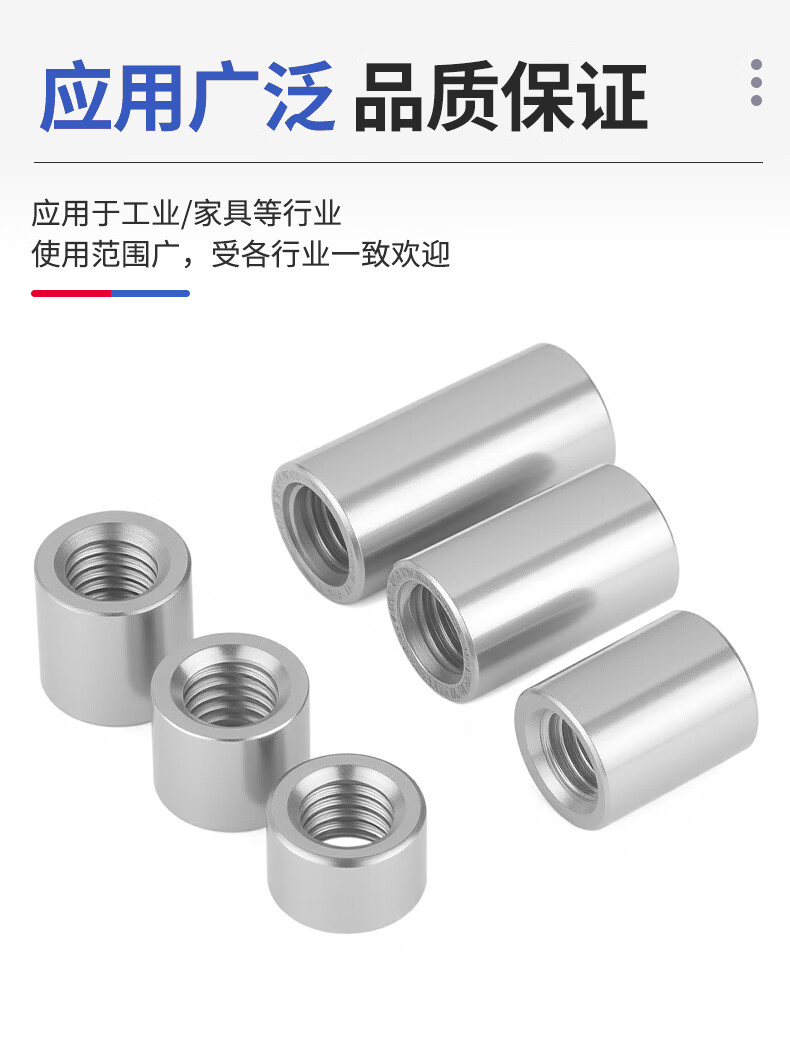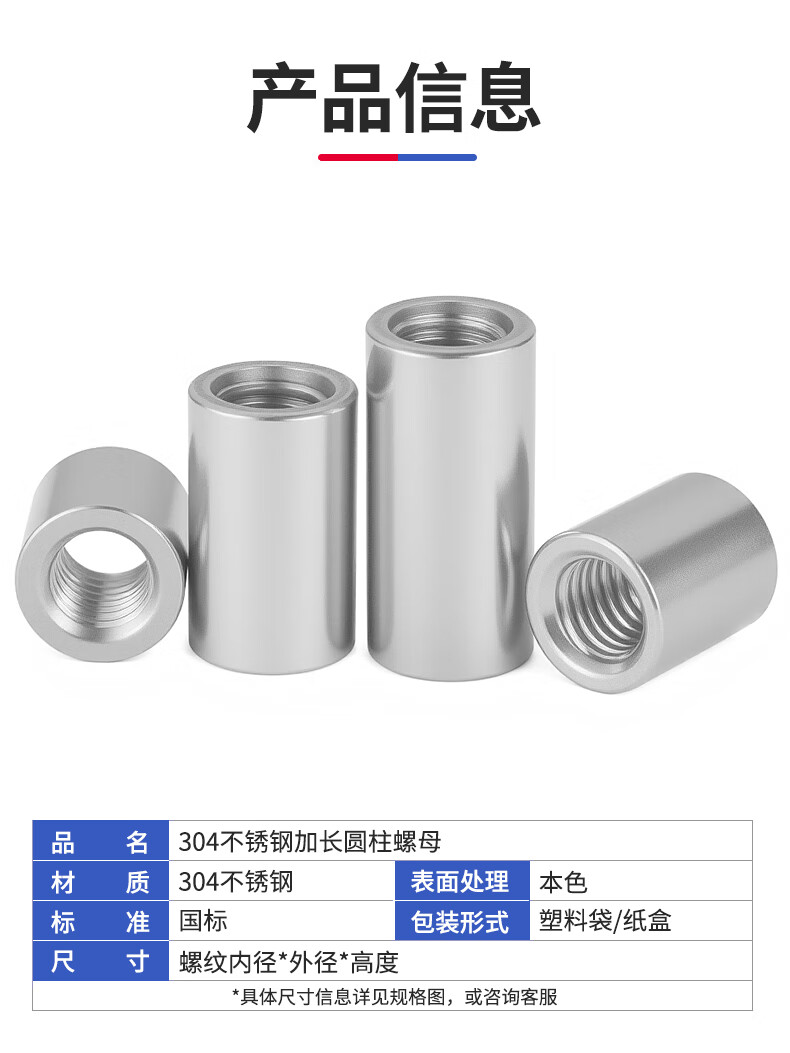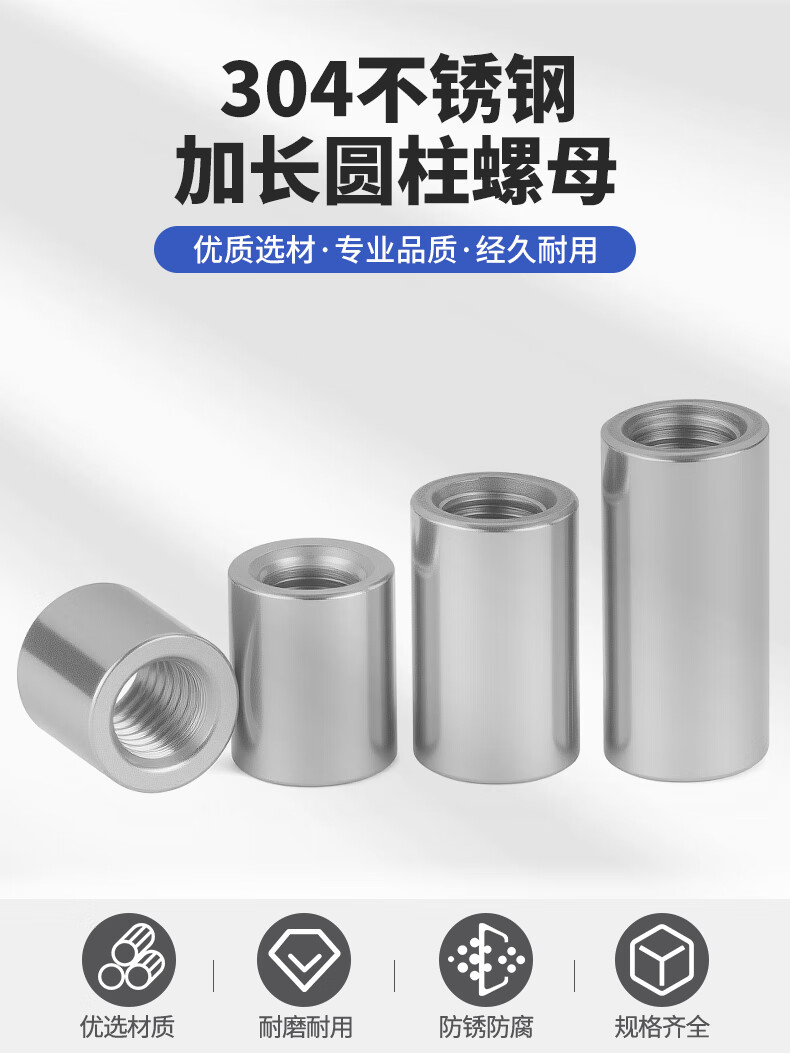 Jinggong extended nut 304 stainless steel cylinder thickening and height welding internal thread round nut column m4m5m6m8m10 M8*50* 12 (2 pieces)