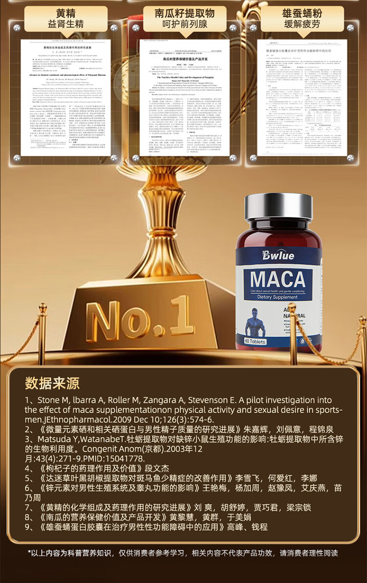 Bwlue Lanwei Vitality, Maca, Oyster, Lycopene, Zinc and Selenium Supplement, Sperm Enhancement, Pregnancy Preparation for Men, 10 Bottles, Buy 5 Get 5 Free, Rich Pack