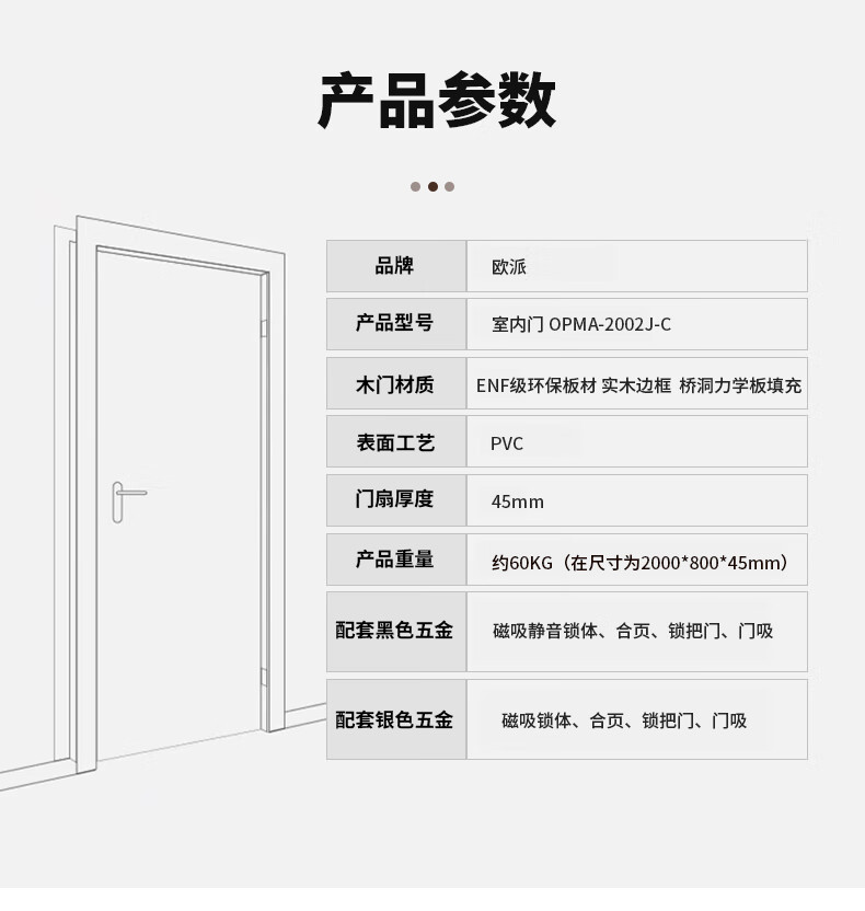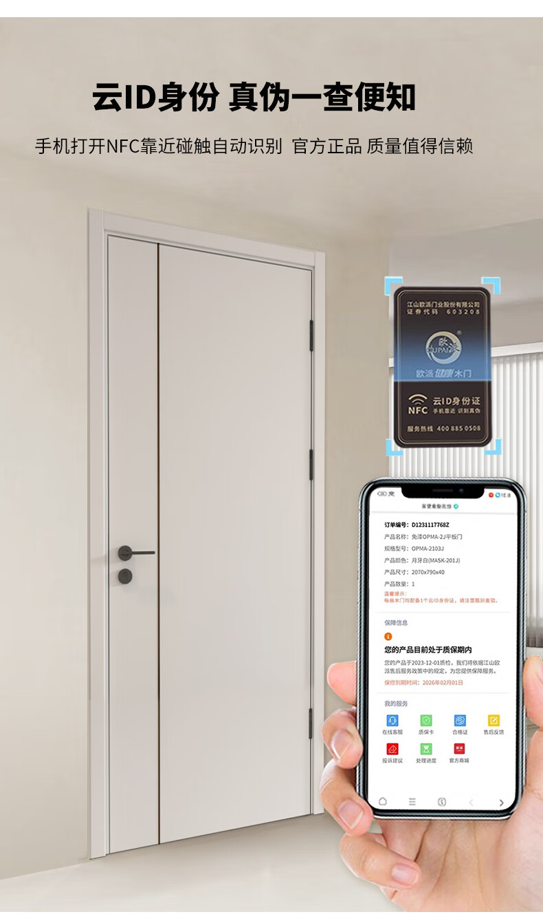 Oupai (OUPAI) solid wood door paint-free door silent door indoor set door room door paint-free door bridge opening mechanical bedroom door bridge opening mechanical silent door series A type color door leaf + door cover + Oupai hardware lock customization