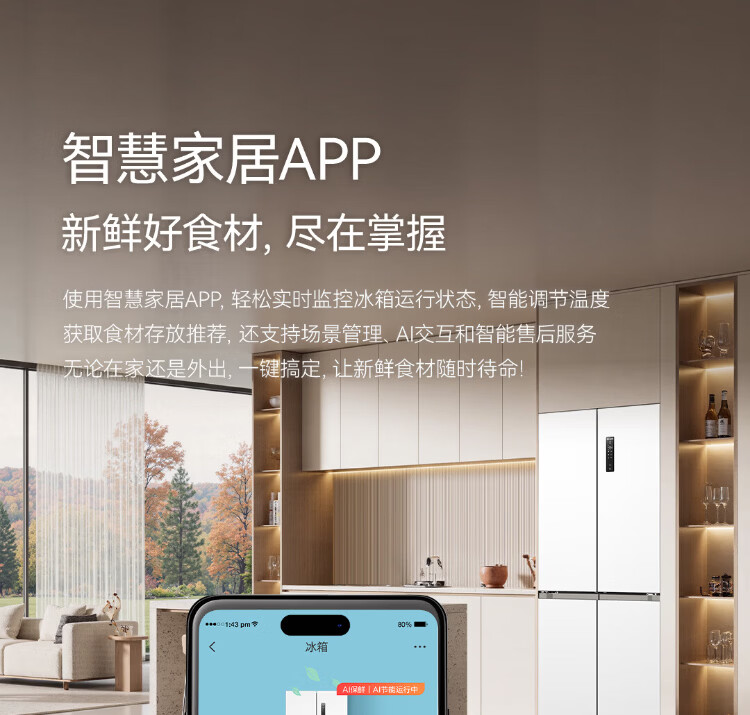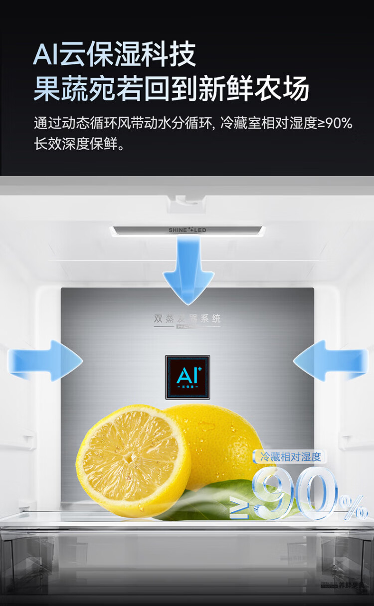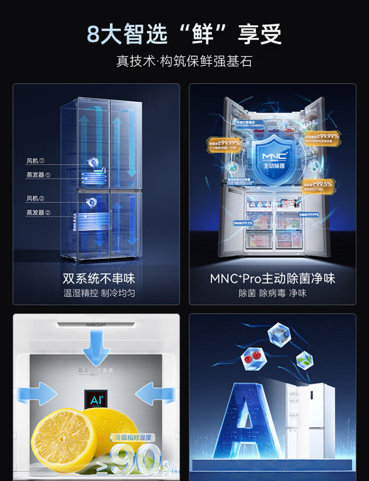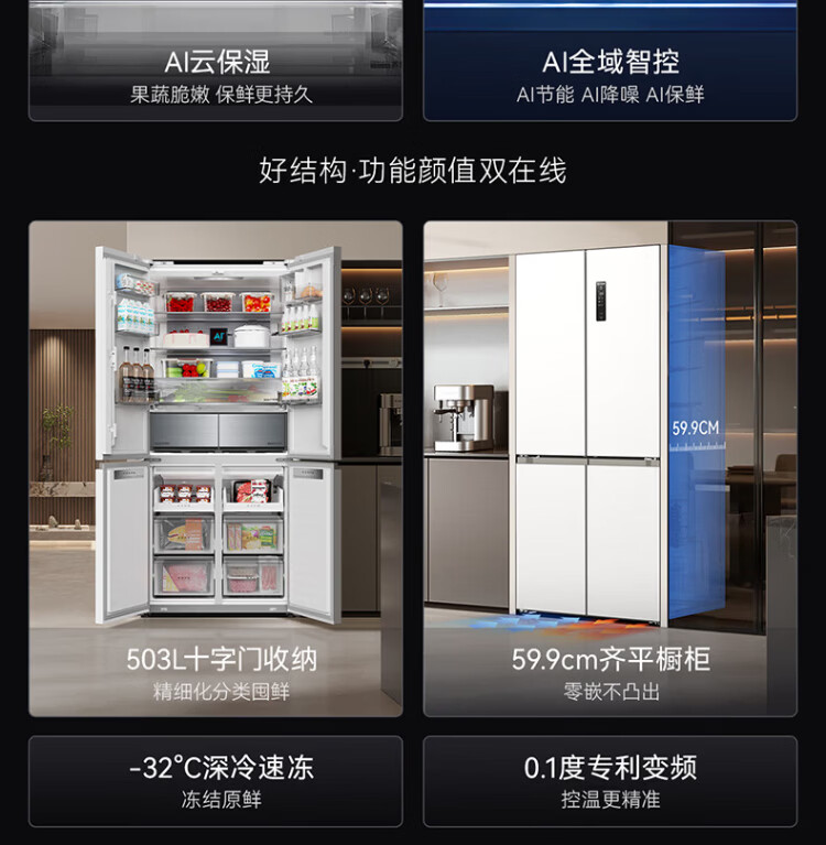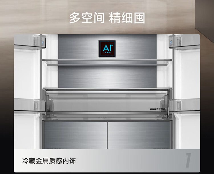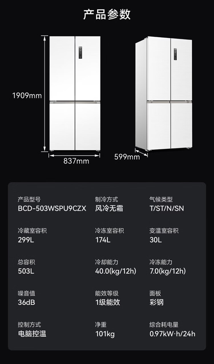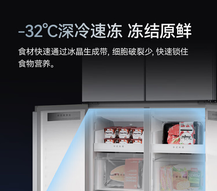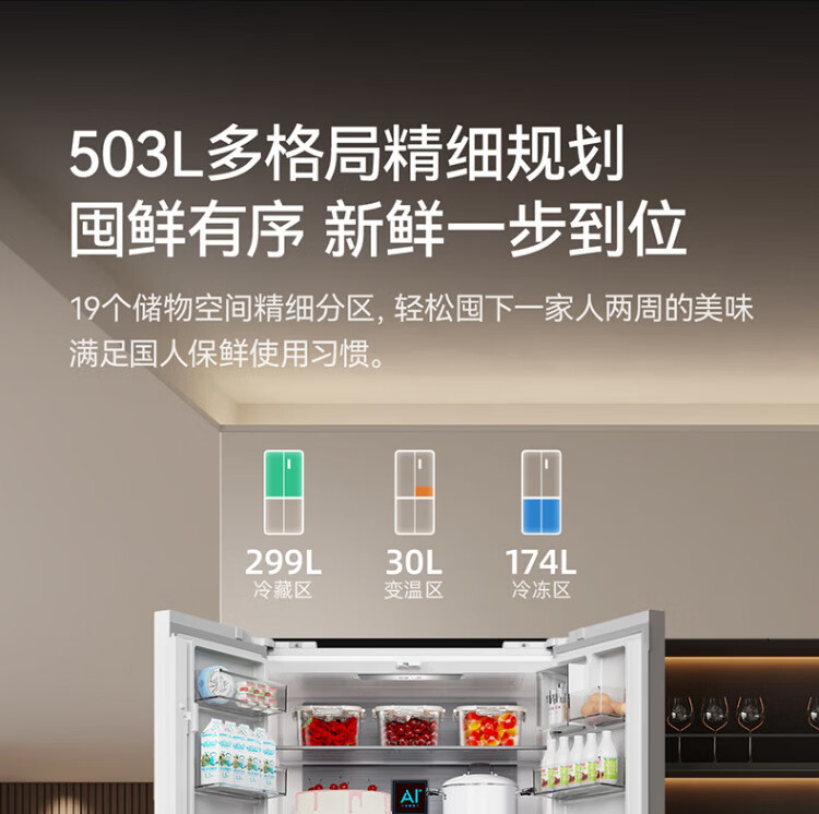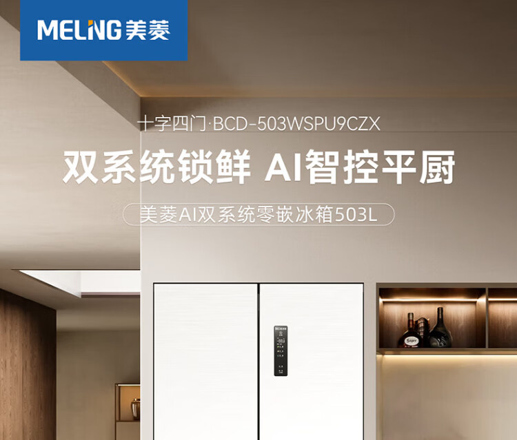 Meiling AI Refrigerator 503L cross-door refrigerator dual system sterilization and odor-free ultra-thin zero-flat embedded large capacity first-class energy efficiency air-cooled BCD-503WSPU9CZX national subsidy AI refrigerator 503WSPU9CZX Star Gray