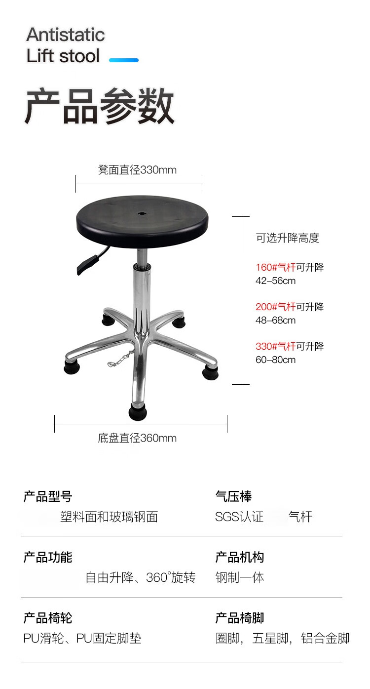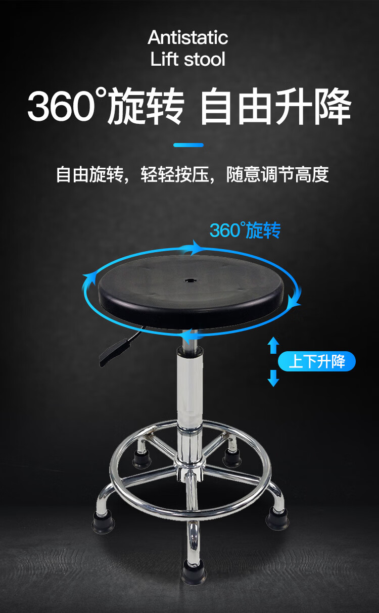 Liumiao selects plastic lifting round stools, plastic stool surface 32cm circle feet and foot pads (height 48-68cm)