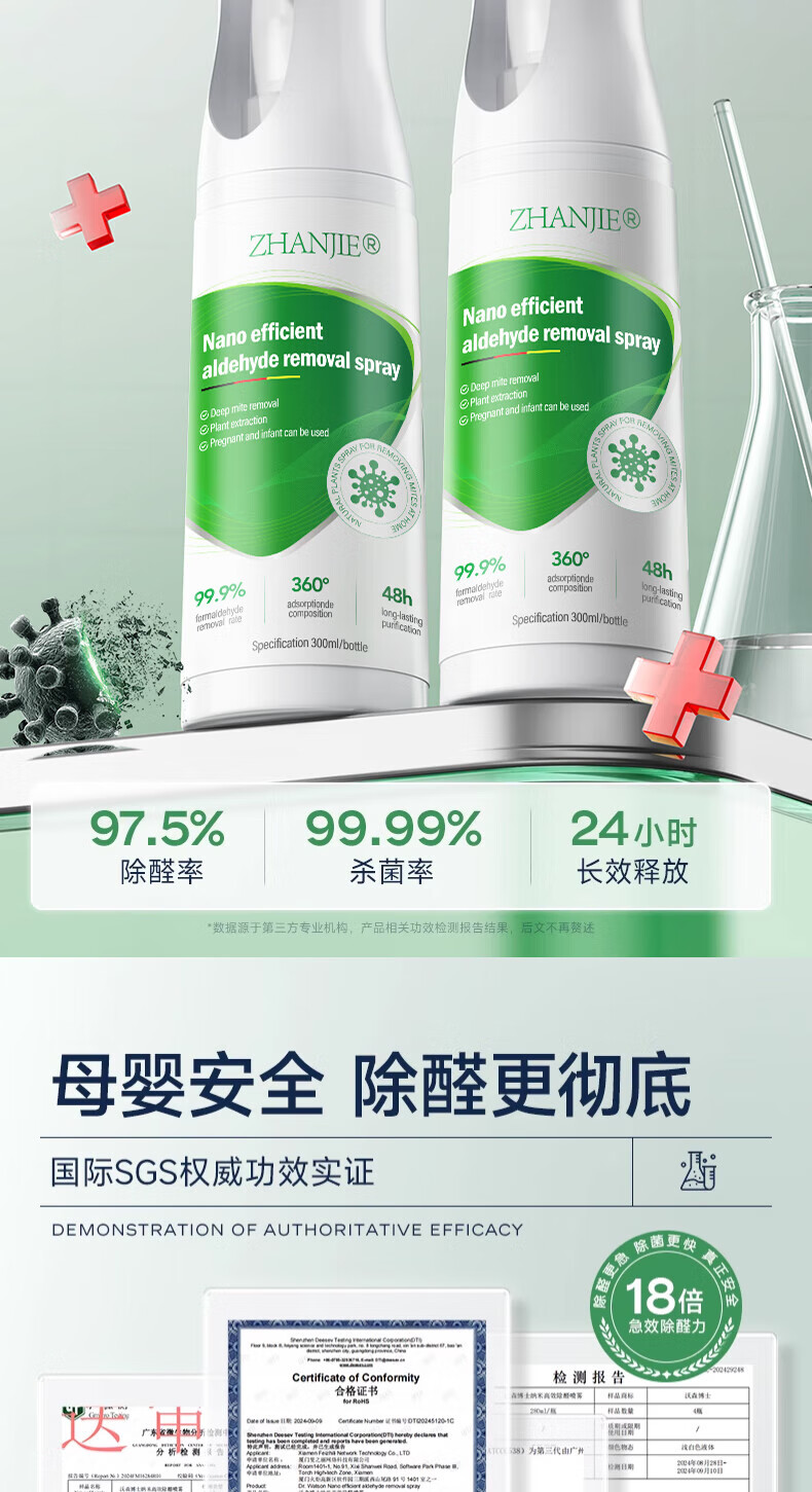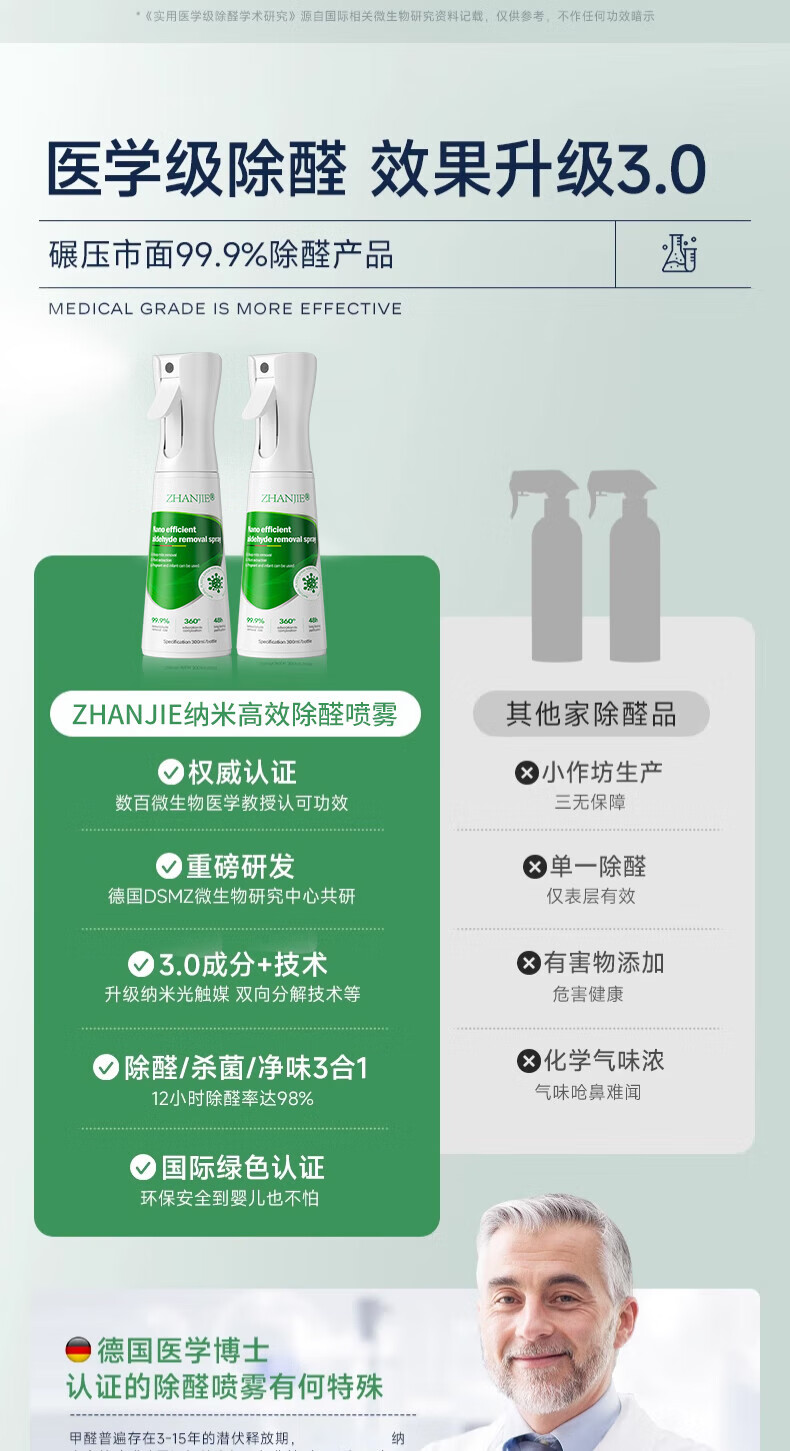 ZHANJIE German photocatalyst formaldehyde removal artifact new house emergency move-in home deodorizing formaldehyde strong spray remover 1500ml3 bottles suitable for 120-160 square meters