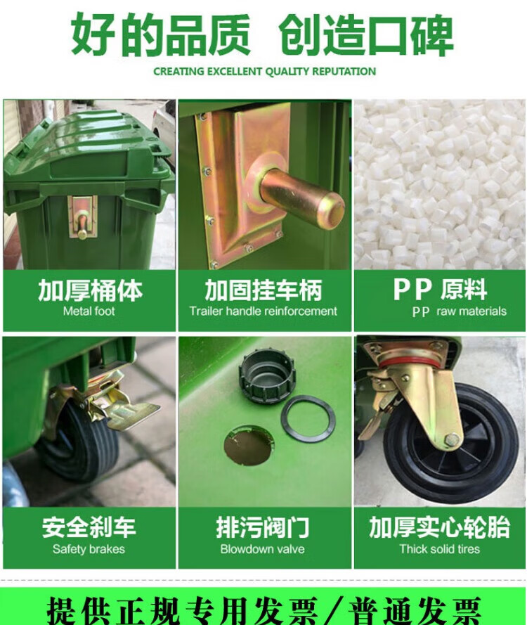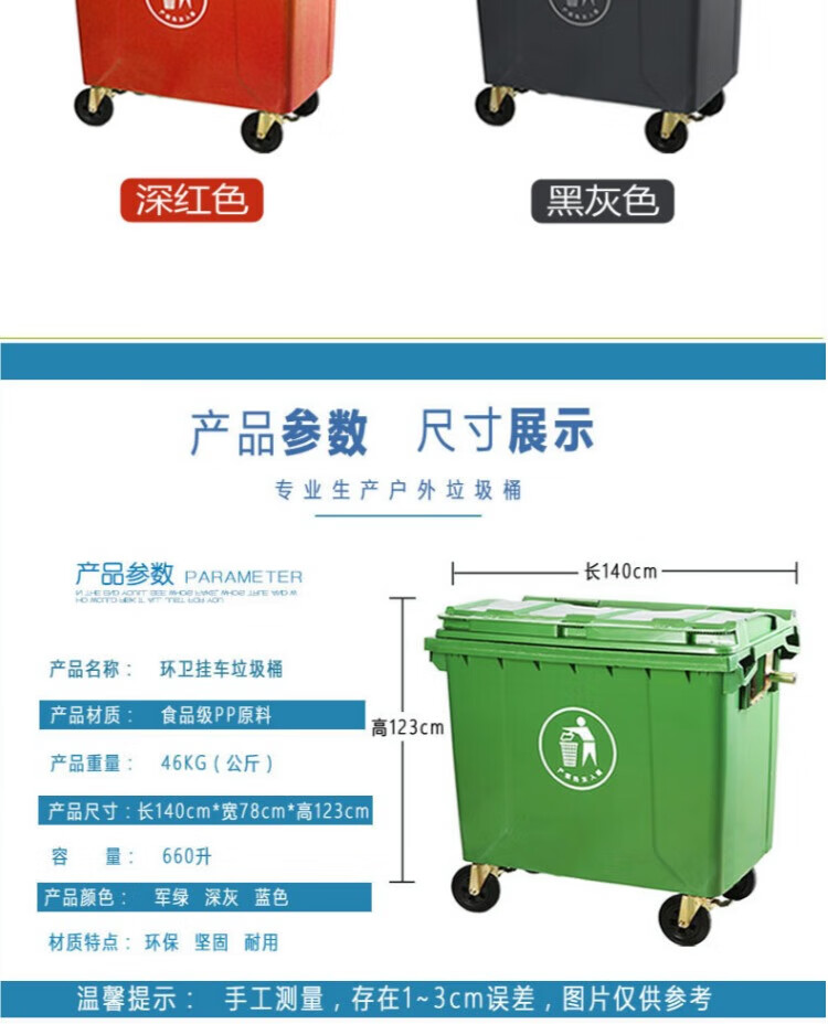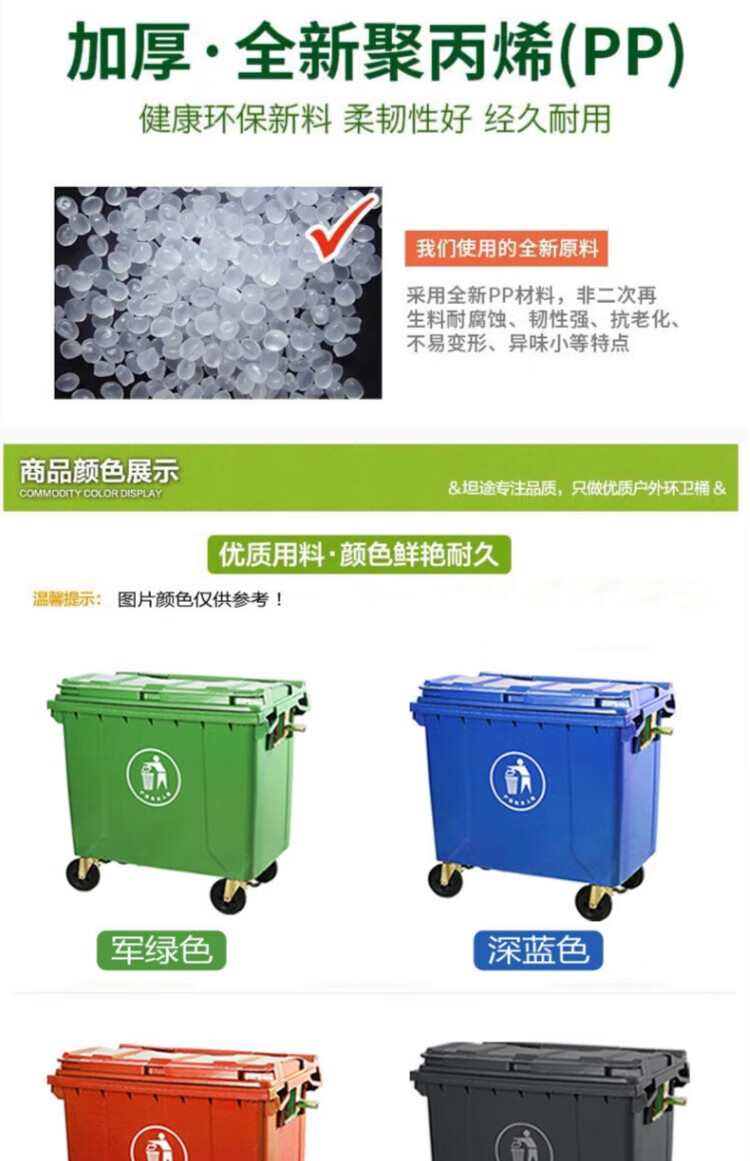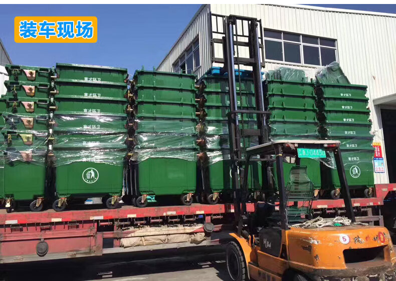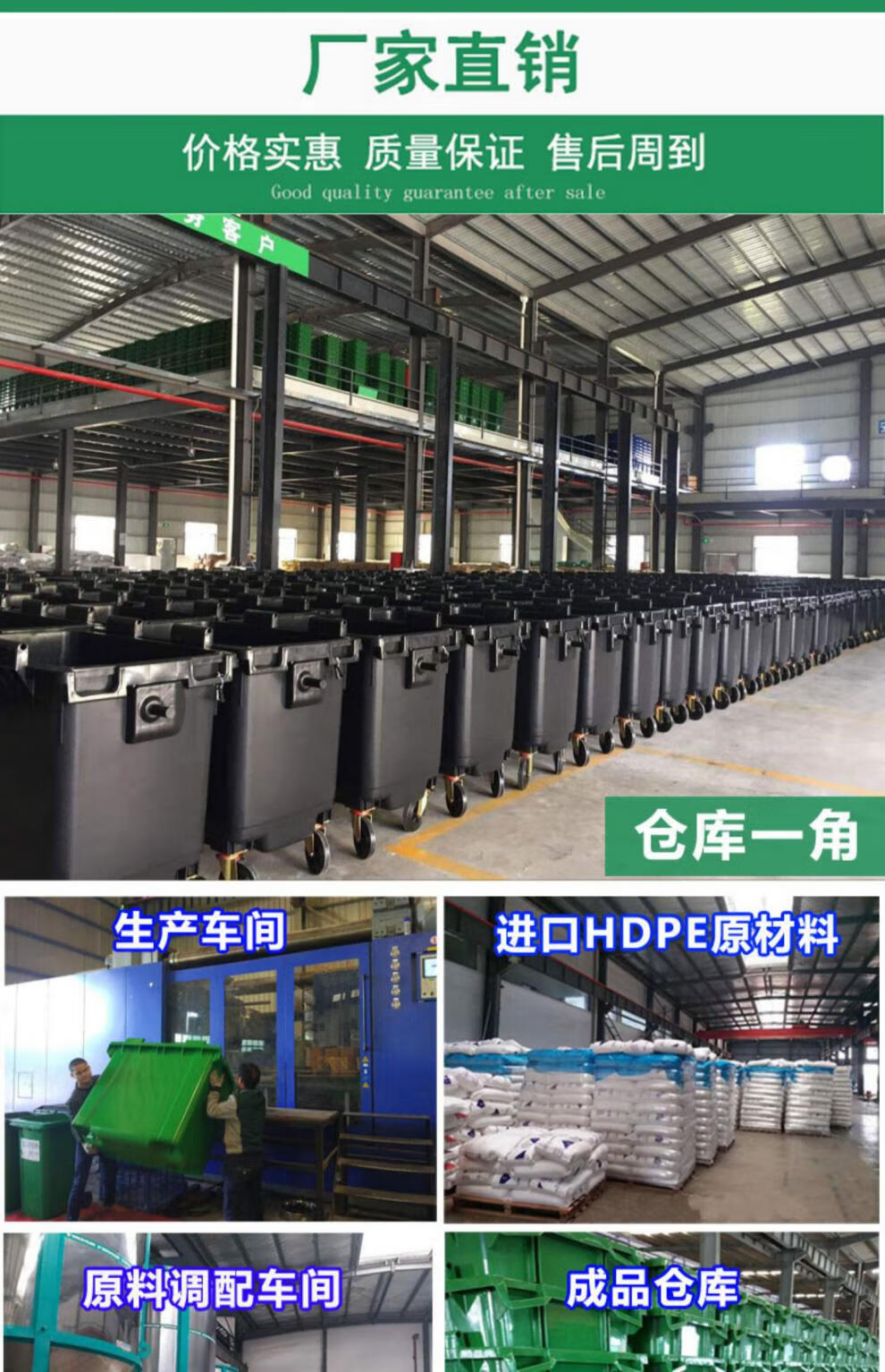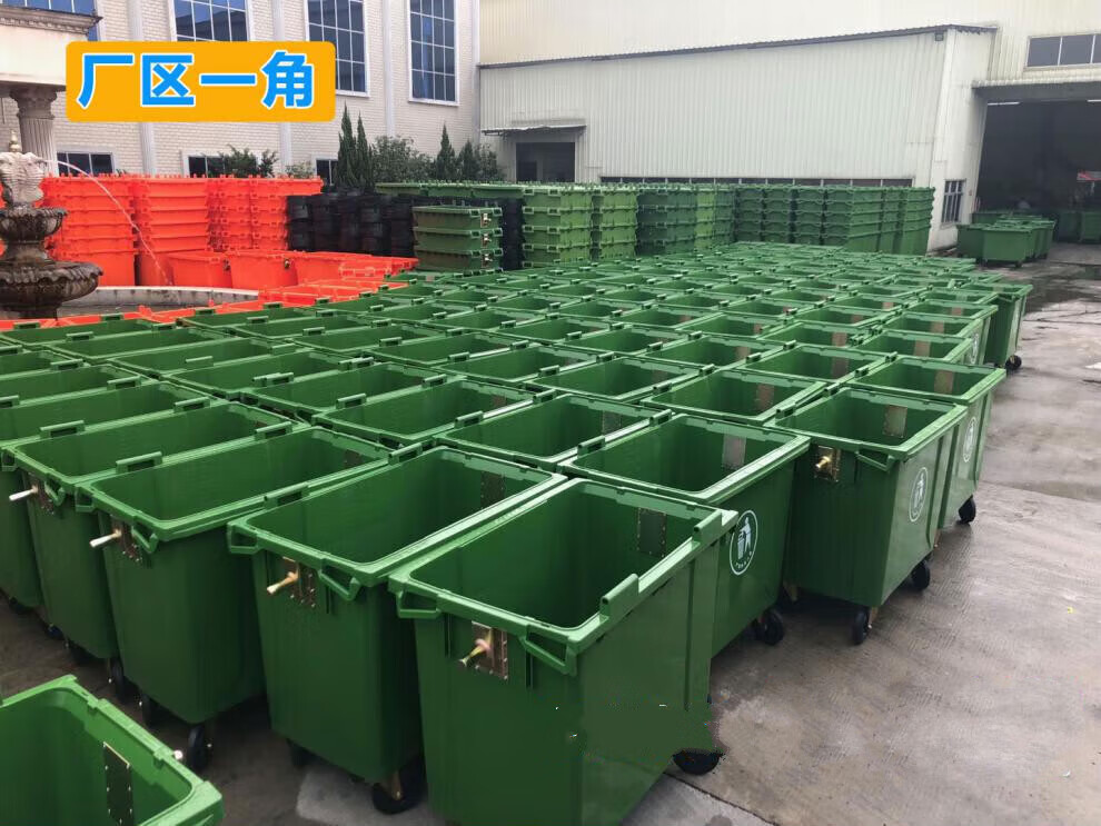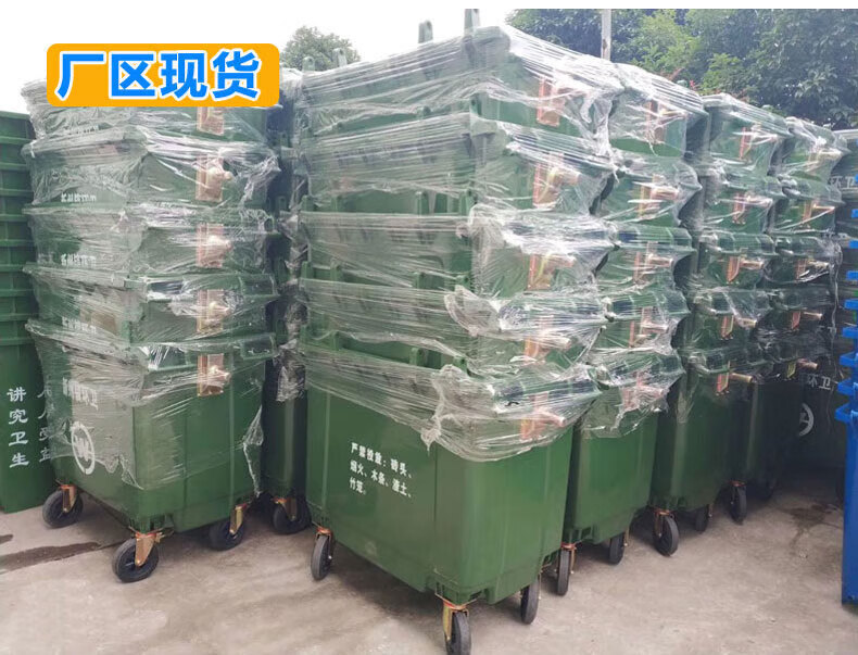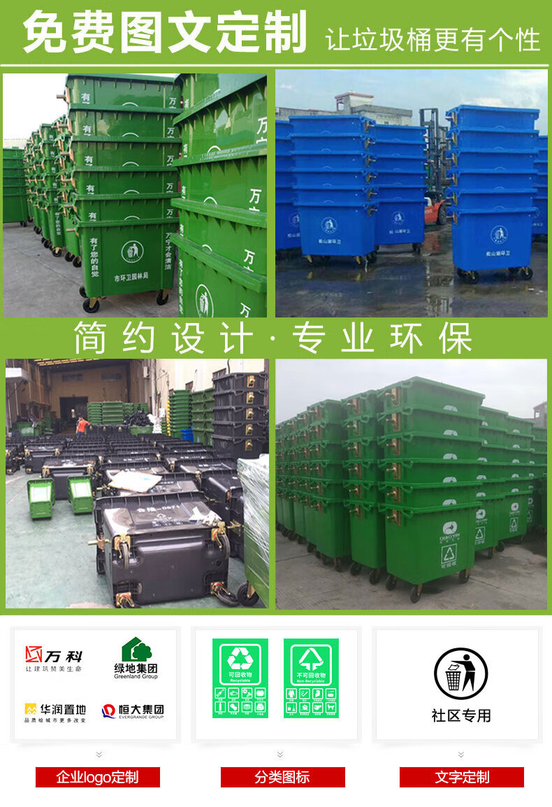 Yue Changsheng sanitation trash can 660 liters L large trailer bucket large outdoor trash bin municipal plastic trash can 660L extra thick reinforced and fall-resistant - green wheel with lid