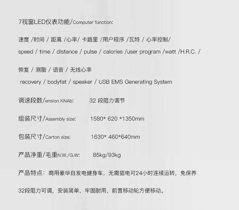 FEEBO horizontal bike commercial home exercise bike intelligent self-generated electromagnetic control rehabilitation lazy gym bicycle commercial self-generated/32-segment resistance-7-window LED screen