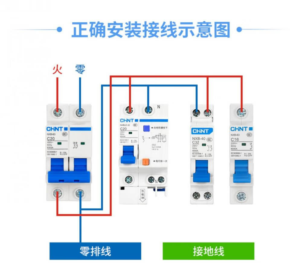 Chint air switch NXB-63 household 1 single air switch 2 circuit breaker DZ47-60 switch 3p three-phase c32A 3P 125A