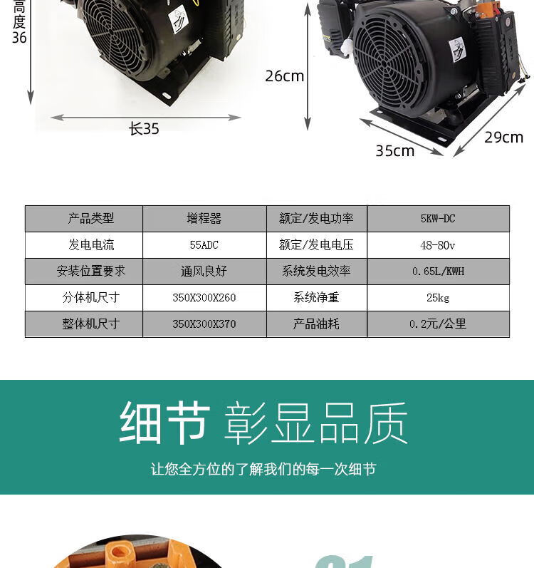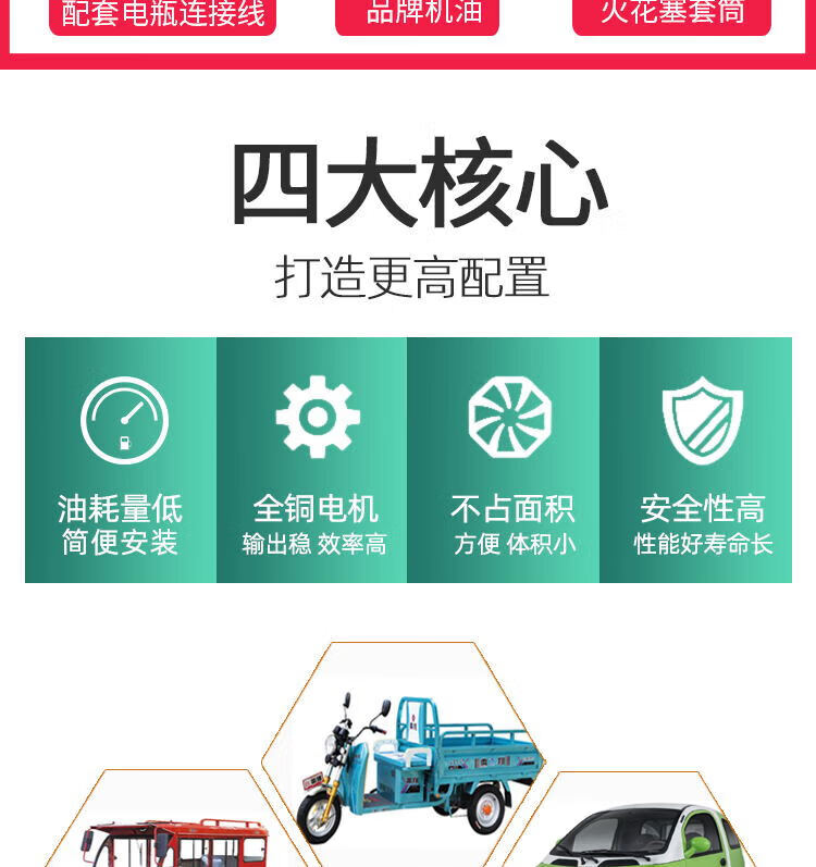 Pupan Shuangqi 48v60v72v electric three-wheeled four-wheeled vehicle range extender pure copper gasoline generator self-starting self-stop remote control smart electric start 3kw