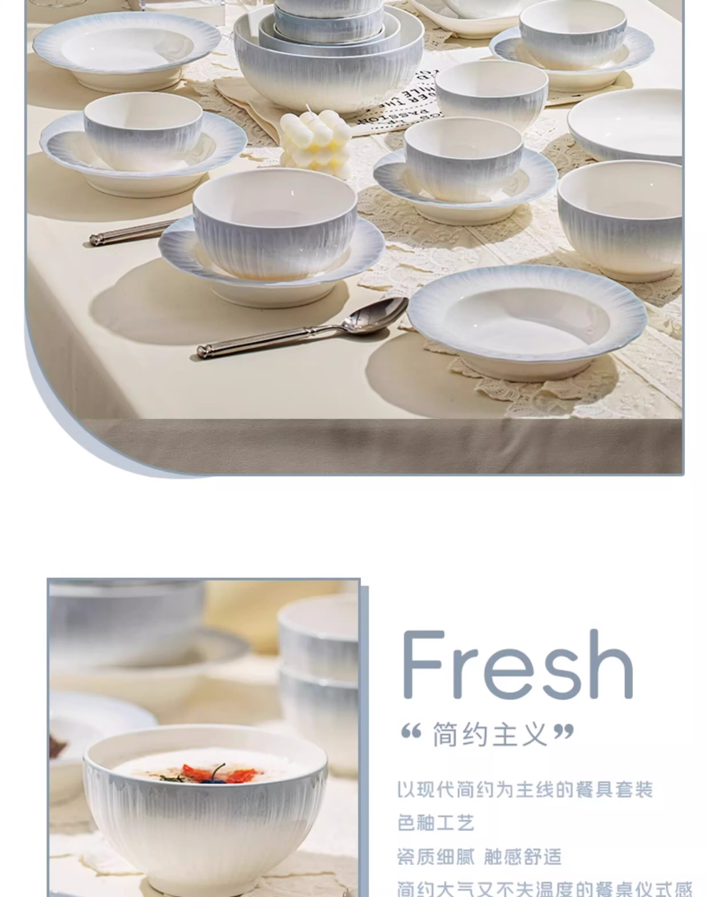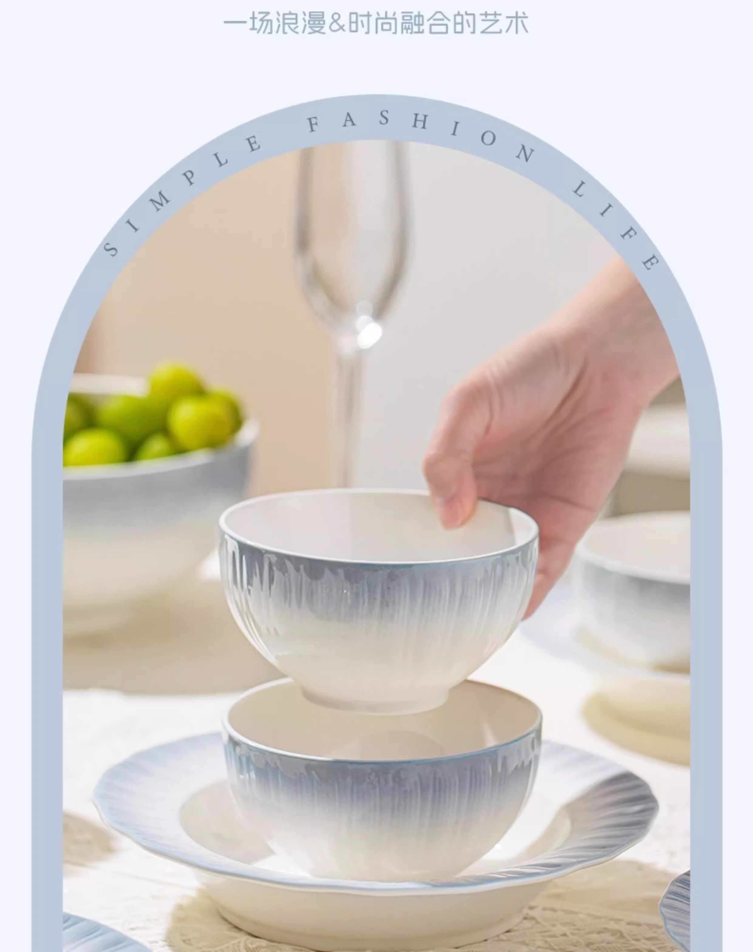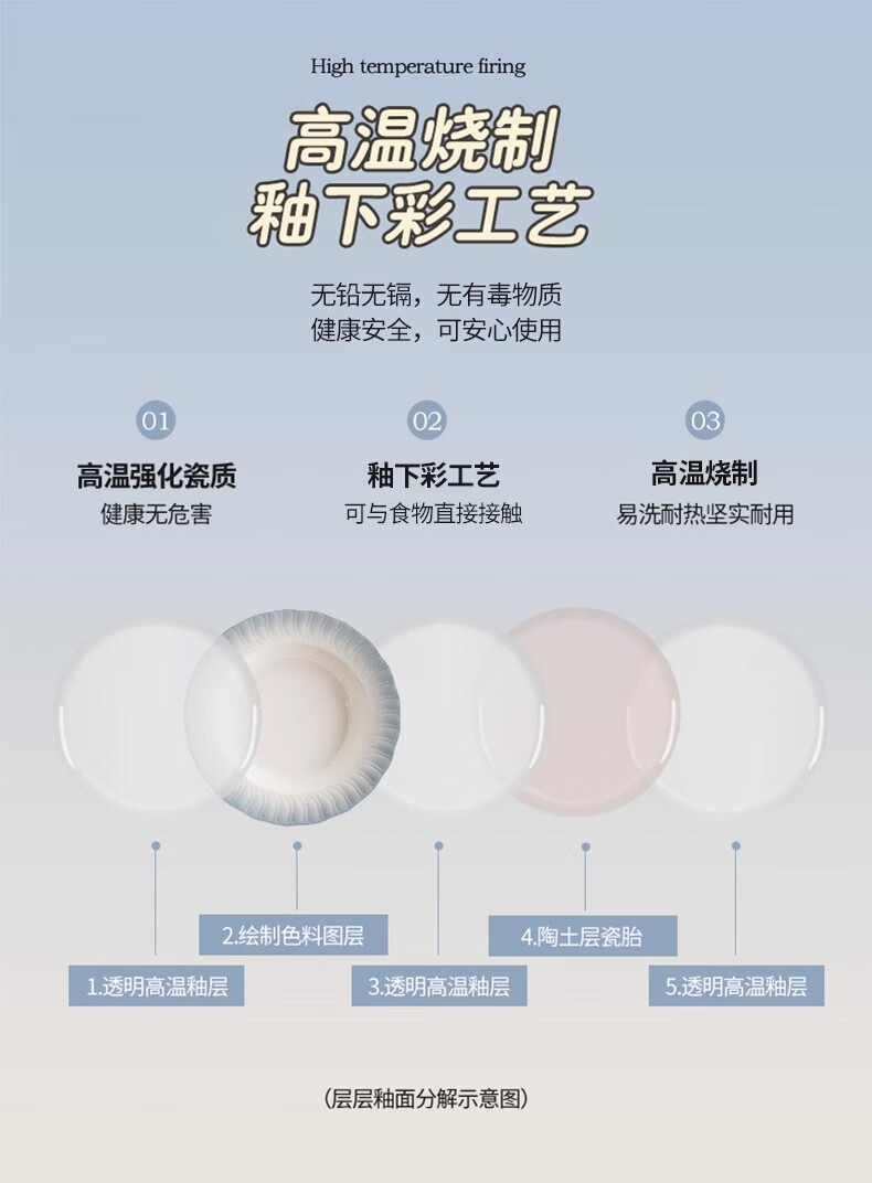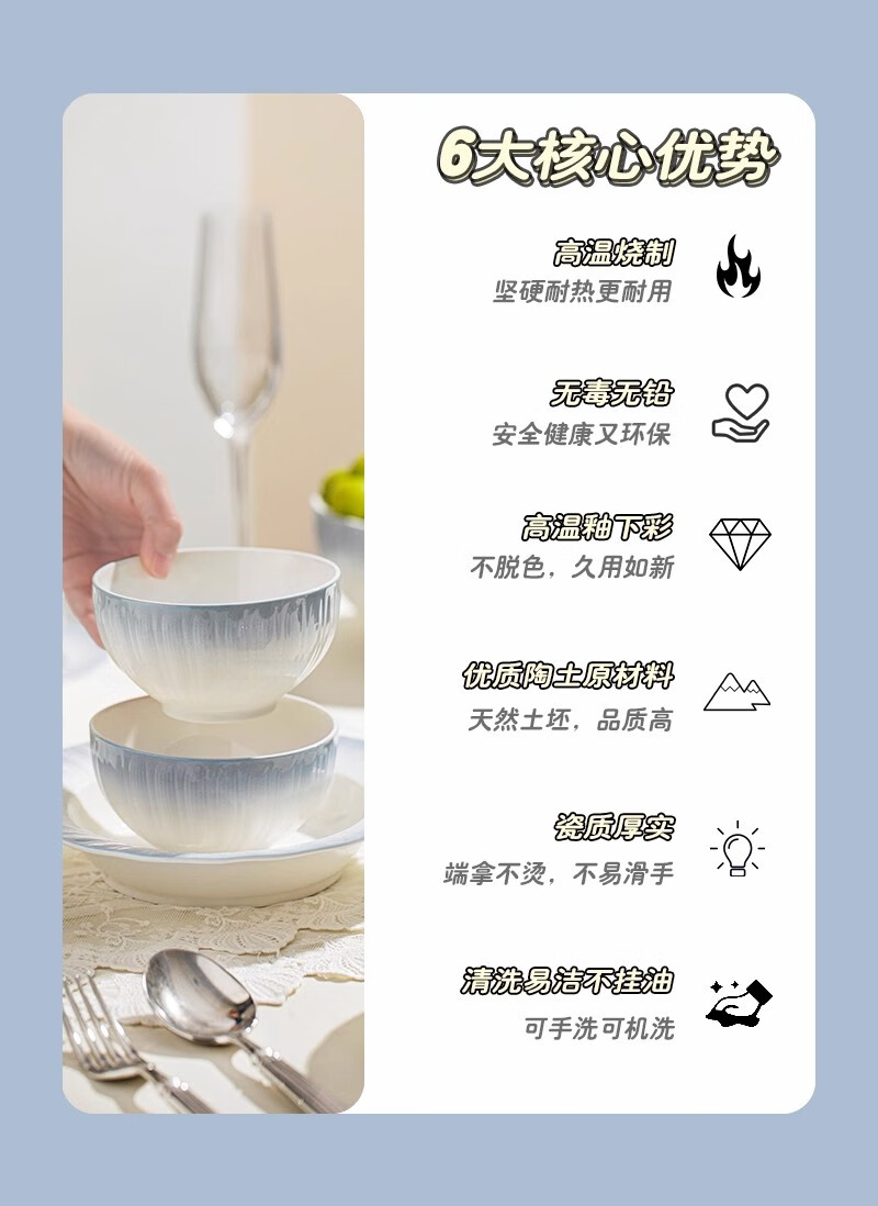 Yichen underglaze color 2025 bowl and dish set, household high-value tableware set, simple ceramic bowls, plates, chopsticks, housewarming gift, high temperature underglaze color, 10-person meal, 66-piece set