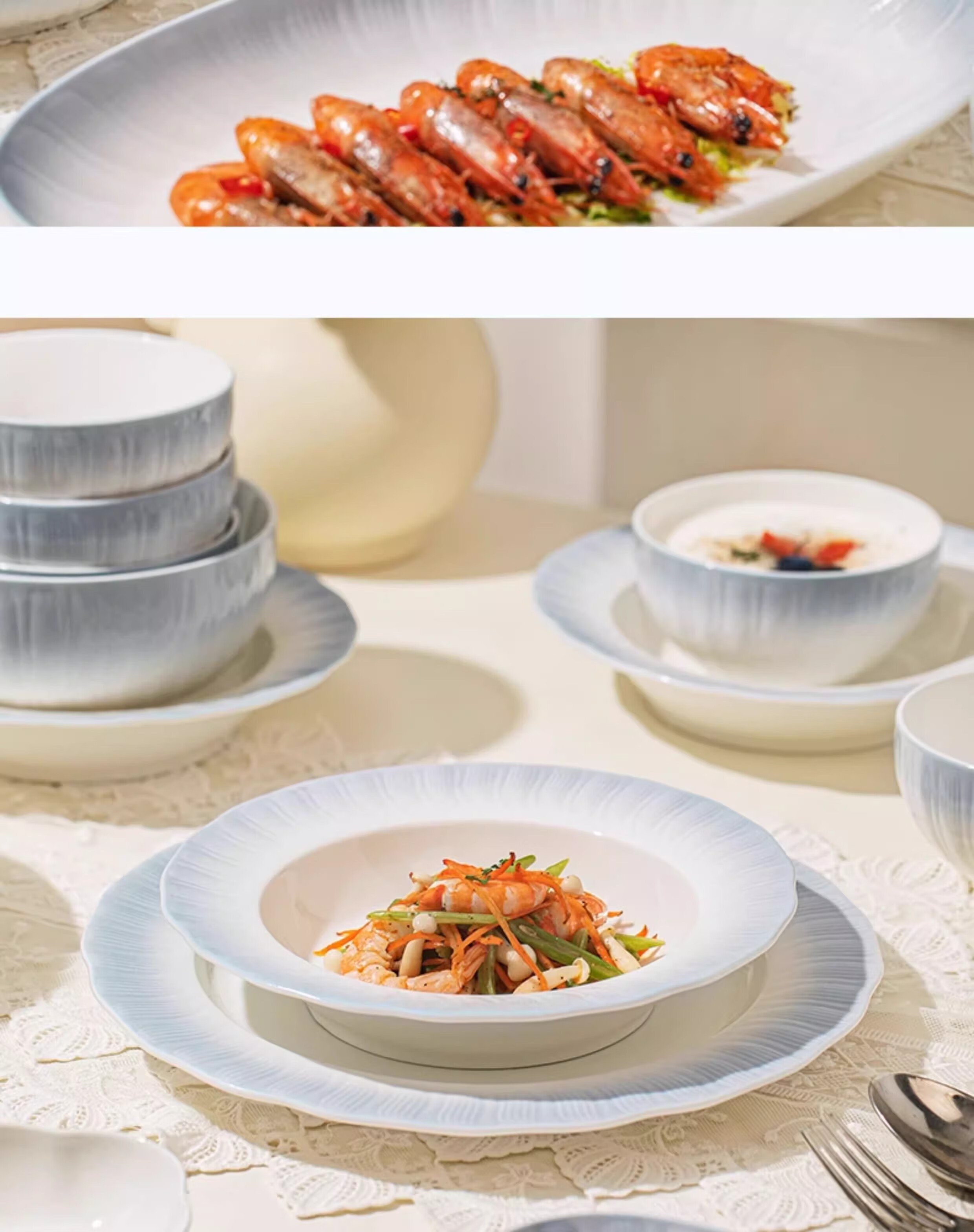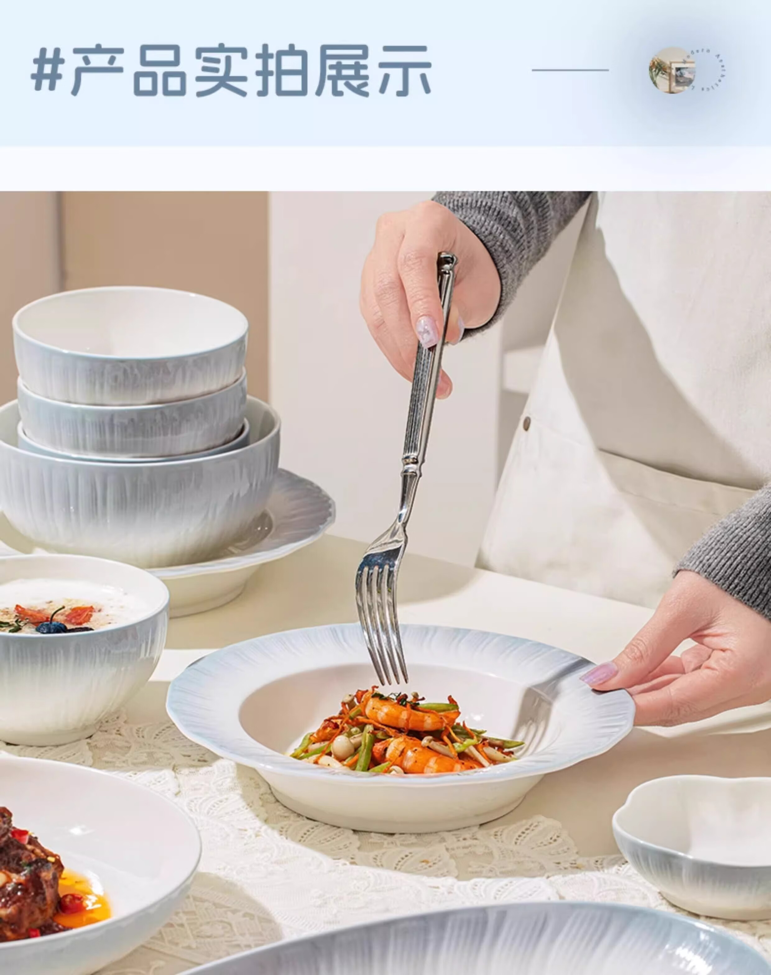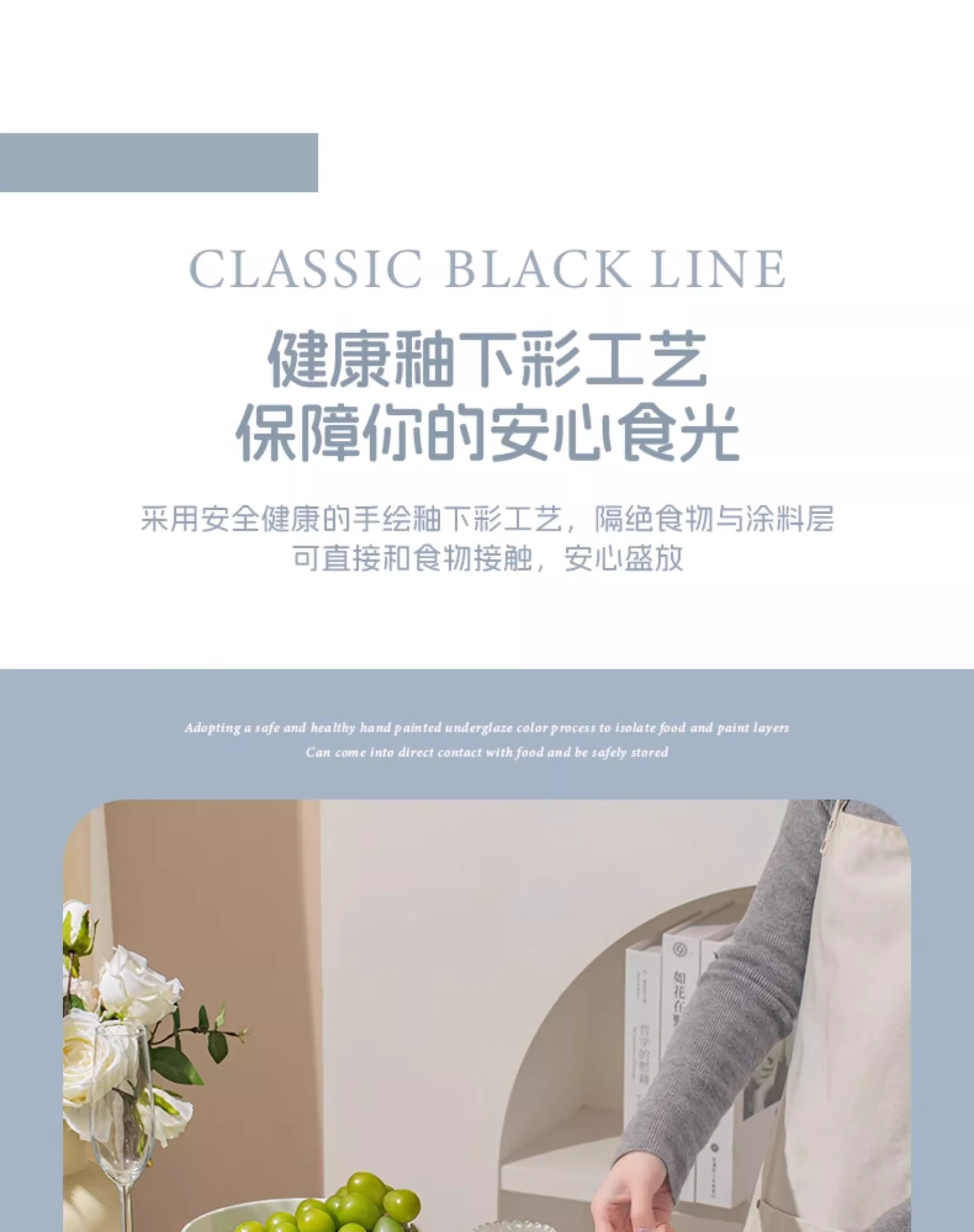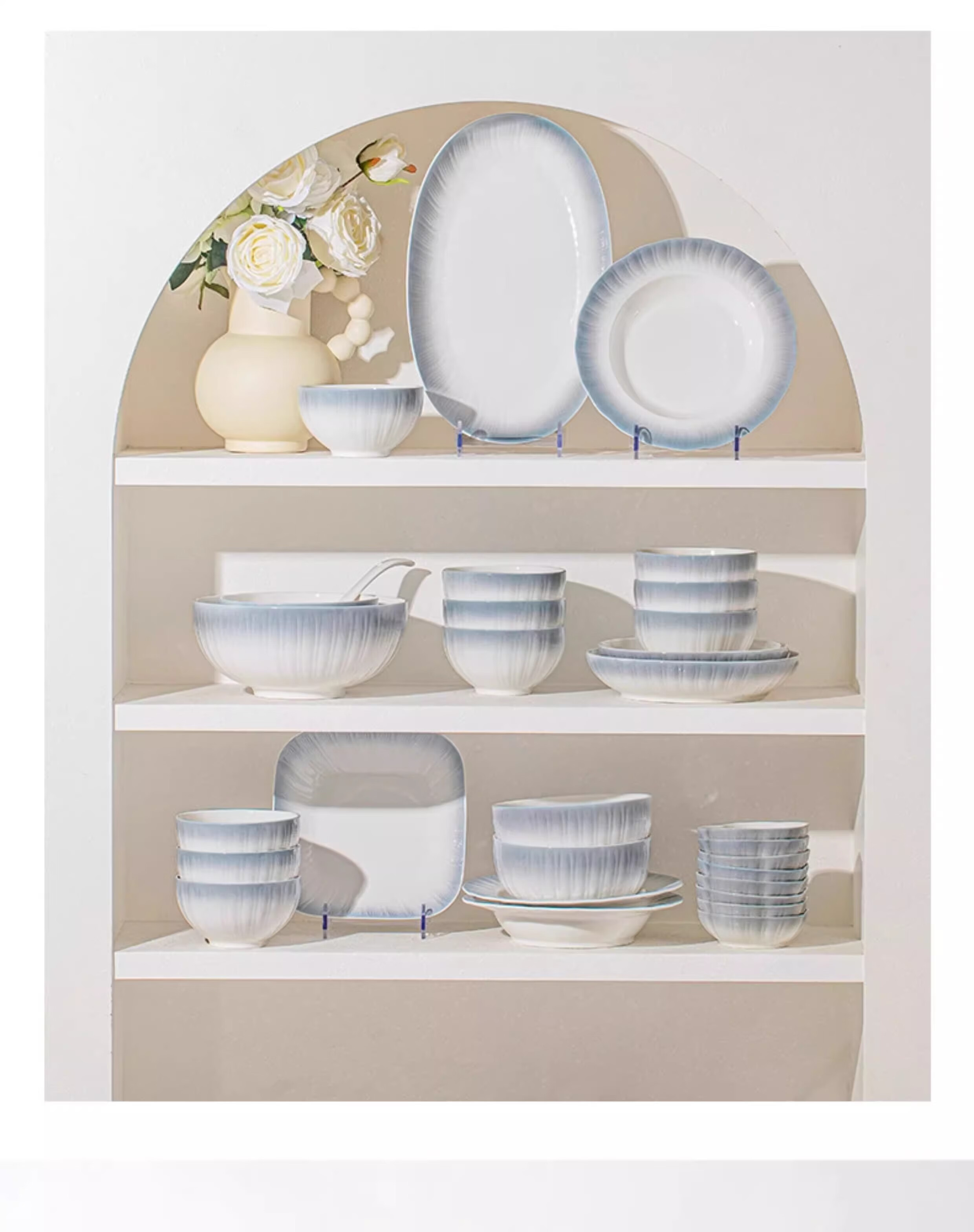Yichen underglaze color 2025 bowl and dish set, household high-value tableware set, simple ceramic bowls, plates, chopsticks, housewarming gift, high temperature underglaze color, 10-person meal, 66-piece set