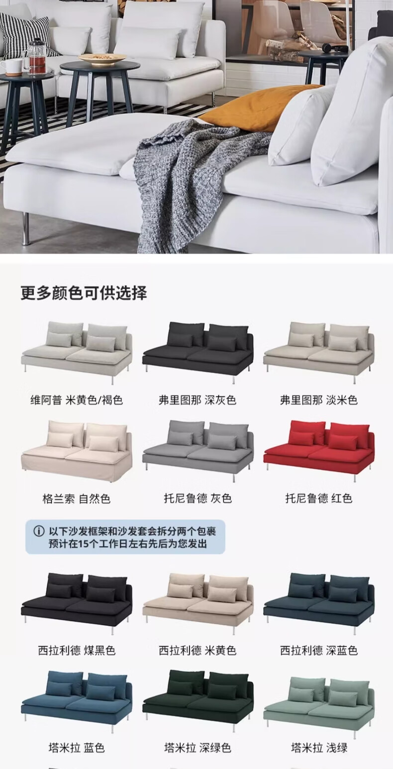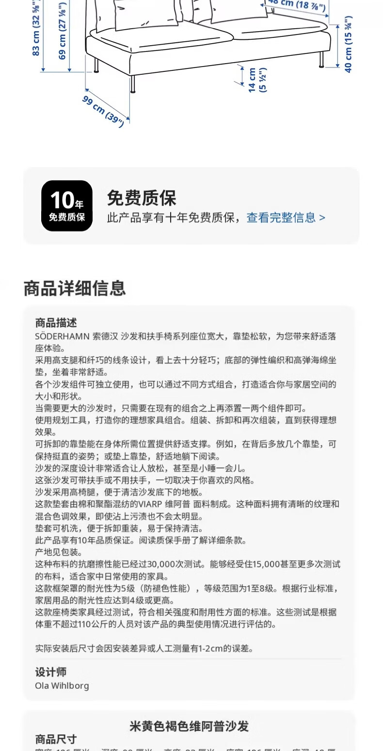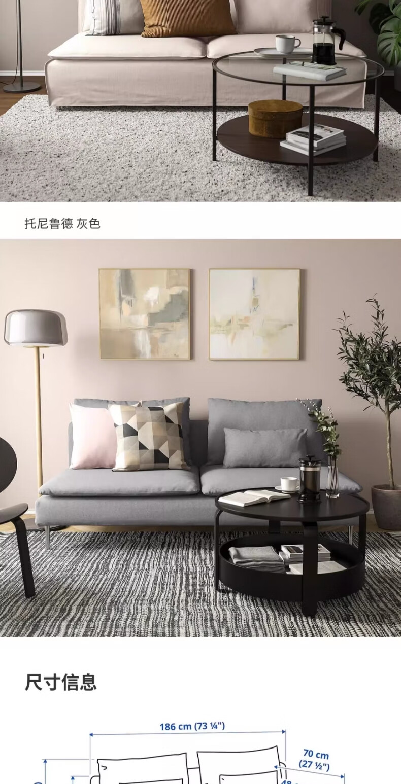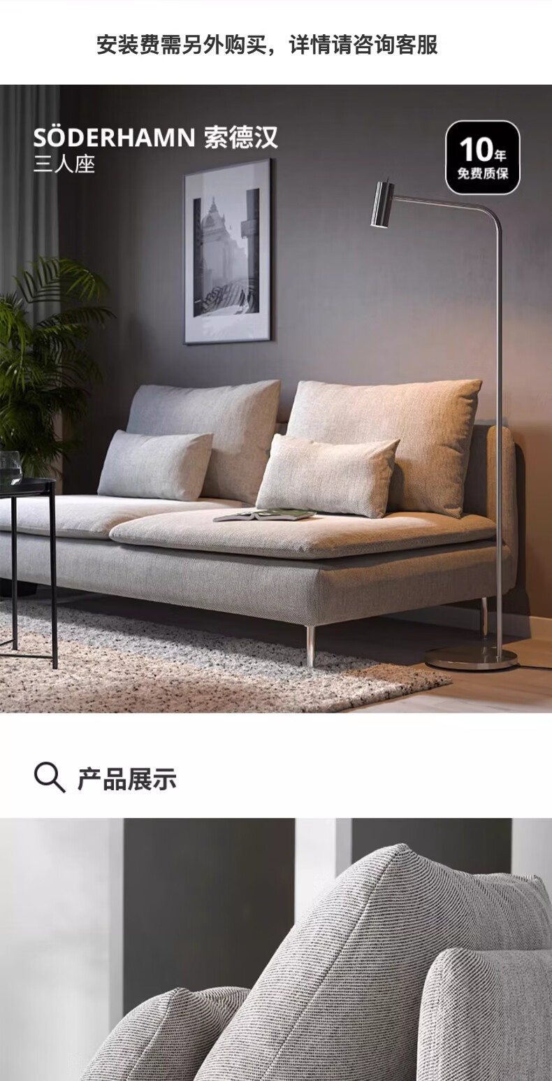 IKEA SODERHAMN simple fabric sofa living room three-person sofa beige brown Weap sofa + coffee table
