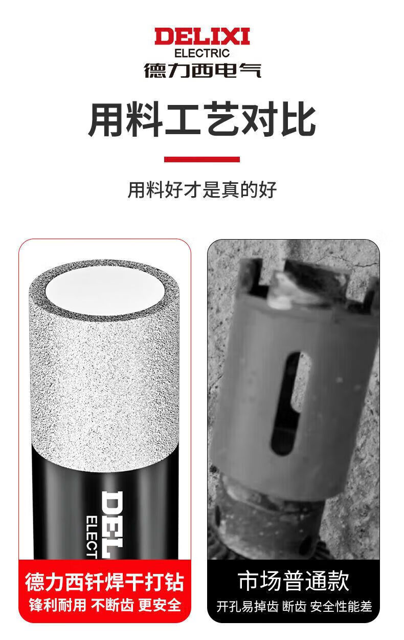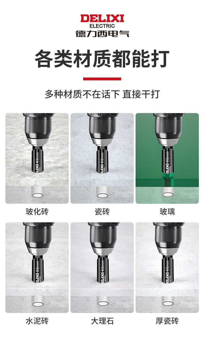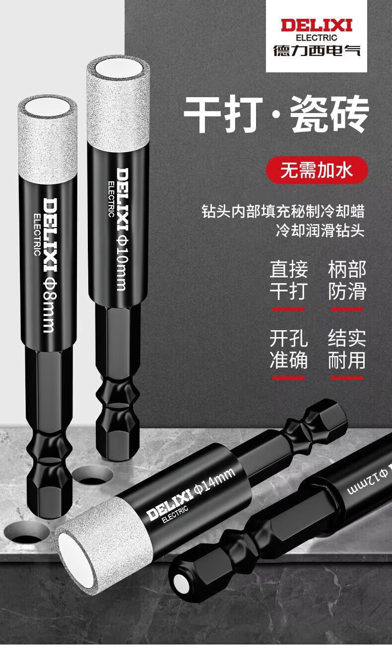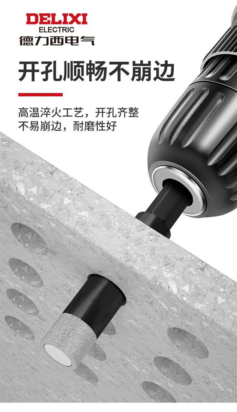 Delixi Electric tile drill bit for dry drilling of all-ceramic floor vitrified tiles marble round hole hand electric drill special hole punching emery hexagonal handle 6mm 5 pieces
