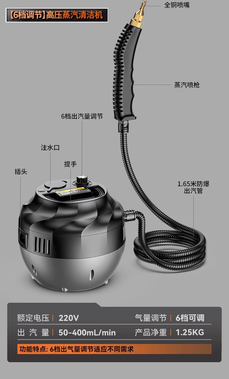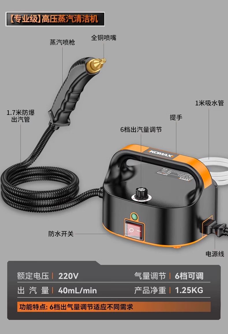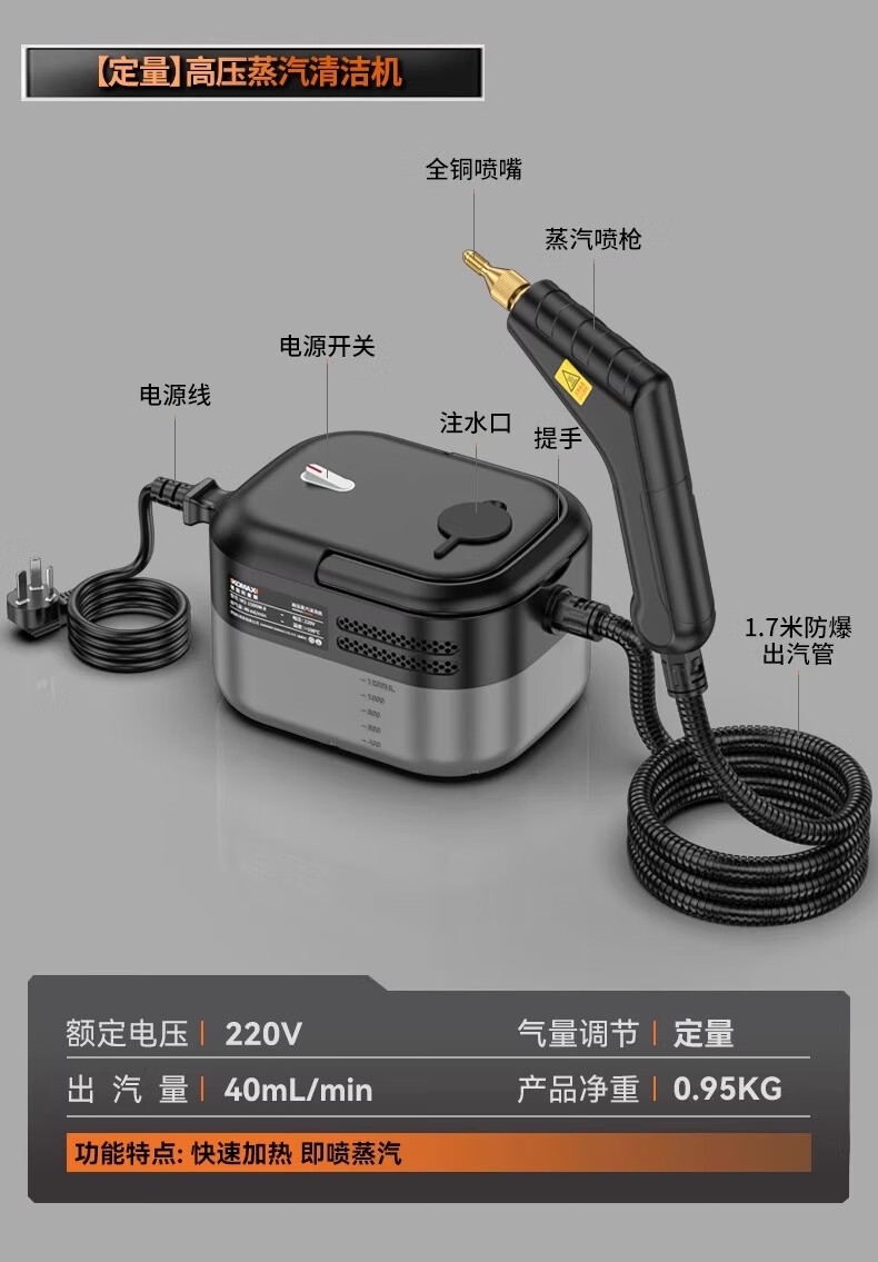 Moreland high-temperature and high-pressure steam cleaning machine household multi-functional portable whole-house kitchen range hood air-conditioning cleaning machine multi-functional all-in-one handheld steam mop high-power high-pressure steam cleaning machine household floor scrubber