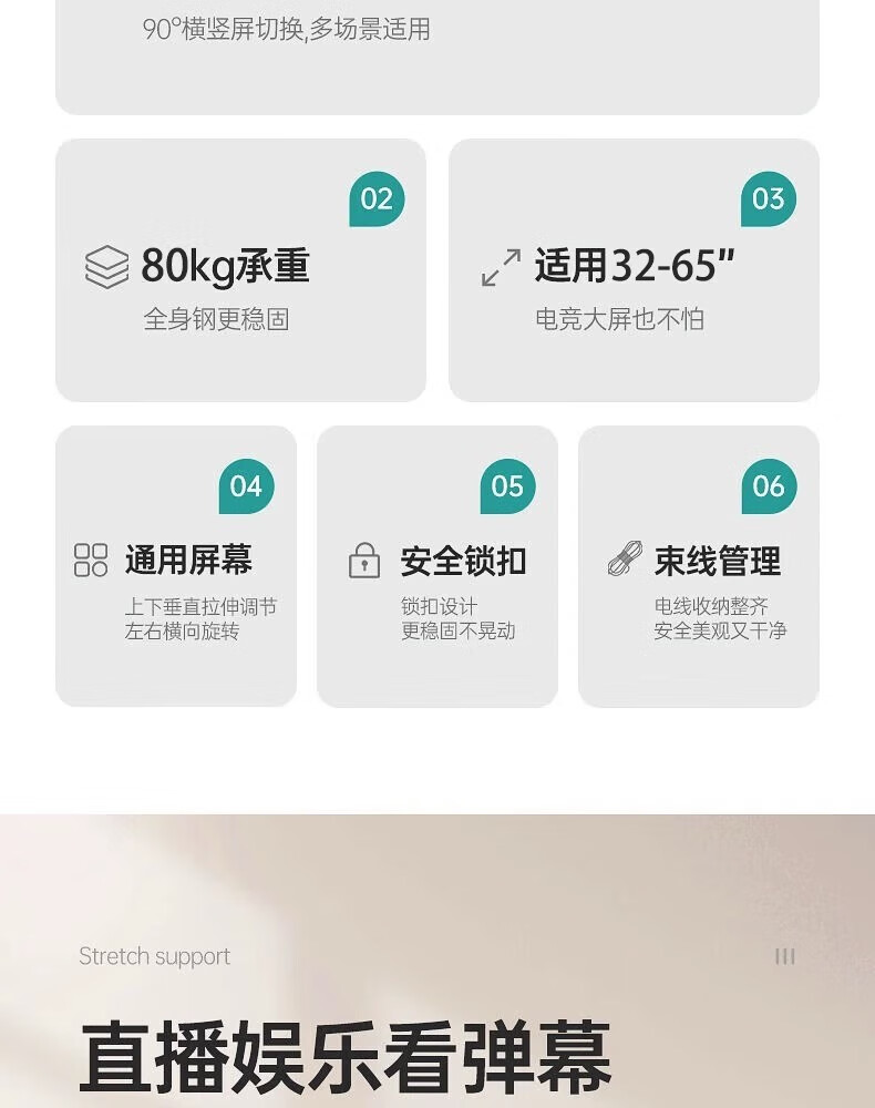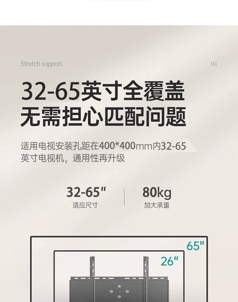 Xiaomi TV Mount Mobile Bracket Telescopic Mount (40-80 inches) Wall Mount Mobile Wall Mount Suitable for Hisense TCL Special TV Stand Skyworth Sony LeTV 43-inch TV Mount
