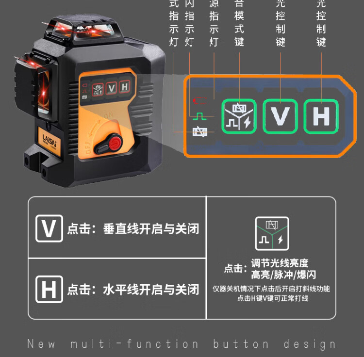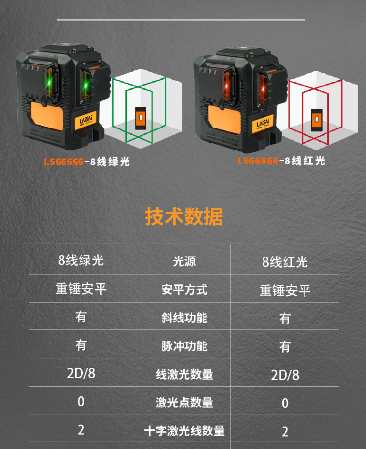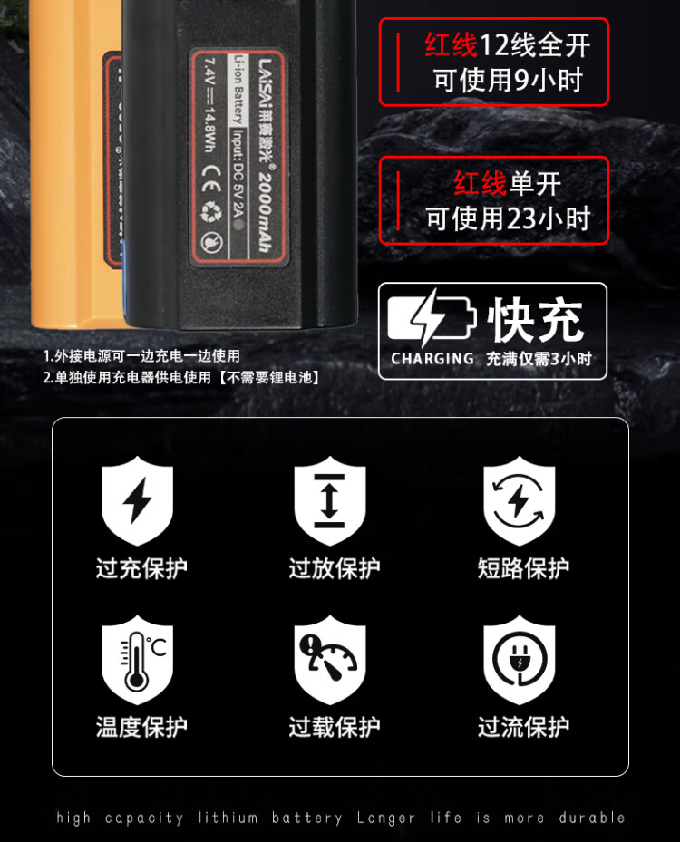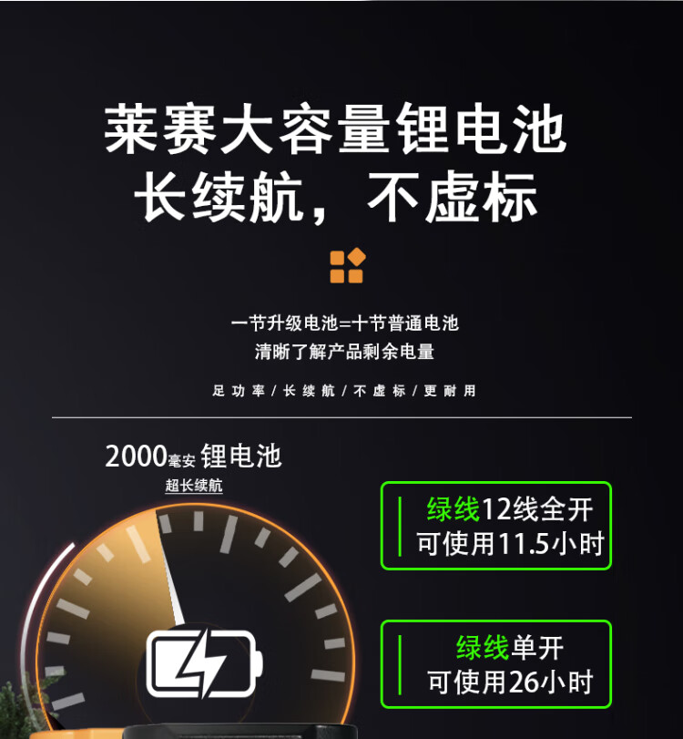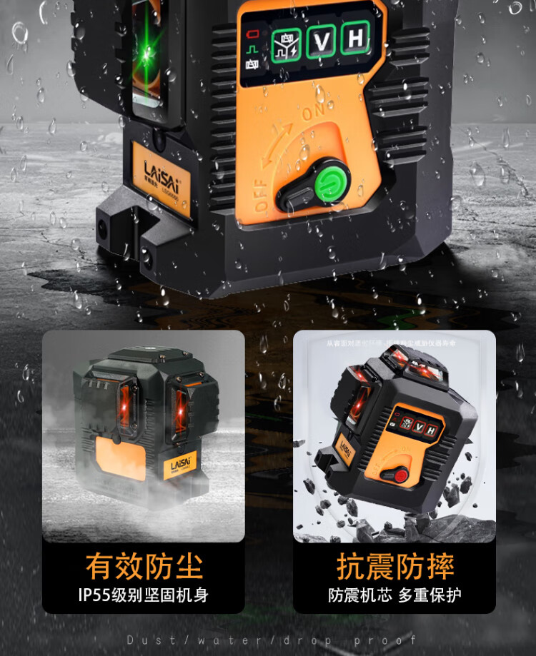 LAISAI level 12 lines 6666 strong light thin line infrared engineering grade anti-fall high brightness light source finely adjusted to emit green light dual lithium battery + wall bracket + fine-tuning base