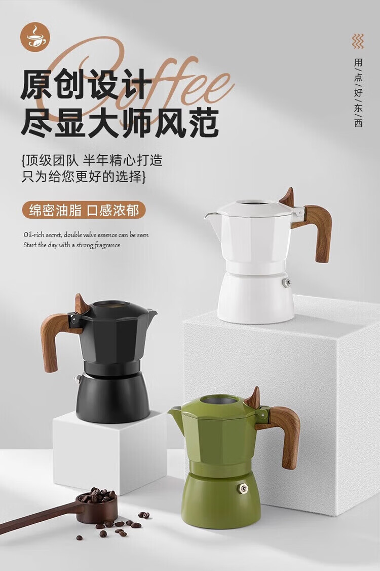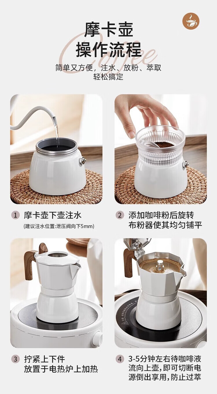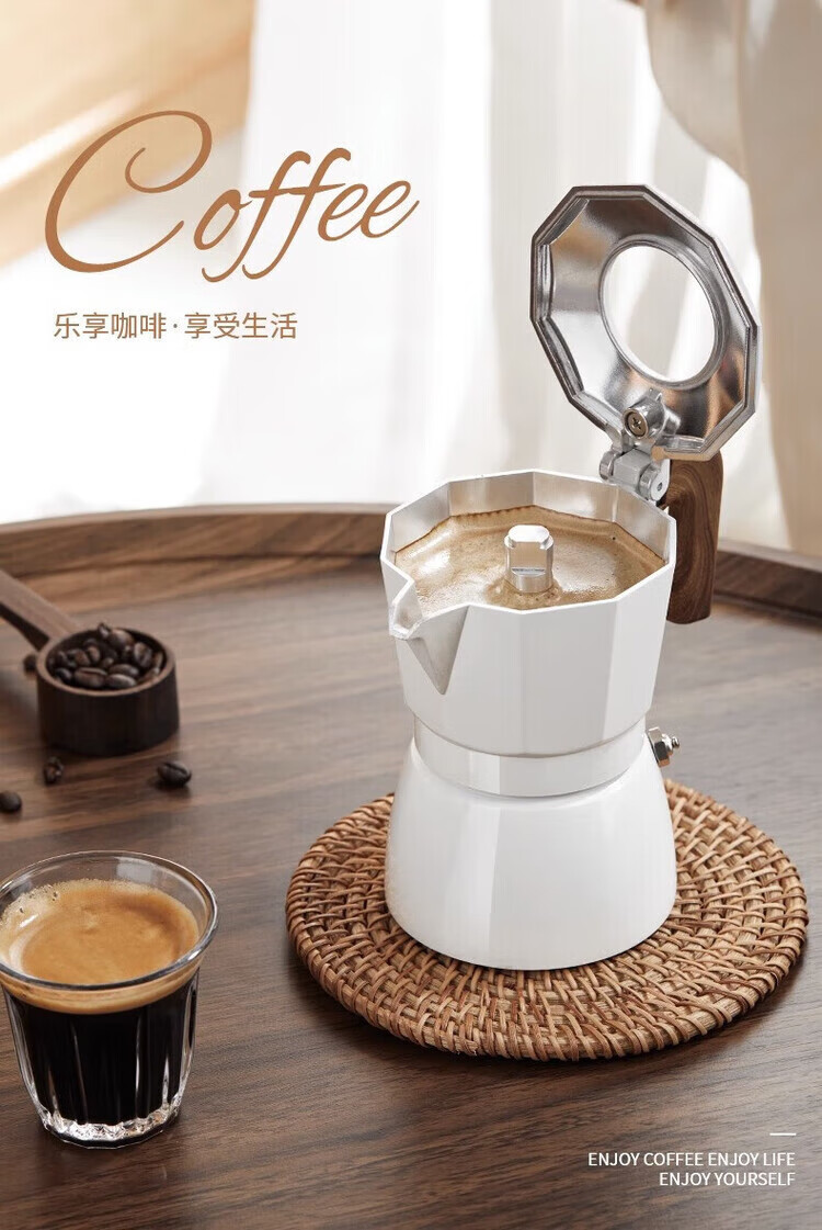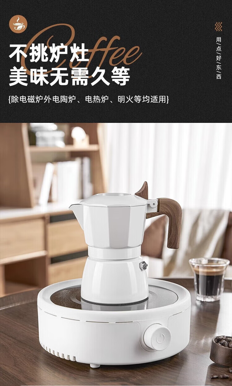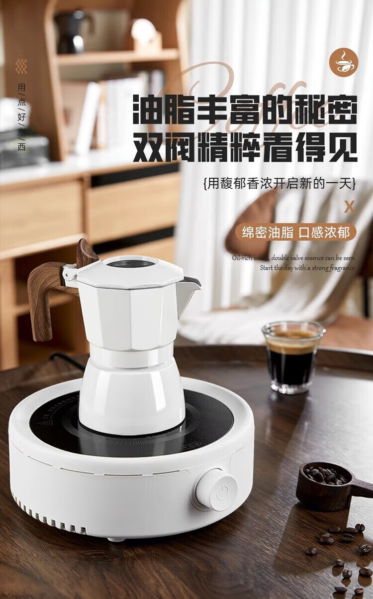 Pang Donglai's same model PRAYIN Baicuiqi Moka Pot double valve espresso coffee pot outdoor brewing coffee Moka pot concentrated white moonlight + filter paper + powder distributor + electric ceramic stove