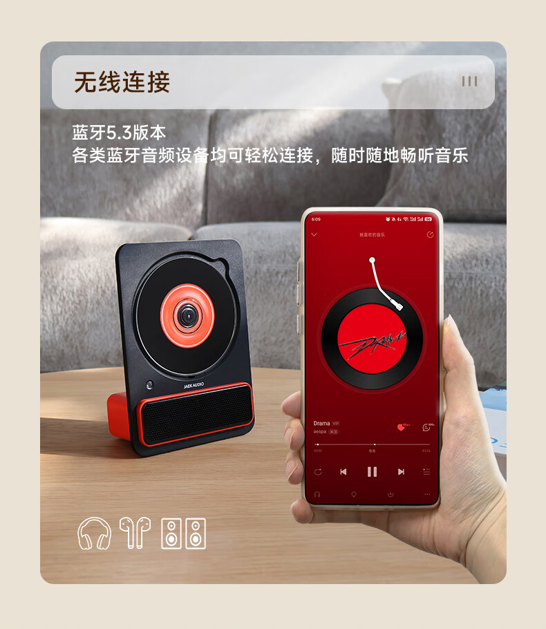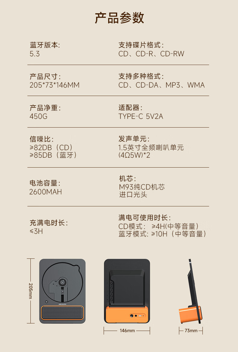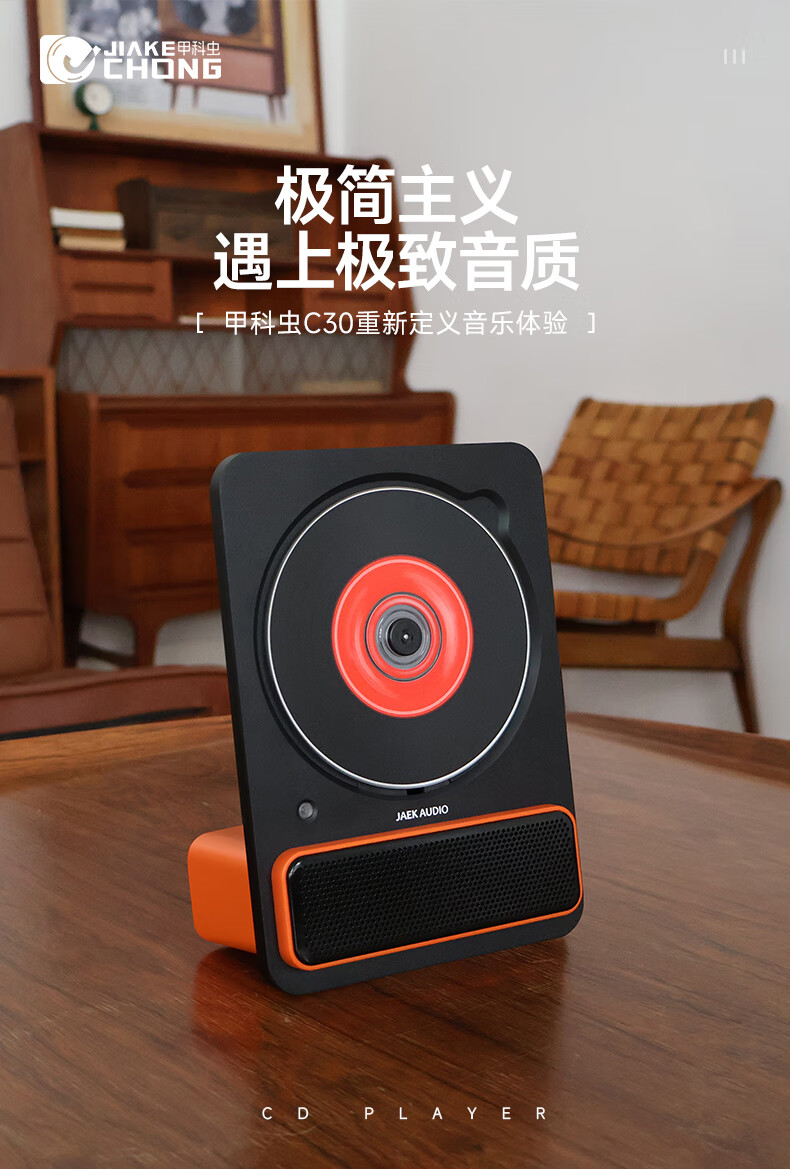Beetle C30 Simple CD Record Player Album Player CD Disc Bluetooth Speaker Music Phonograph Vibrant Orange 9 Acoustic Elevation Angle + Recording Studio Sound Effect + Lossless Disc Reading