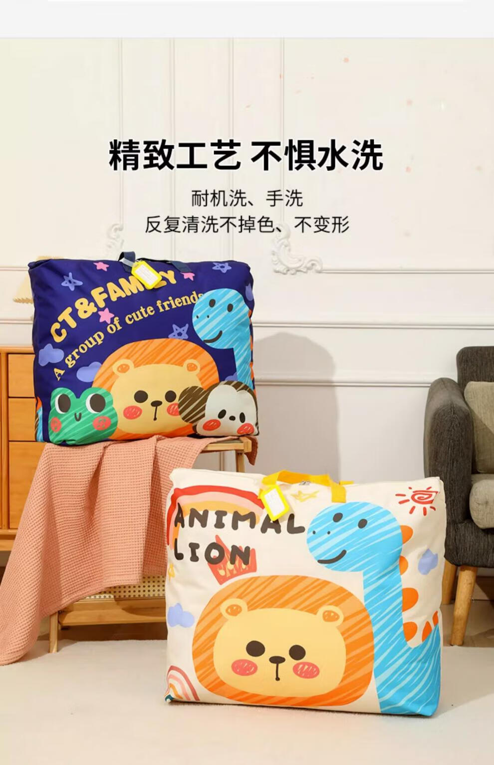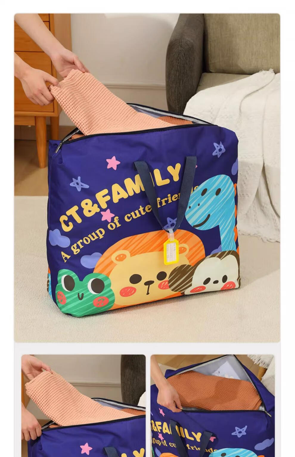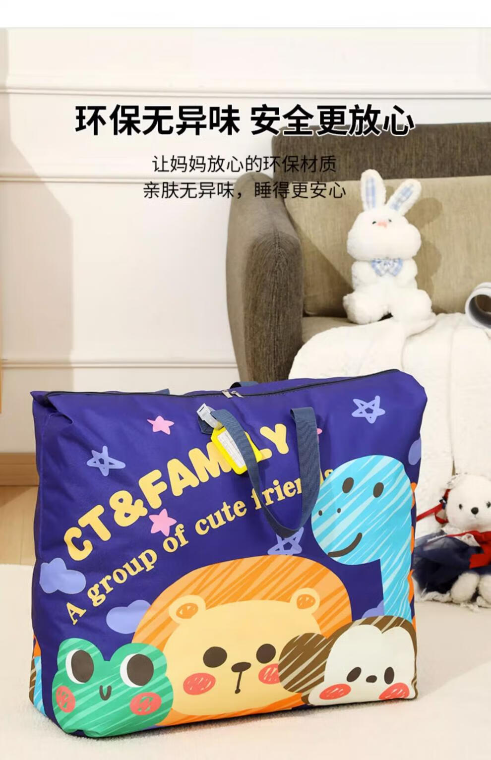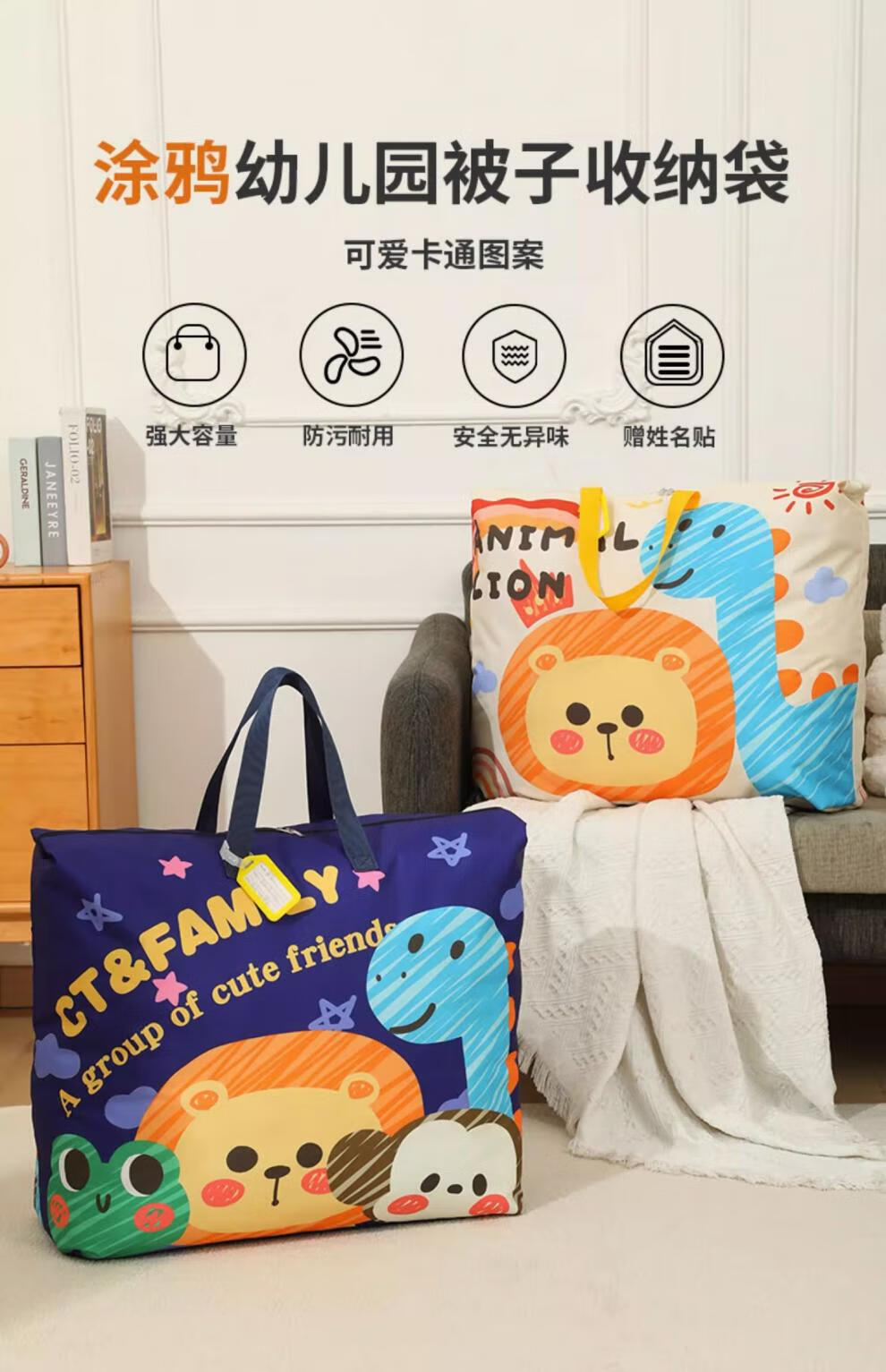BIBK German quality kindergarten quilt storage bag waterproof and moisture-proof Oxford cloth large capacity children's baby luggage quilt Navy graffiti upgraded thickened wear-resistant Oxford cloth + name tag medium size 56*45*16cm children's summer thin three-piece set, etc.
