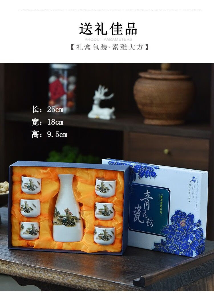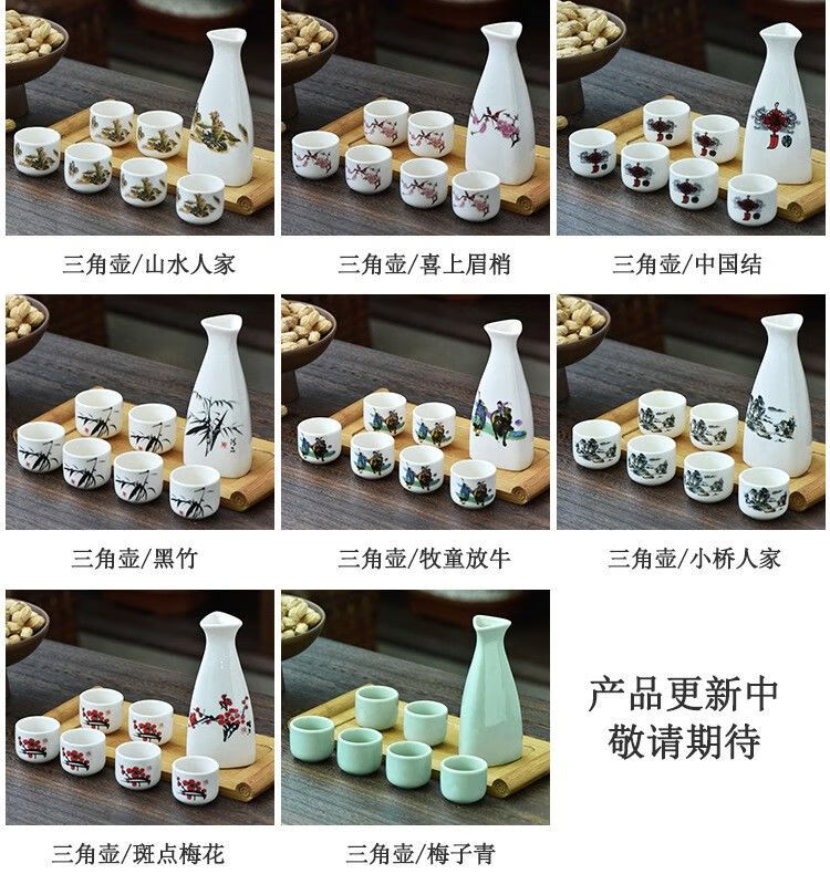 Ceramic wine set antique ceramic wine set simple wine divider white wine cup yellow wine cup green wine set Japanese hot wine Chinese knot-safe packaging one pot two cups
