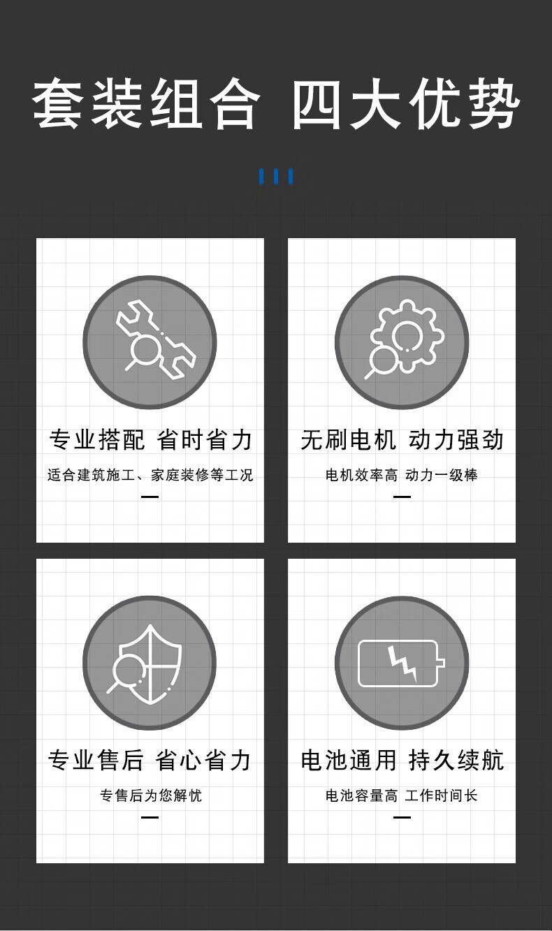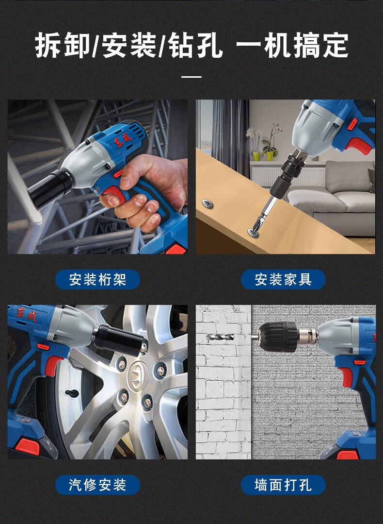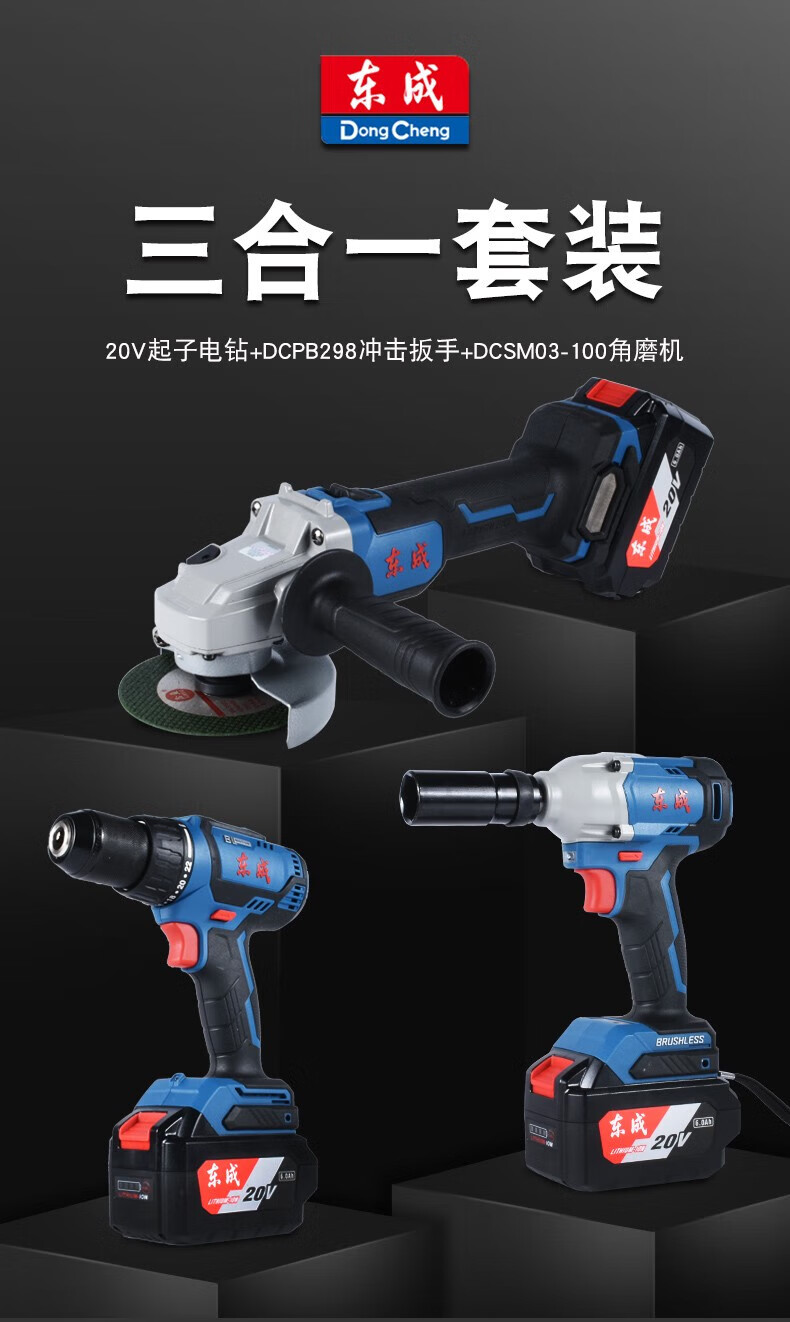 Dongcheng rechargeable brush electric drill lithium battery wrench high power angle grinder multifunctional three-piece set electric tool electric wrench angle grinder plus plastic box 4.0 two batteries and one charger