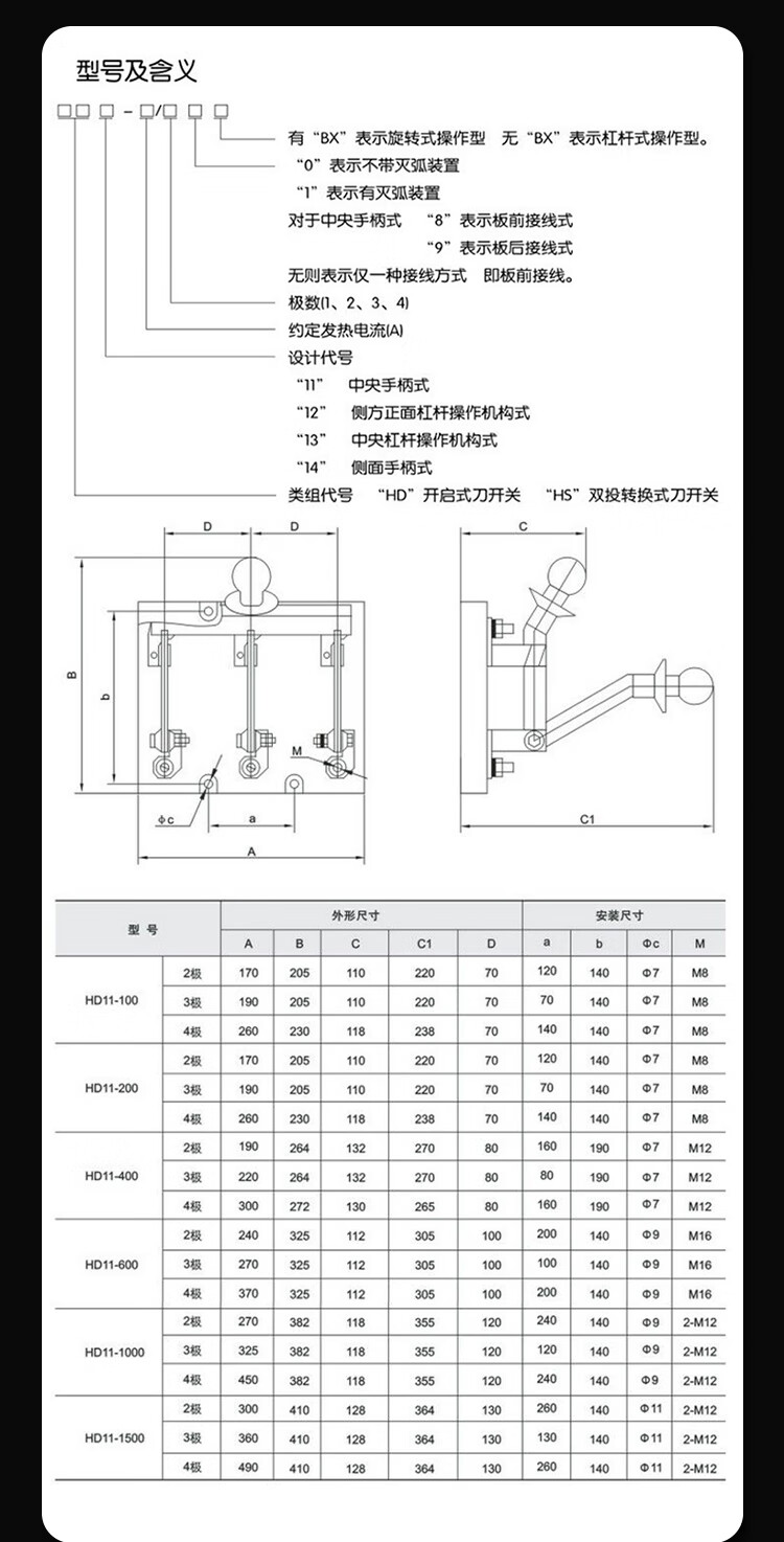 Chint three-phase knife switch 2P3P4P single throw HD11F-100 200A two-way copper parts 400A isolation type HD11F-1500A/48 copper parts
