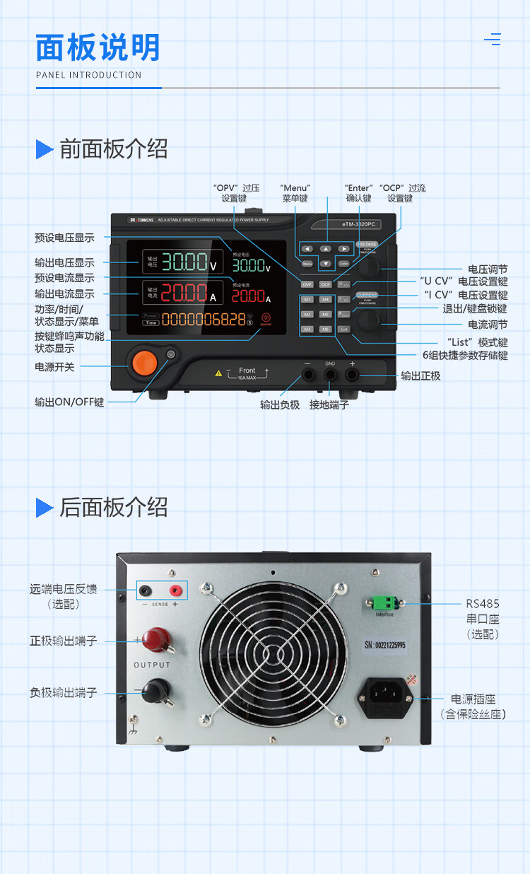 Same door adjustable DC regulated power supply high power factory aging test experiment maintenance charging electroplating DC power supply eTM22020PC (0~220V-0~20A)