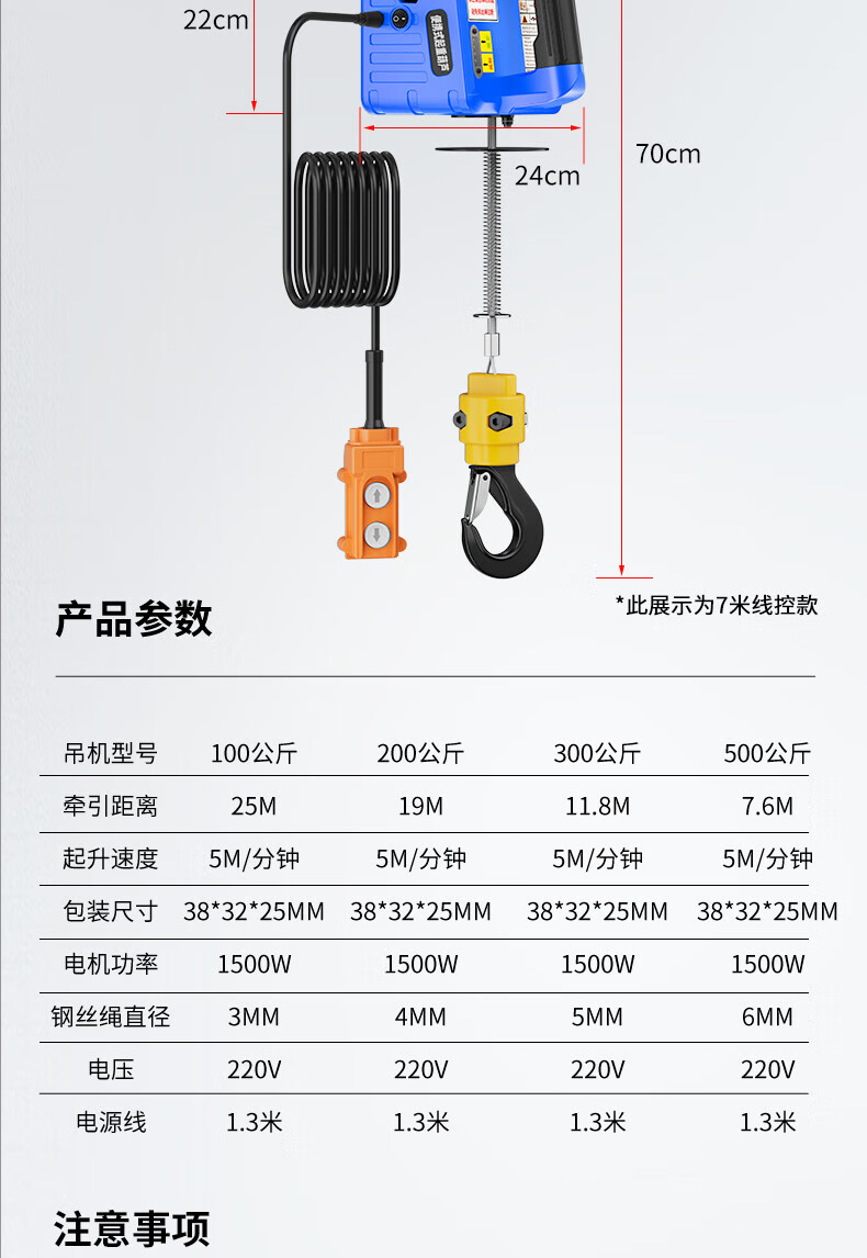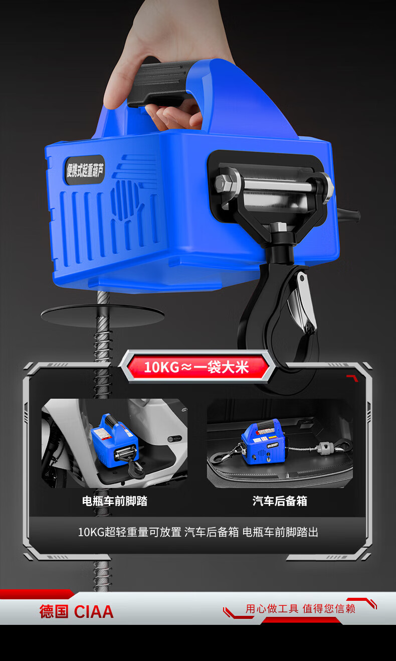CIAA Germany miniature electric hoist 220v household electric hoist small crane 0.5 ton electric hoist small crane upgraded model (seven meters wire control) 500 kg lift 8 meters