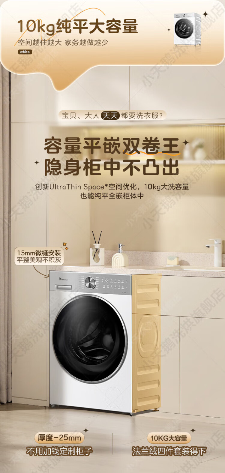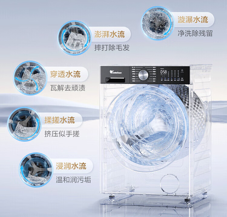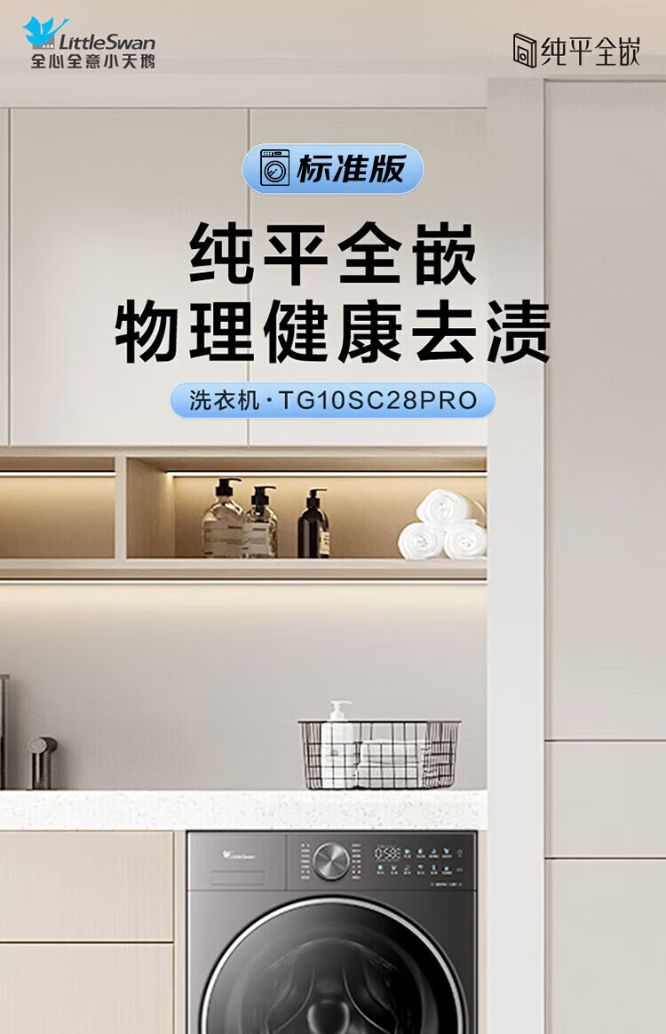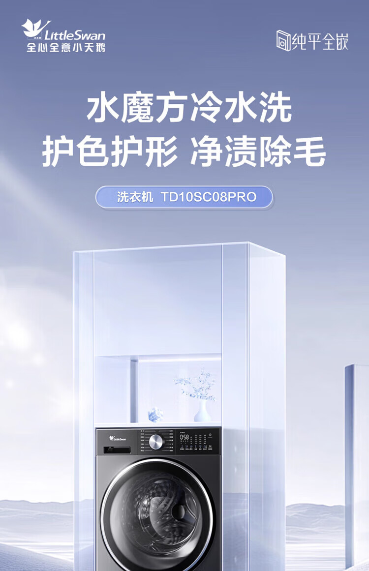 LittleSwan drum washing machine Xiaowumei 3.0 fully automatic washing/drying all-in-one ultra-thin flat screen fully embedded 10kg water cube first-class energy efficiency home appliance subsidy small steel cannon new 3.0 light version washing and drying whirlpool cold water wash SC08PRO