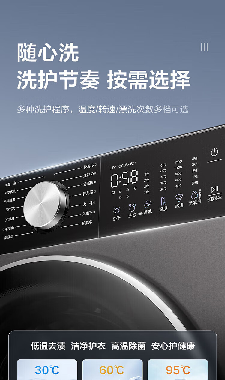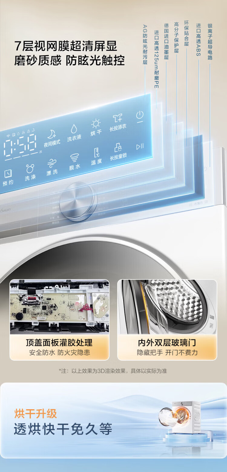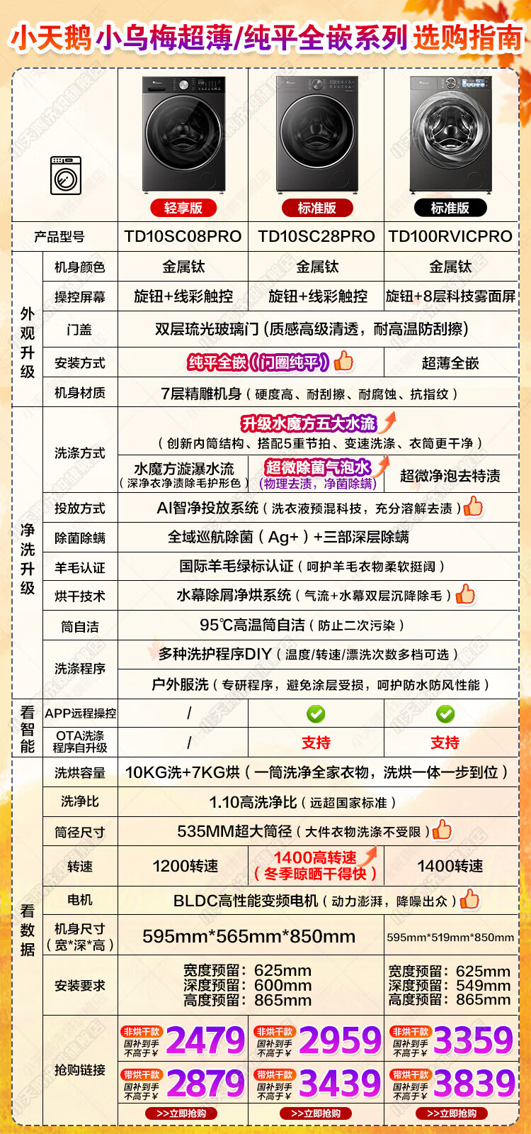 LittleSwan drum washing machine Xiaowumei 3.0 fully automatic washing/drying all-in-one ultra-thin flat screen fully embedded 10kg water cube first-class energy efficiency home appliance subsidy small steel cannon new 3.0 light version washing and drying whirlpool cold water wash SC08PRO