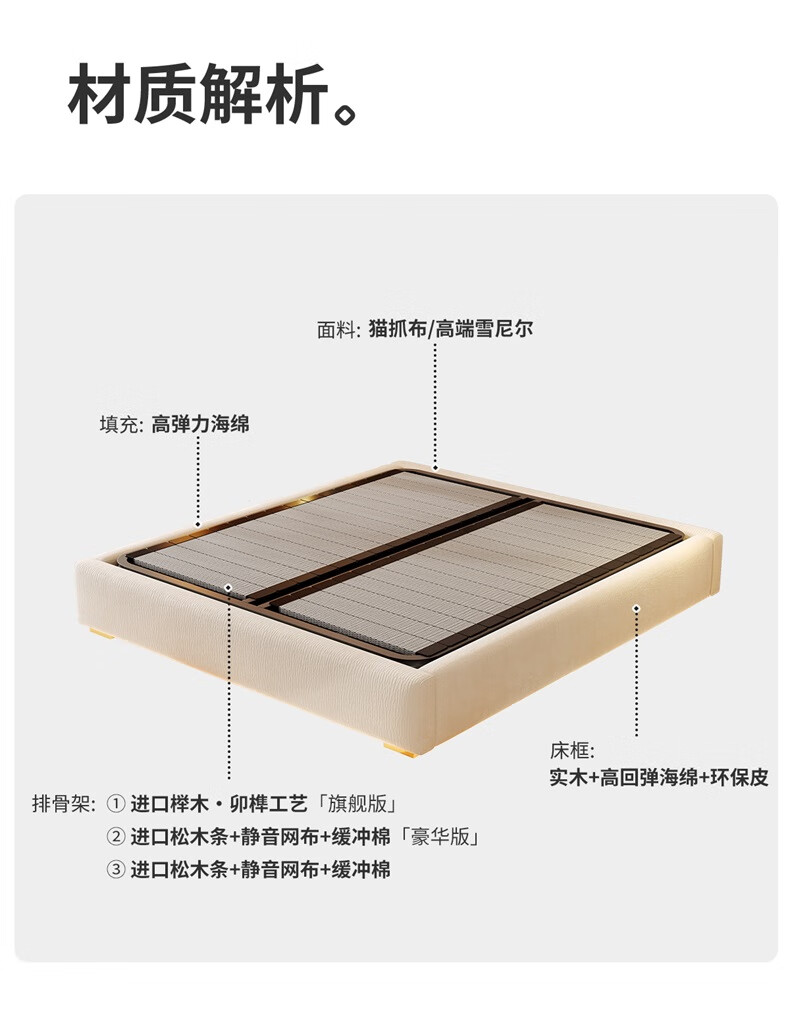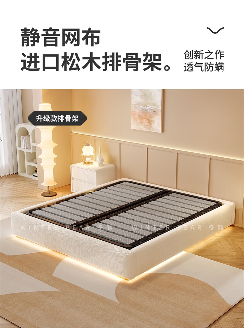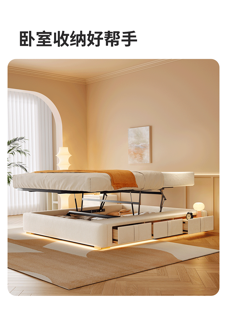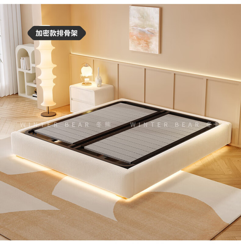 Winter Bear French Cream No Bedside Bed Backless Chenille Fabric Sliding Storage Box Storage Drawer Bed No Lamp/Chenille Velvet/Beech Wood Rib Frame 1800mm*2000mm Sliding Structure