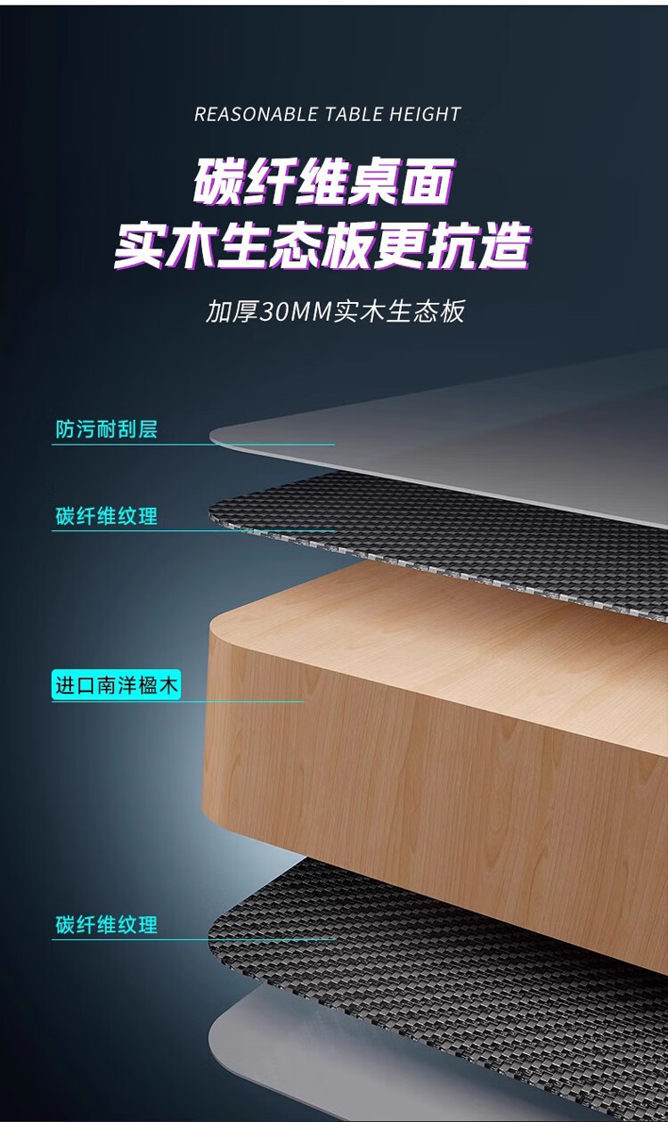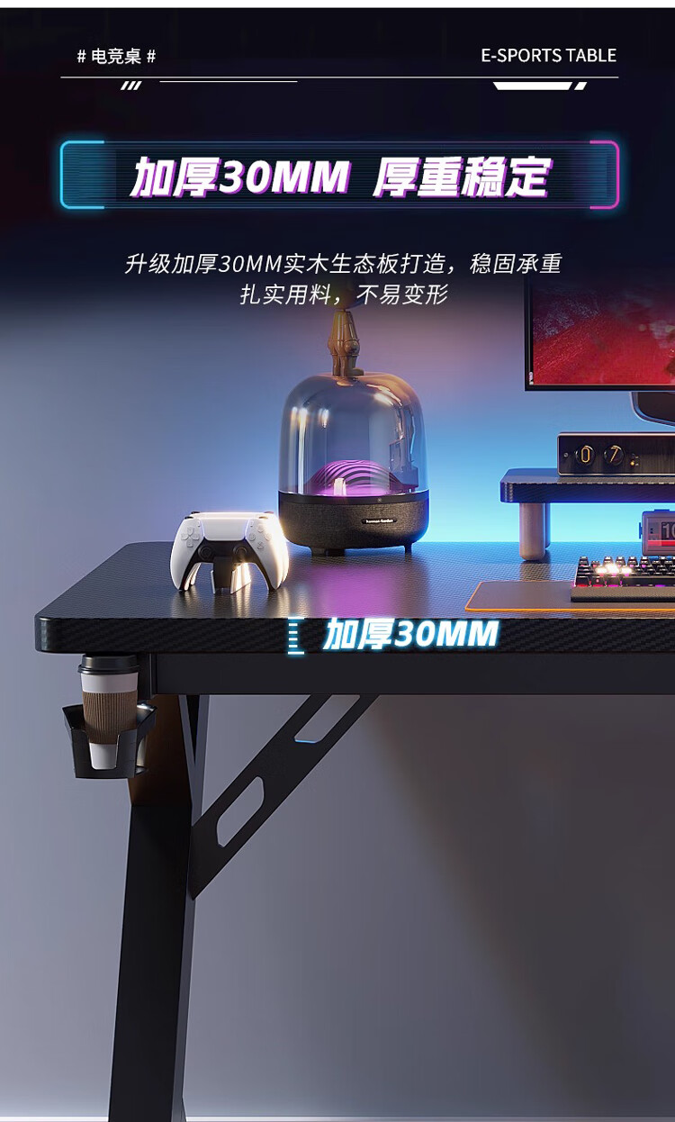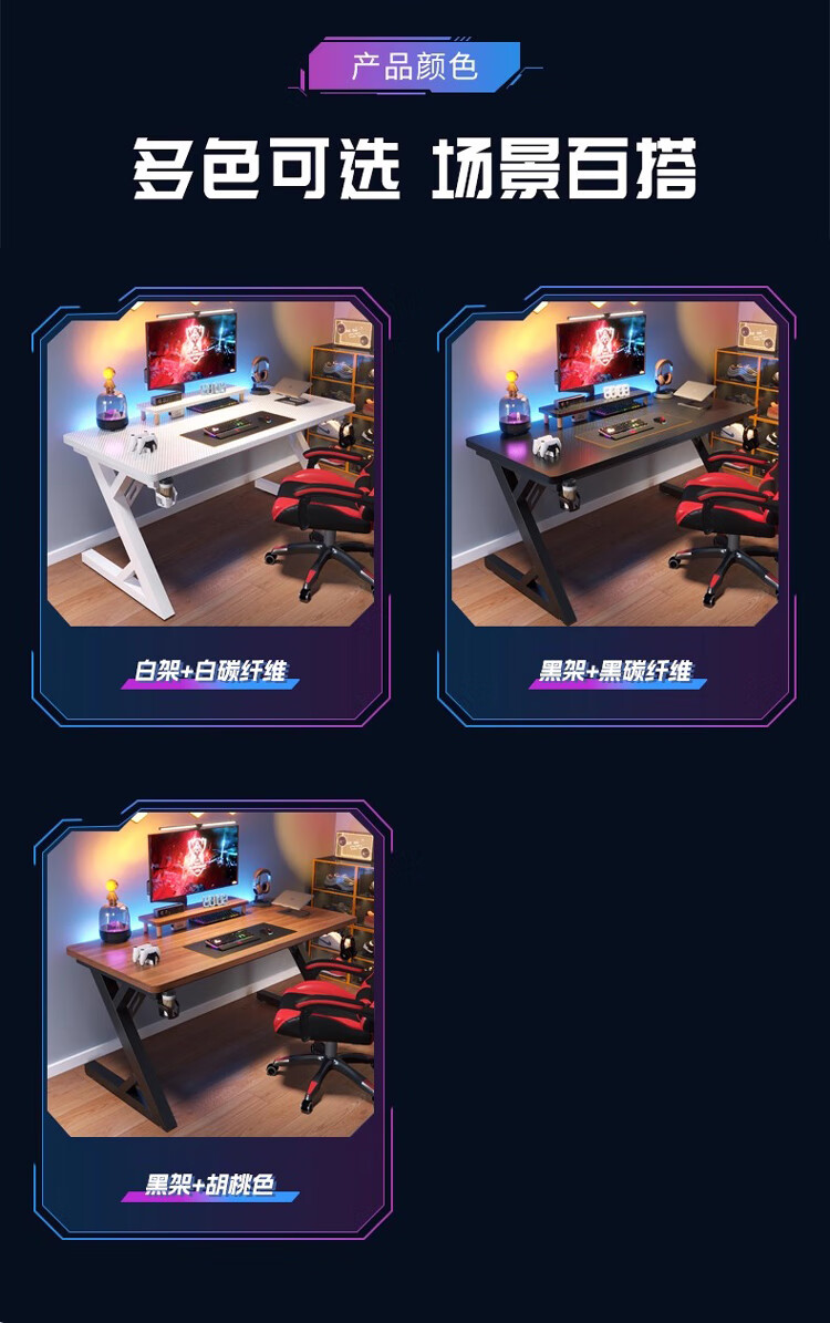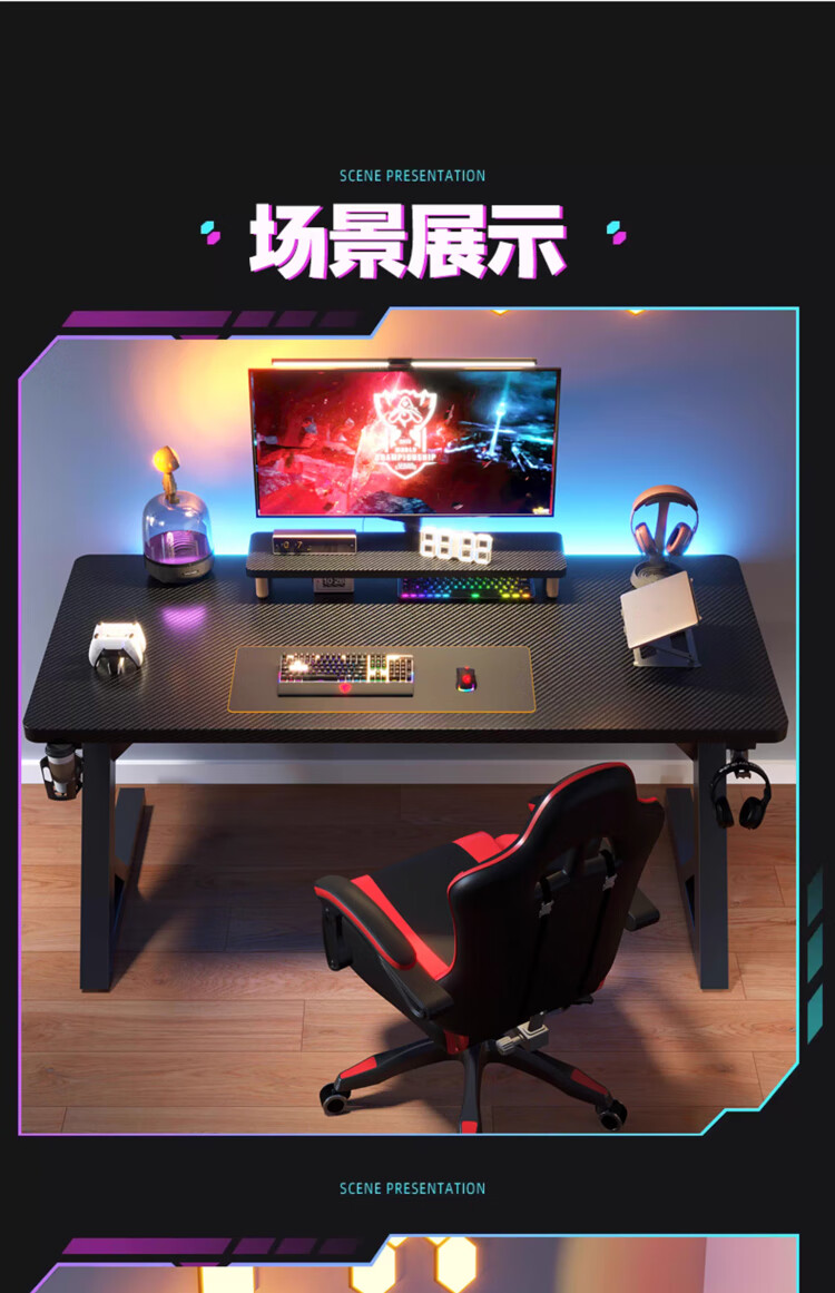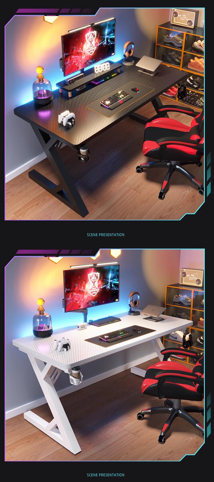 Solid wood computer desk carbon fiber gaming desk desk bedroom desk study desk writing desk 30mm thickened desktop S3 white carbon fiber 30mm desktop 80*60*75cm rounded corners anti-collision