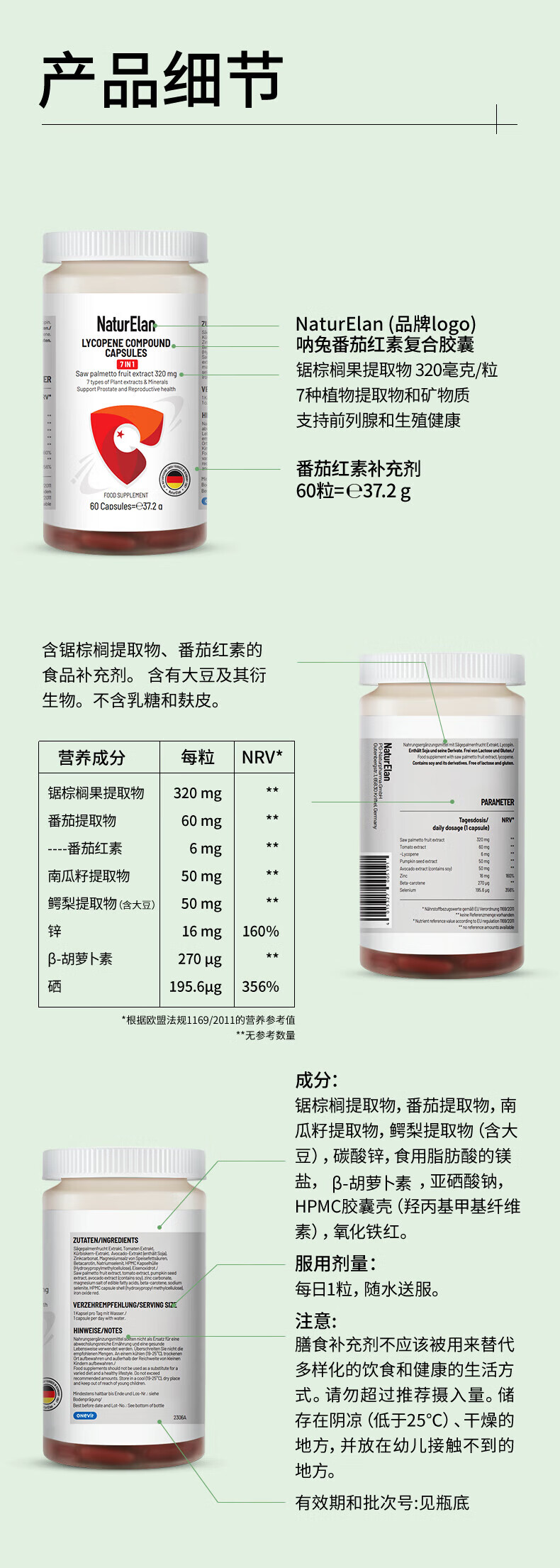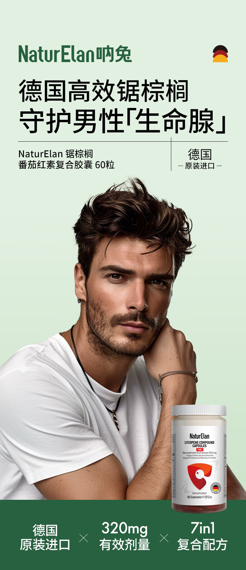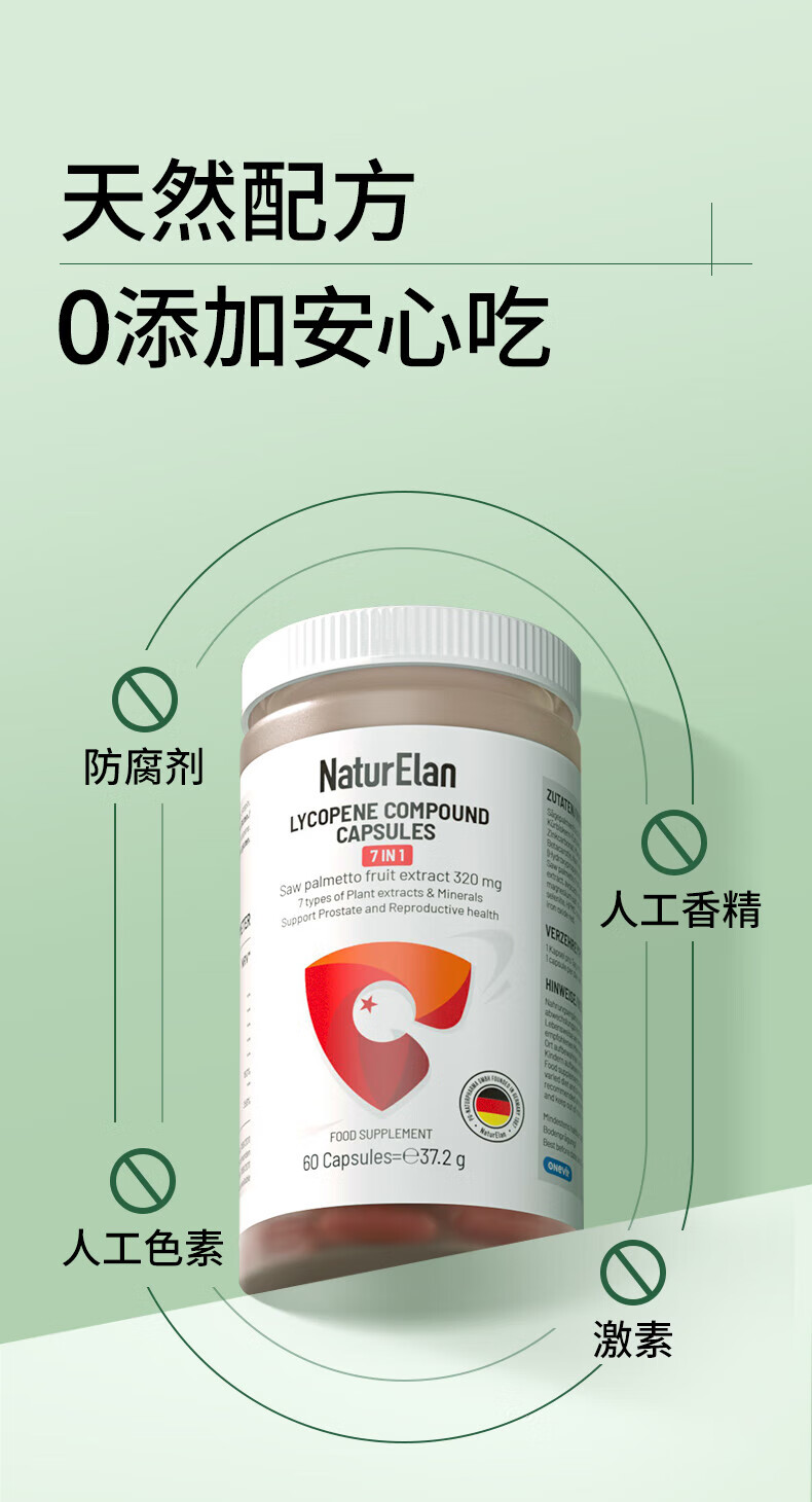 NATURELAN Germany imports naturelan saw palmetto lycopene capsules for men's prostate health, nocturnal urination and male prolapse 60 capsules