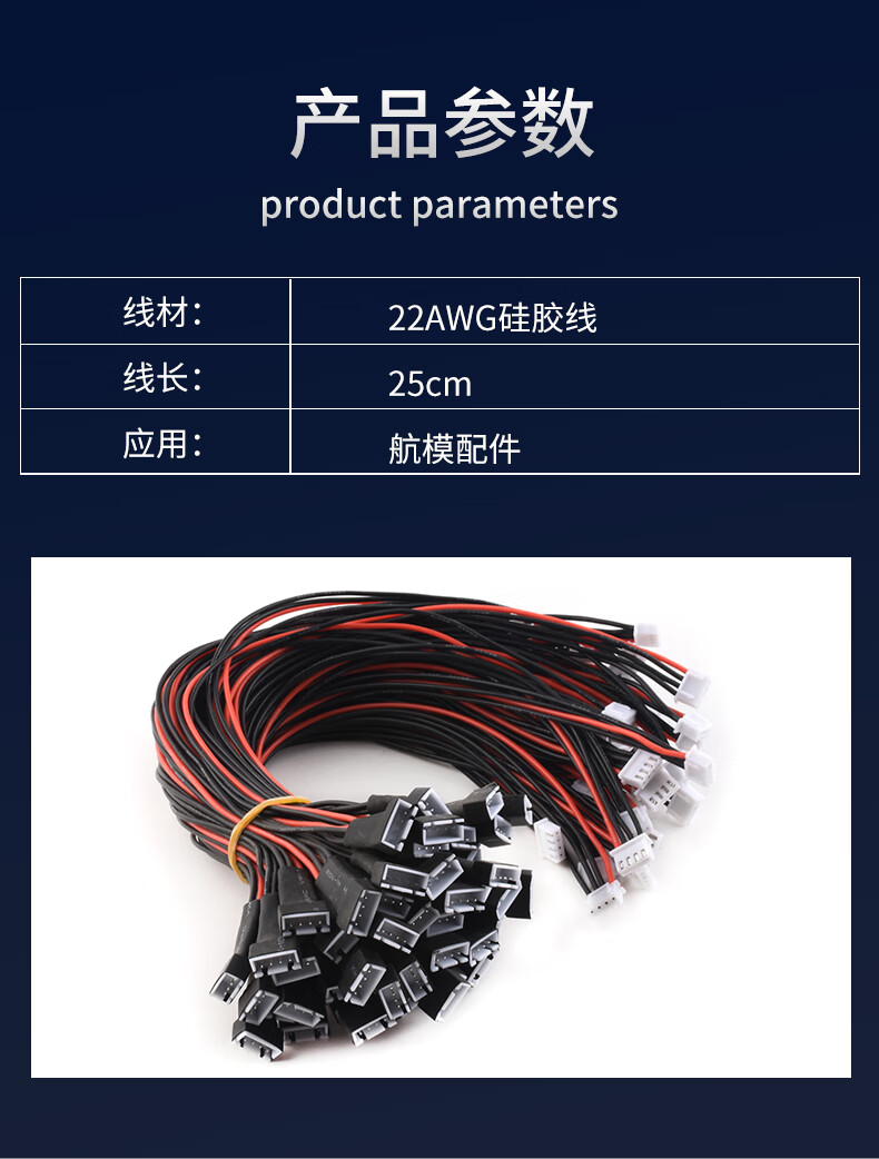 Balanced charging extension cord plug aircraft model accessories lithium battery male busbar 2S3S4S 6S charging silicone wire 3S male and female extension wire silicone 25cm (including sleeve) other types