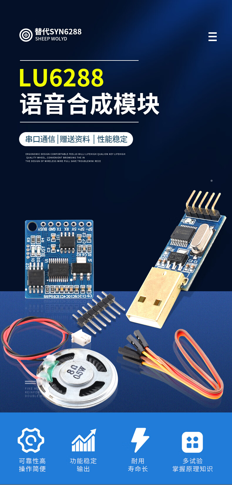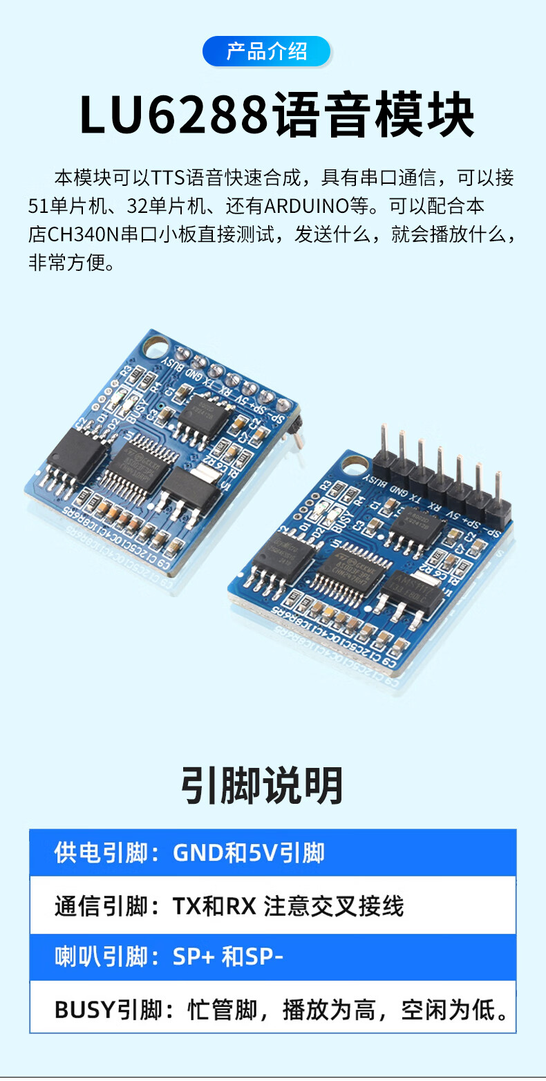 Speech synthesis module LU6288 text to TTS replacement SYN6288 Free STM32 51 program LU6288 voice module (upward soldering pin) No specifications