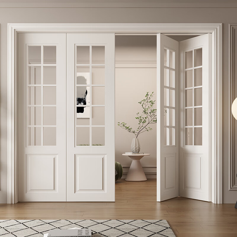 Simple French lattice door Changhong glass door lattice partition solid wood door white living room kitchen balcony folding door Customized other styles