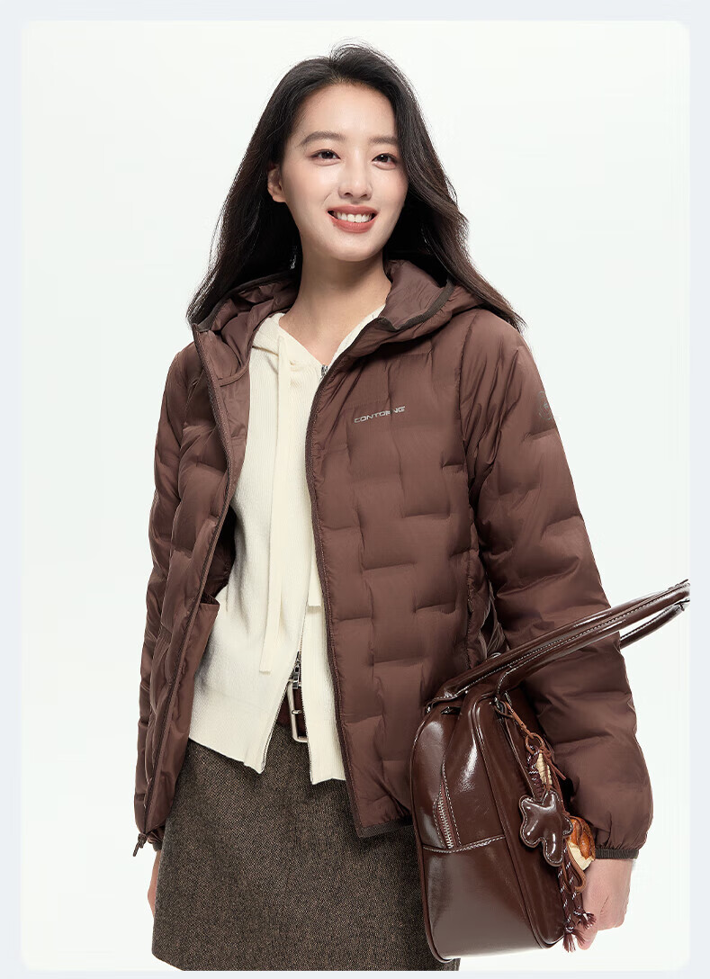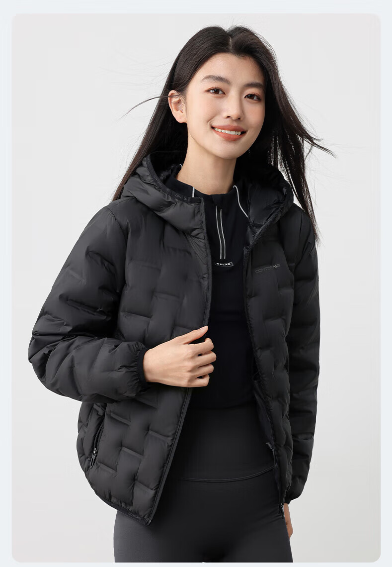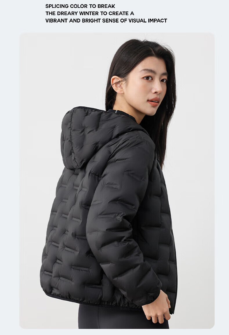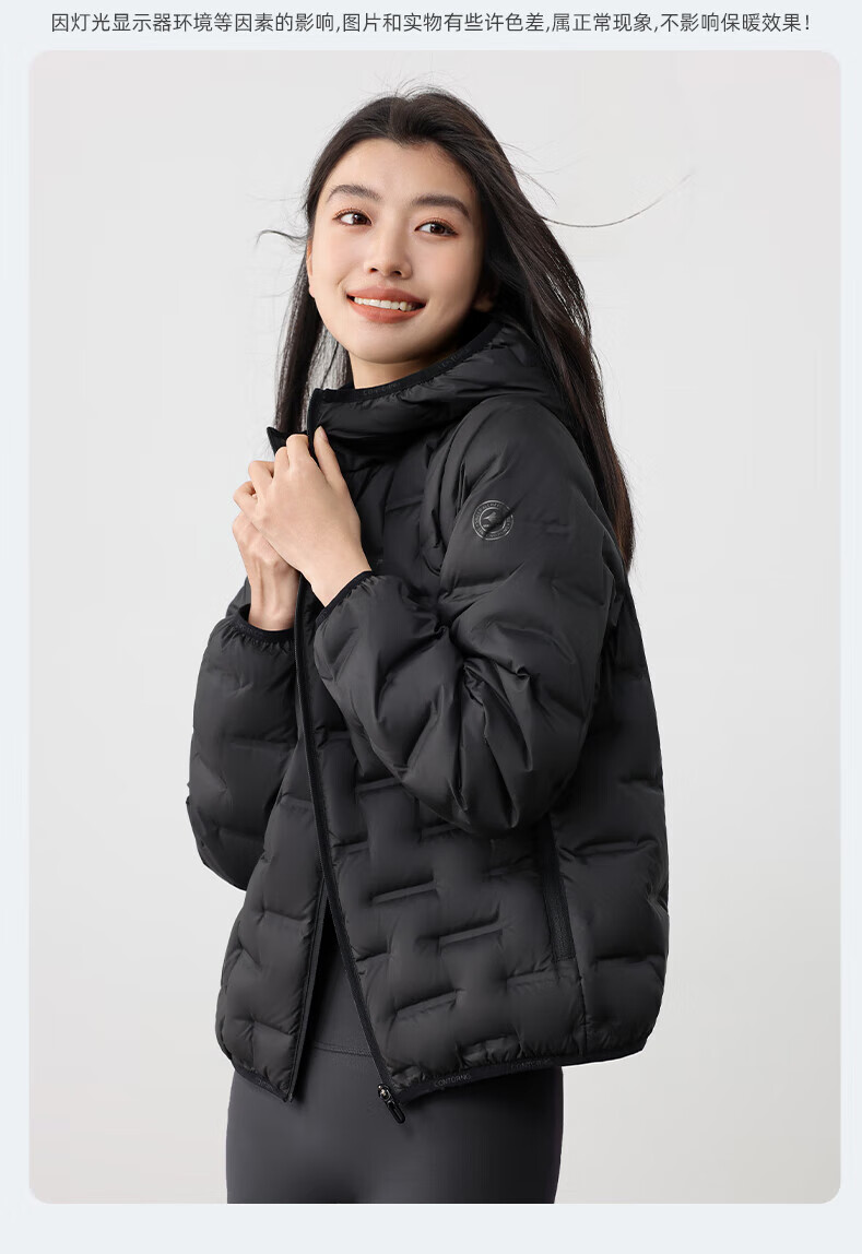YAYA Lightweight Down Jacket Women's Short 2025 Autumn and Winter New Fashion Casual Hooded Versatile Warm Jacket KL Black M