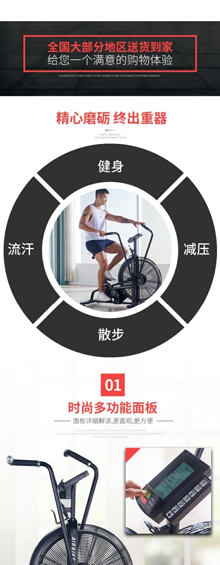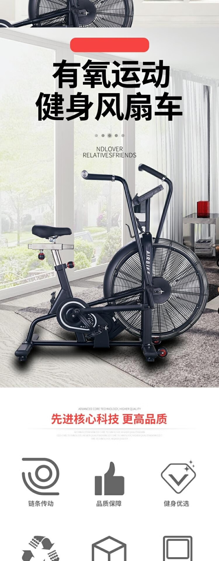 Yimai's new commercial fan spinning bicycle gym special wind resistance silent exercise bike aerobic exercise upgraded version upgraded version thickened handle + chain belt dual transmission