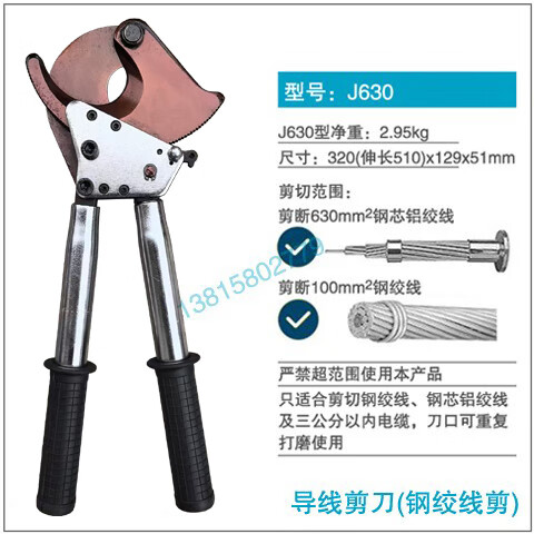 OUOETY power cable cutting tool ratchet wire cutter gear cable scissors steel strand manual cutter J130 cable scissors