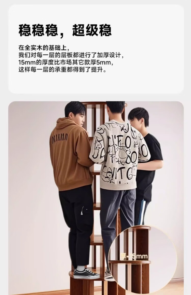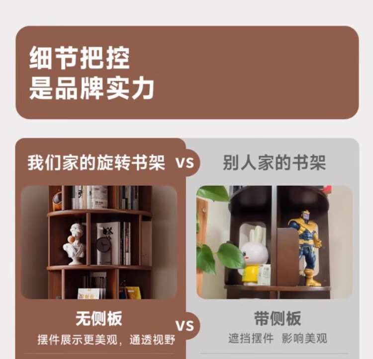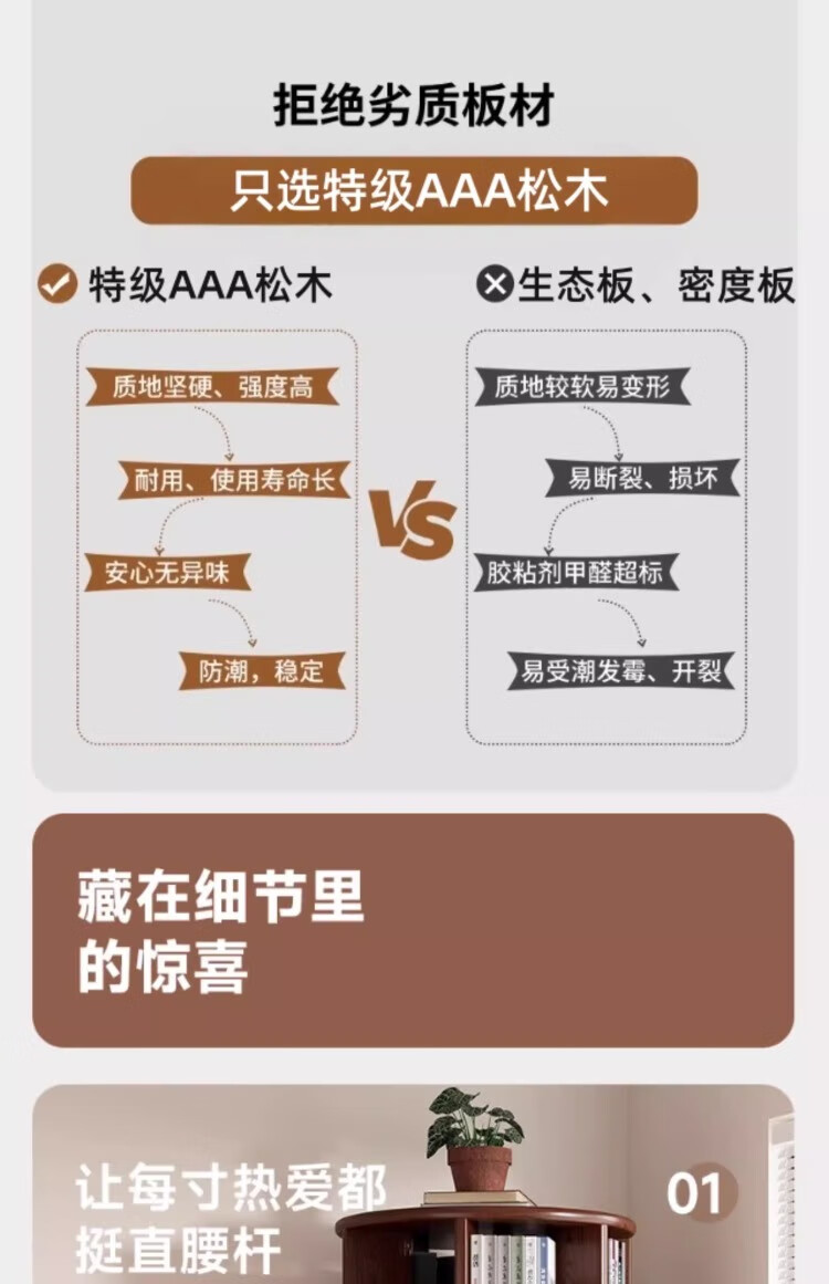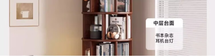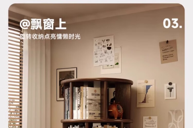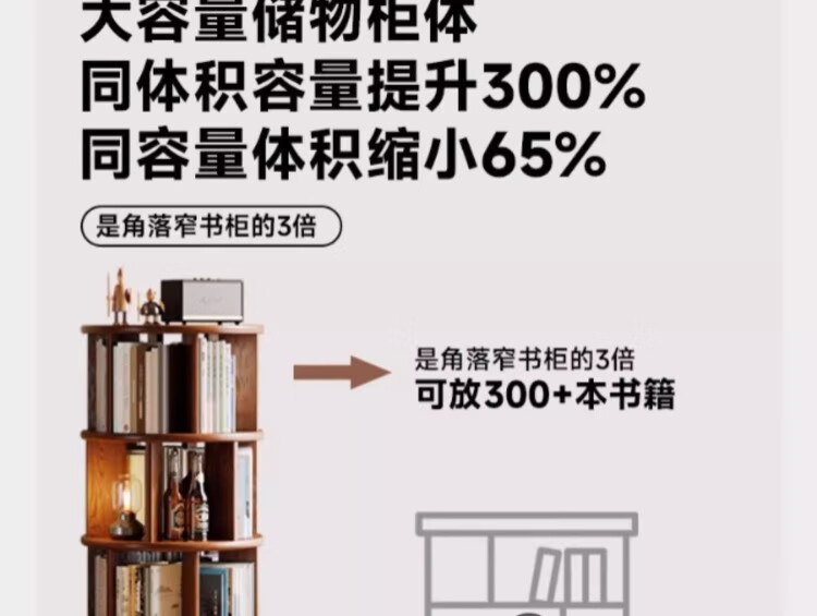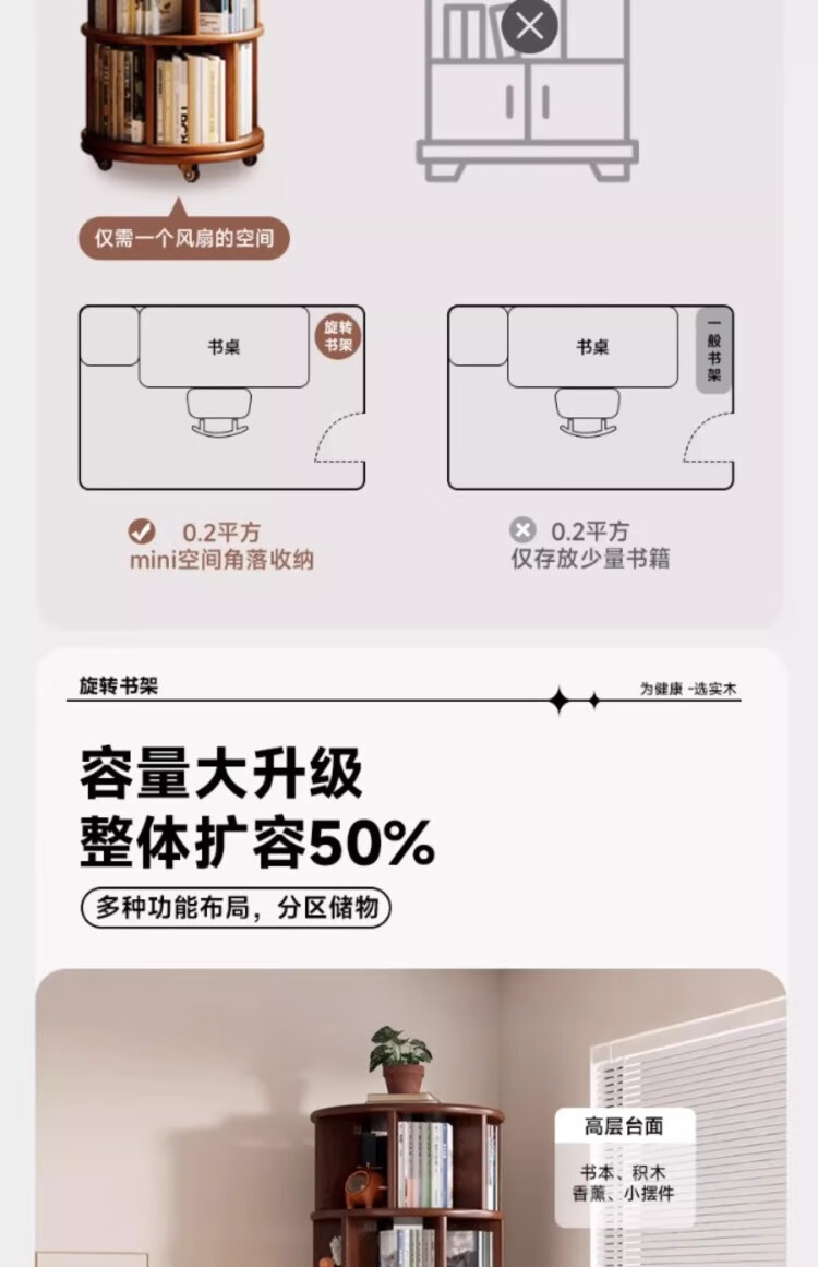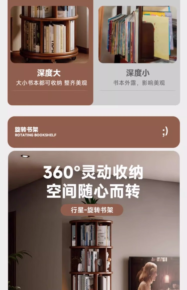 Rotating bookshelf 360 degree bookcase floor-standing storage cabinet household storage rack solid wood movable bedside cabinet thickened 15MM pine | walnut color 44*44*103