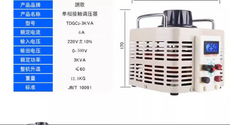 Pupan 220V single-phase voltage regulator AC boost power supply TDGC2-3KW digital display 0-500V adjustable transformer 3 TDGC2-3KVA output 0-300V current 10A output