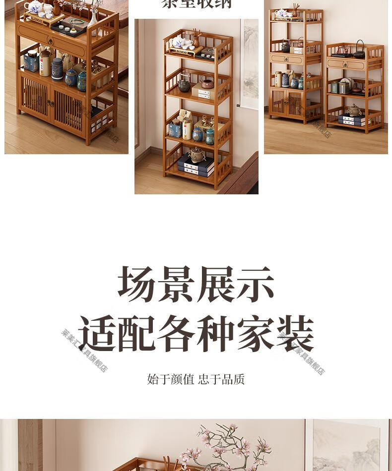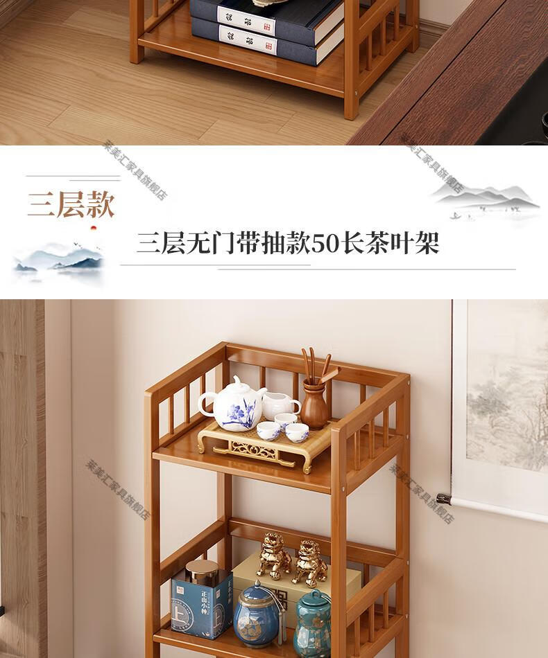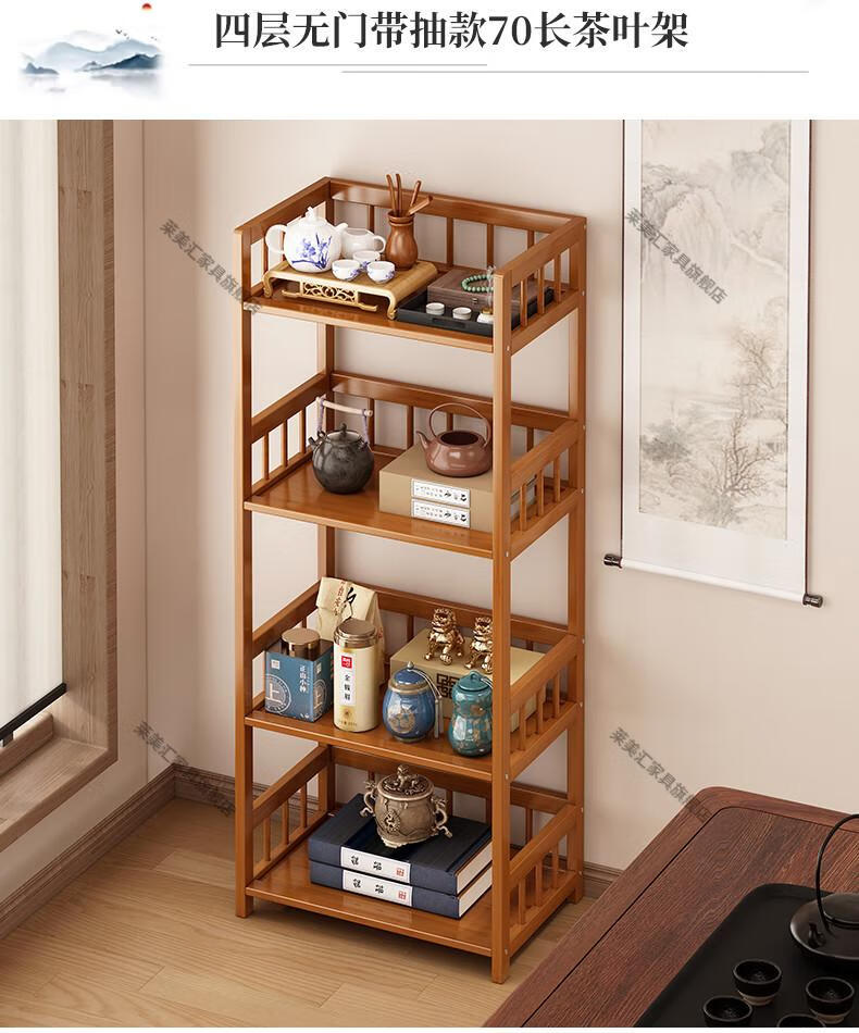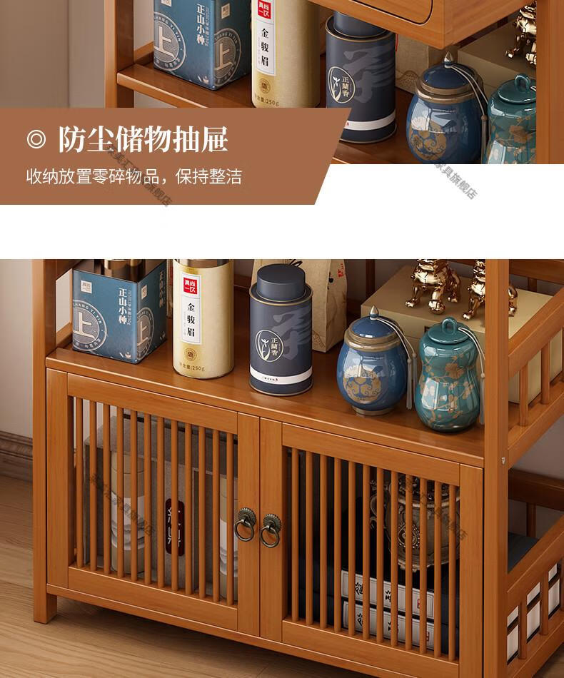Laimeihui Chinese Bogu rack tea cabinet tea room storage rack display cabinet storage tea table side cabinet Duobao Pavilion tea ornaments reinforced and bold simple style - second floor 35cm long