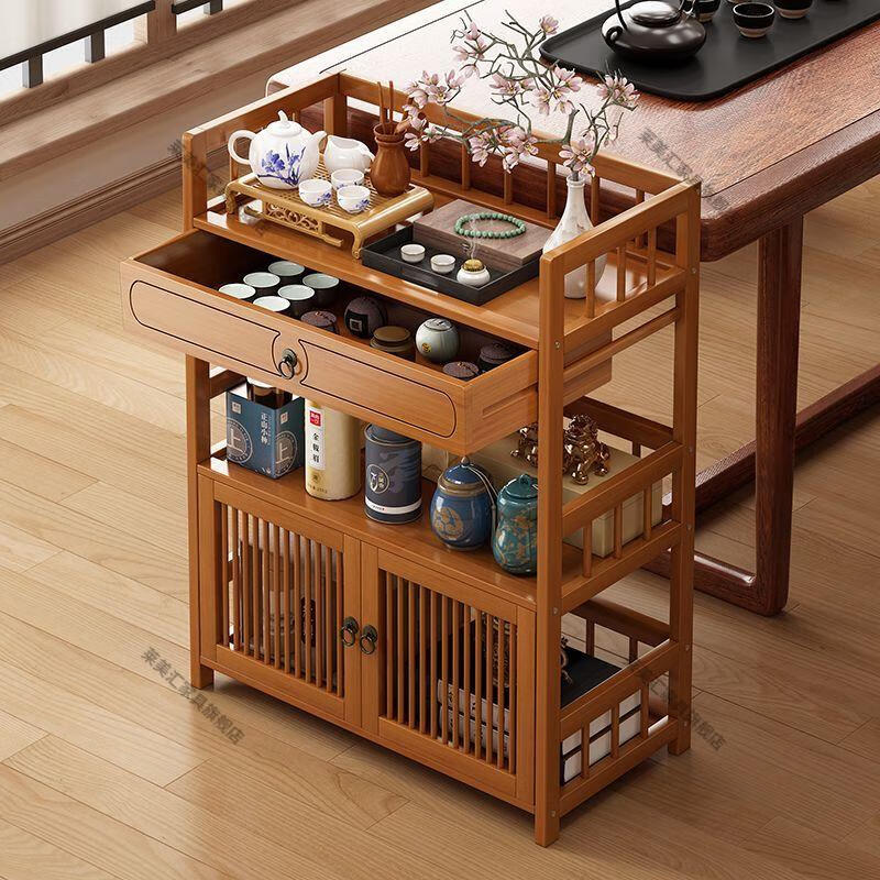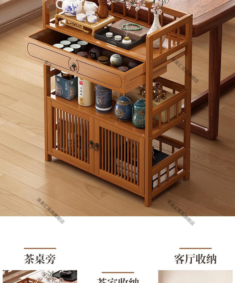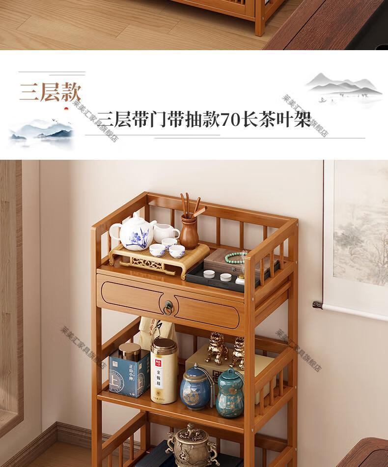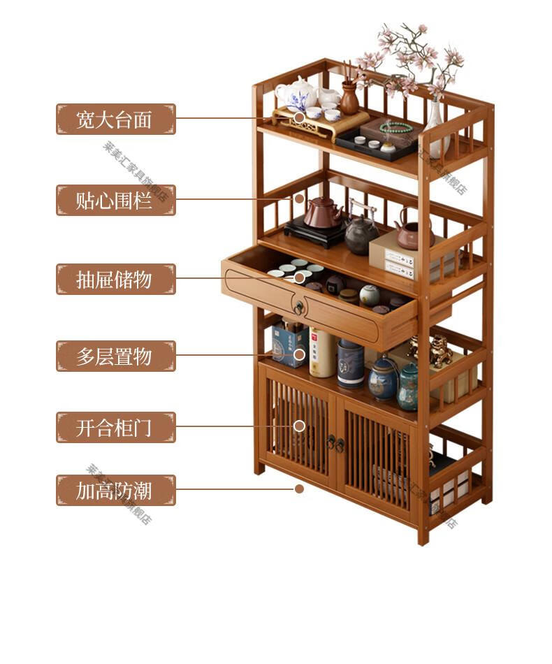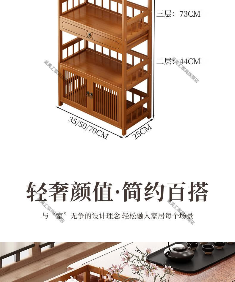 Laimeihui Chinese Bogu rack tea cabinet tea room storage rack display cabinet storage tea table side cabinet Duobao Pavilion tea ornaments reinforced and bold simple style - second floor 35cm long