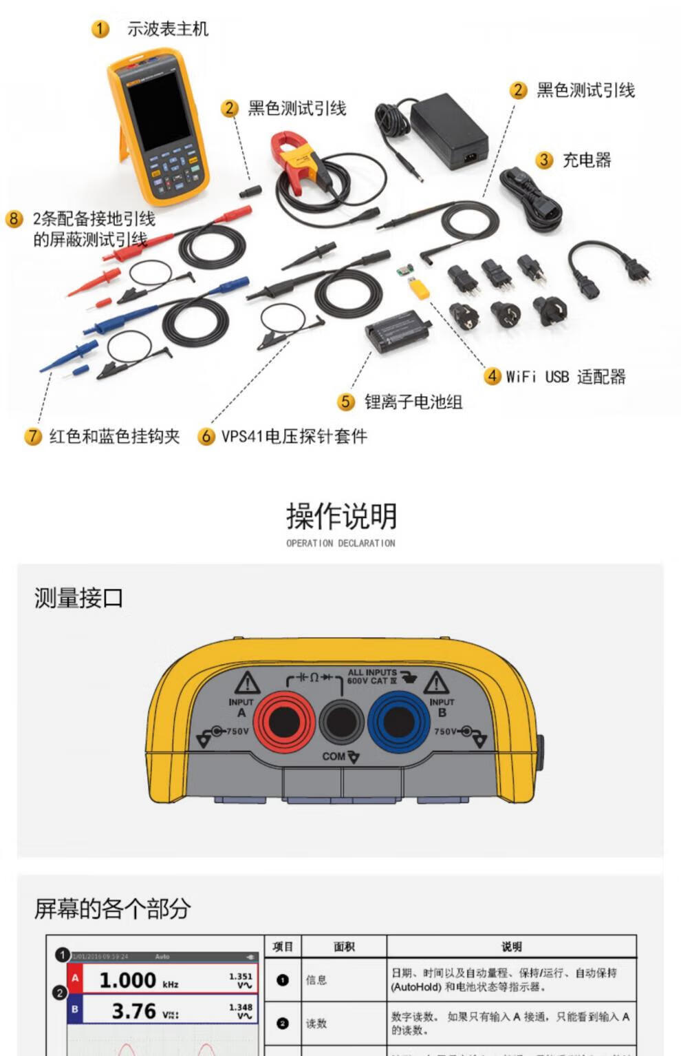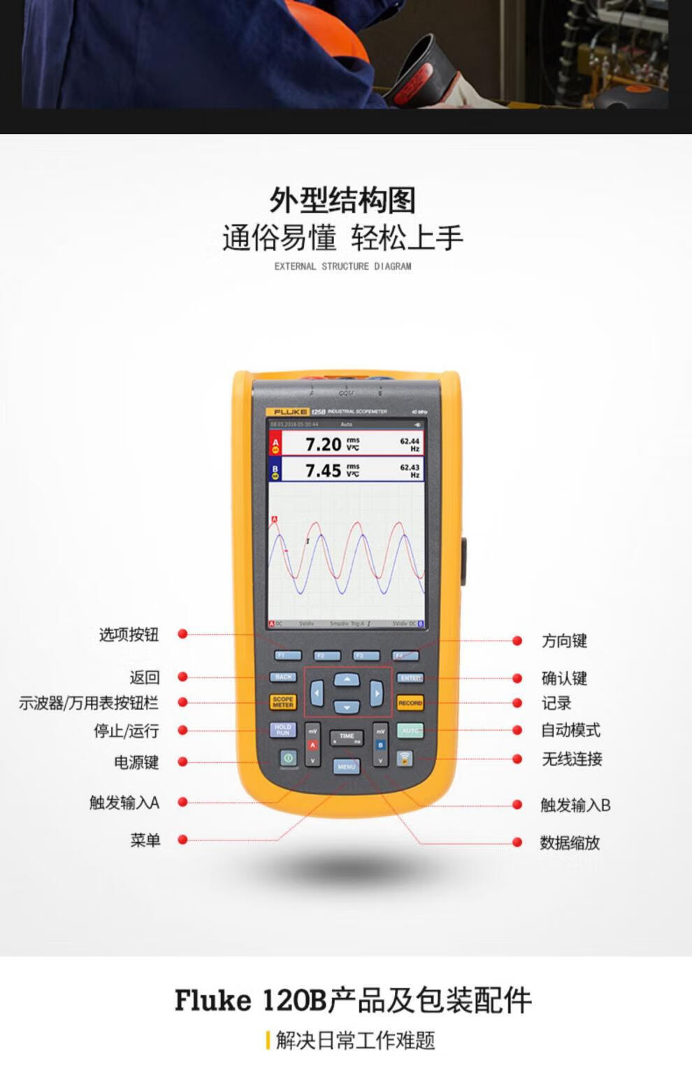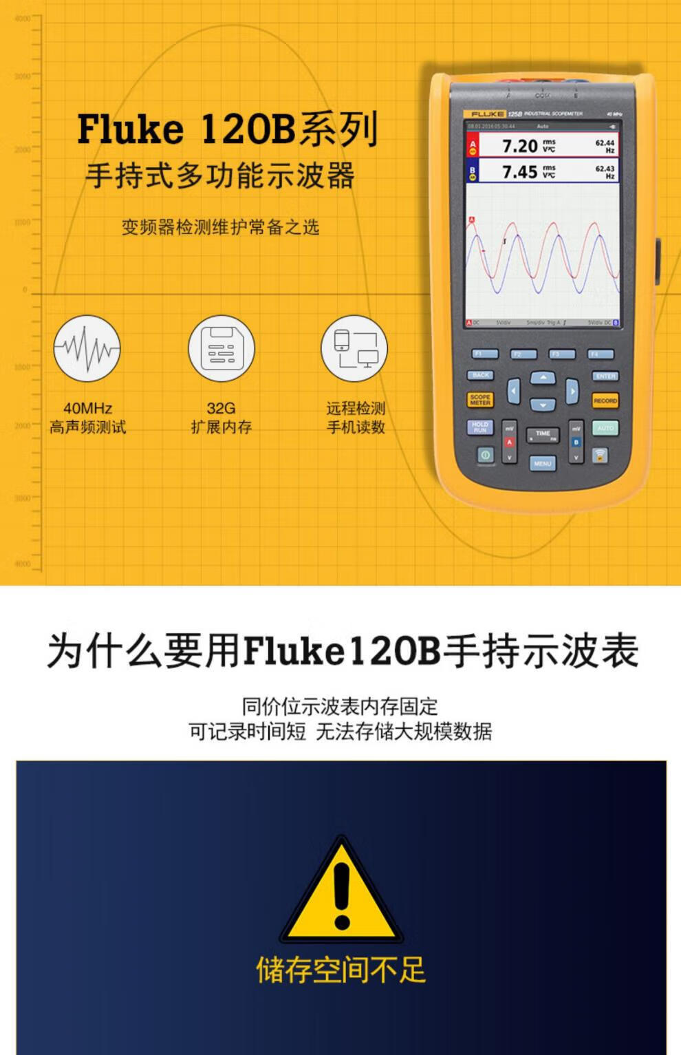 FLUKE Fluke oscilloscope 123B/124B 120B series high-precision handheld digital FLUKE-123B/CN (without software and instrument package)