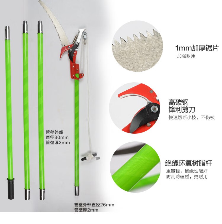 Tree pruning tools garden big tree high branch scissors telescopic high altitude saw electric insulated long branch pruning scissors 2 meters set